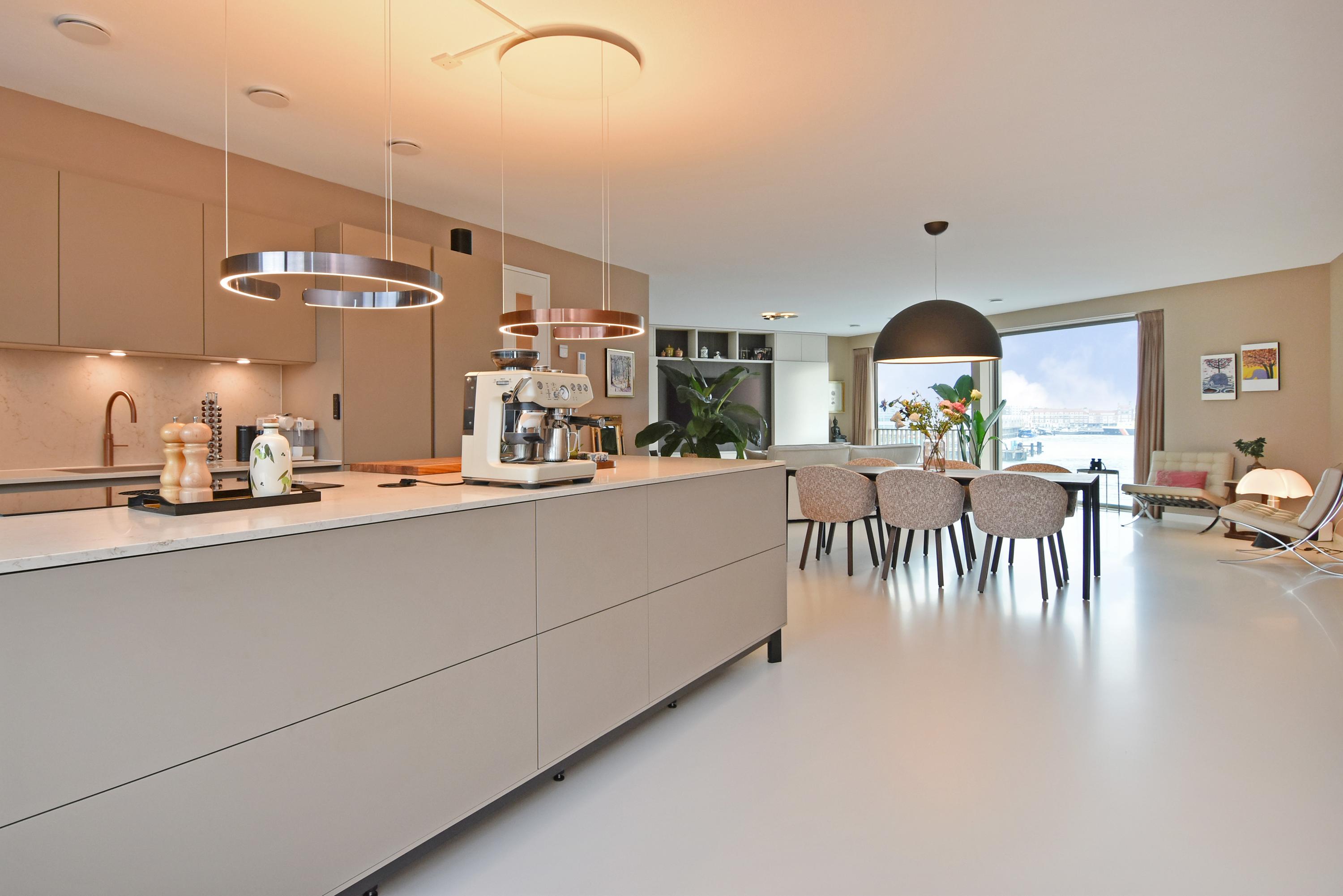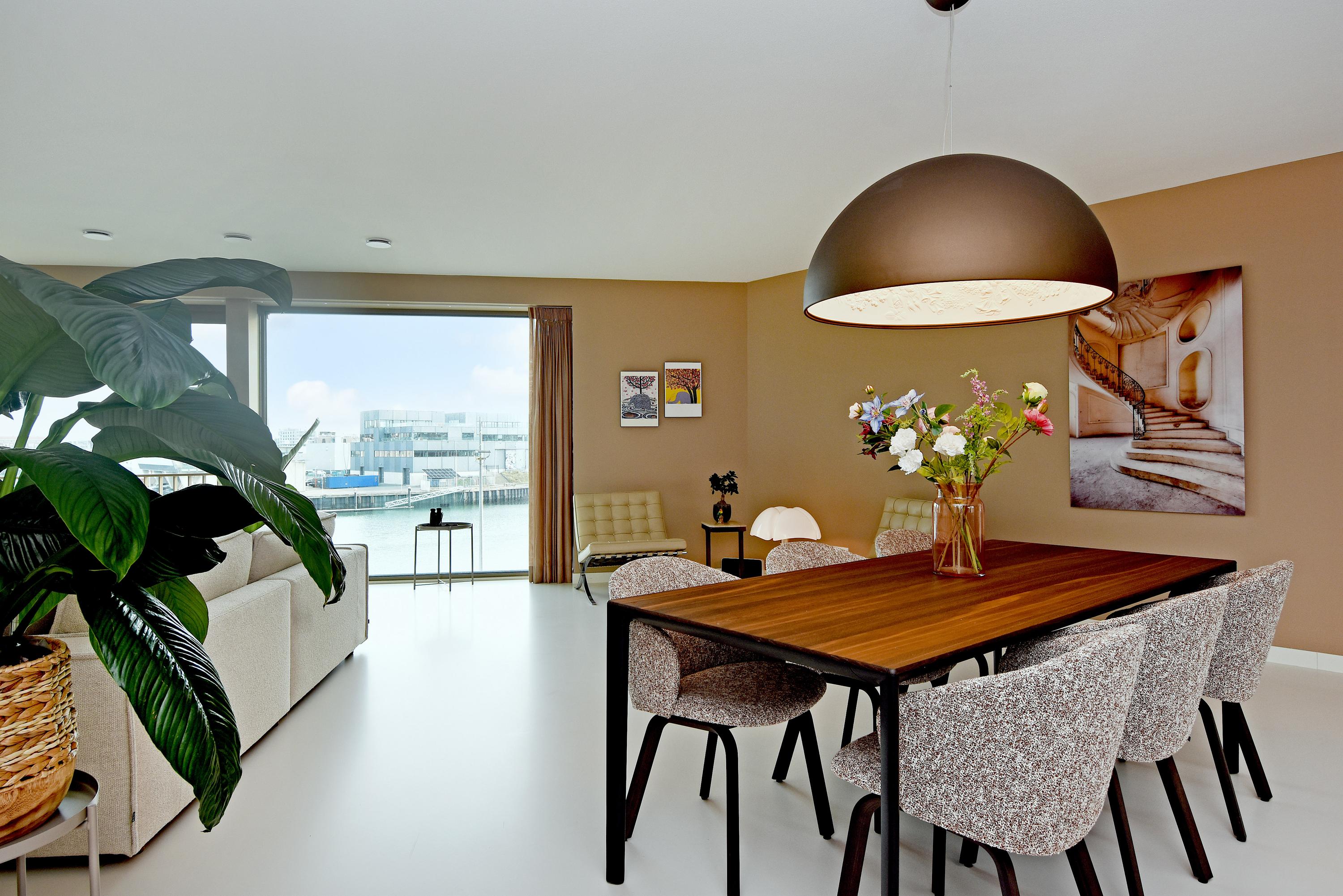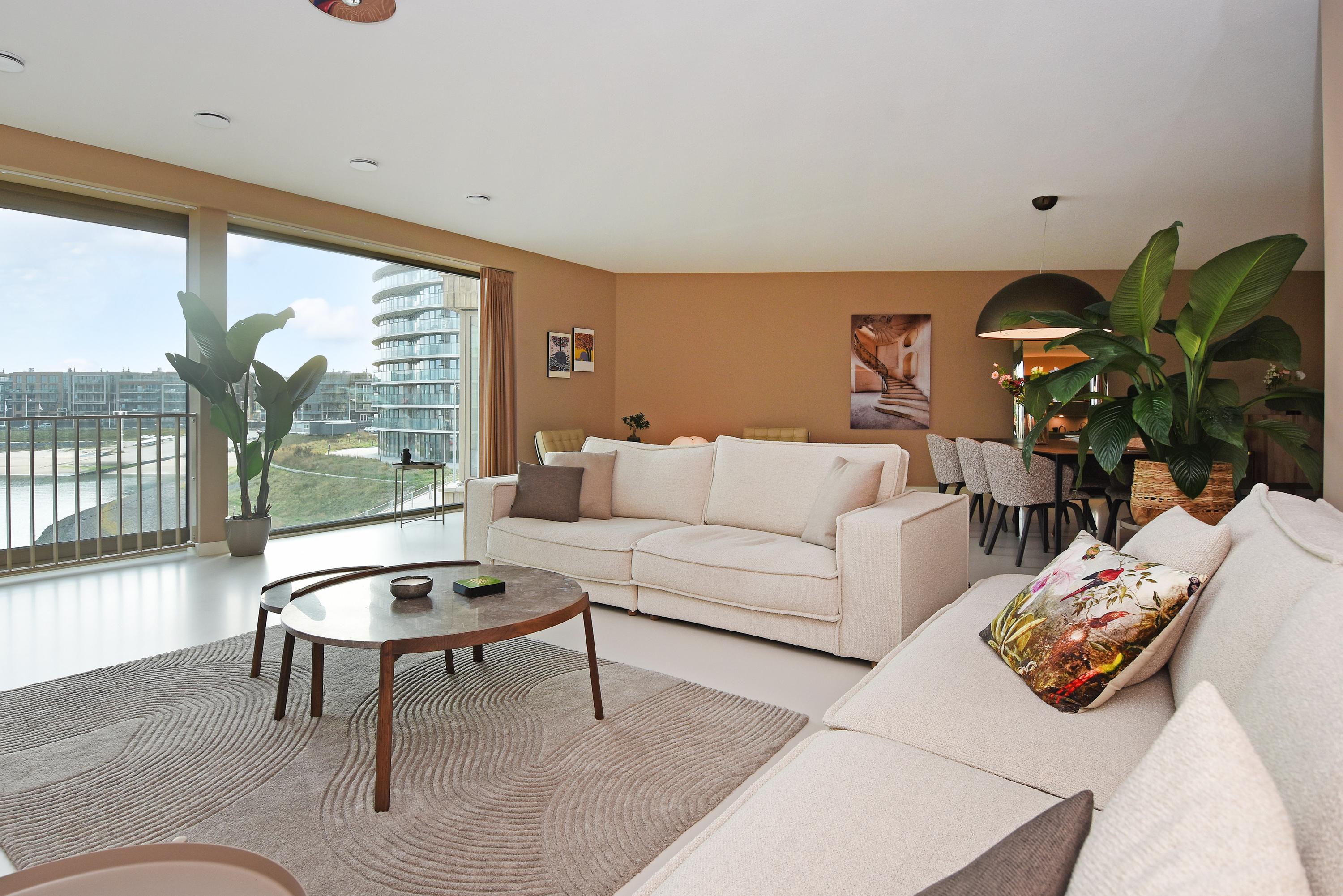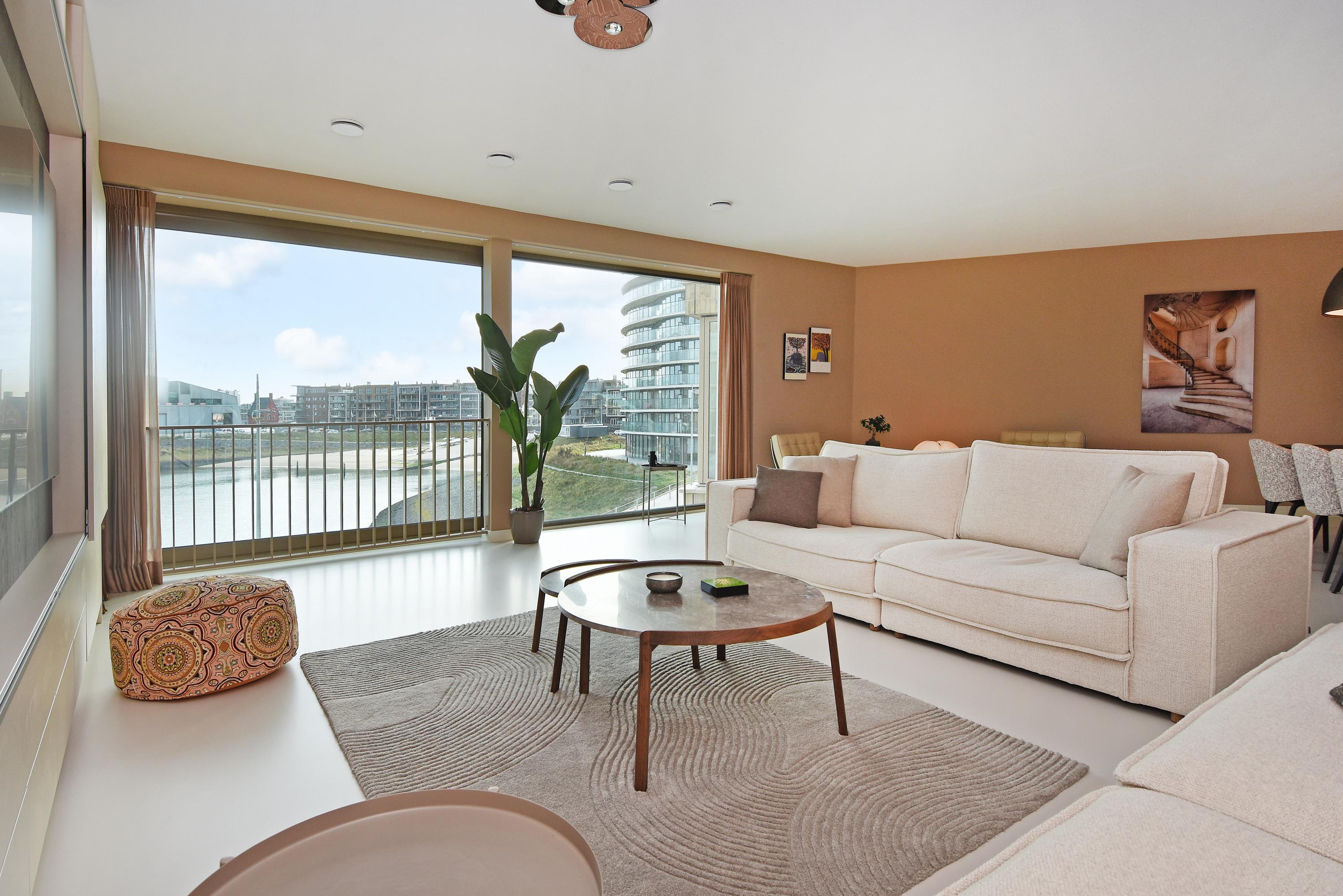 Apartment Den Haag with sea views offers a rare fusion of modern architecture and understated luxury. Situated in Scheveningen, this high-end apartment spans 135 m² and features expansive floor-to-ceiling windows that frame the panorama of the harbour and the North Sea. The living area flows seamlessly into a designer kitchen with a cooking island and integrated luxury appliances. Sliding doors invite the outdoors in, connecting the main living space to a private 29 m² balcony overlooking a landscaped courtyard, perfect for quiet afternoons or evening gatherings.