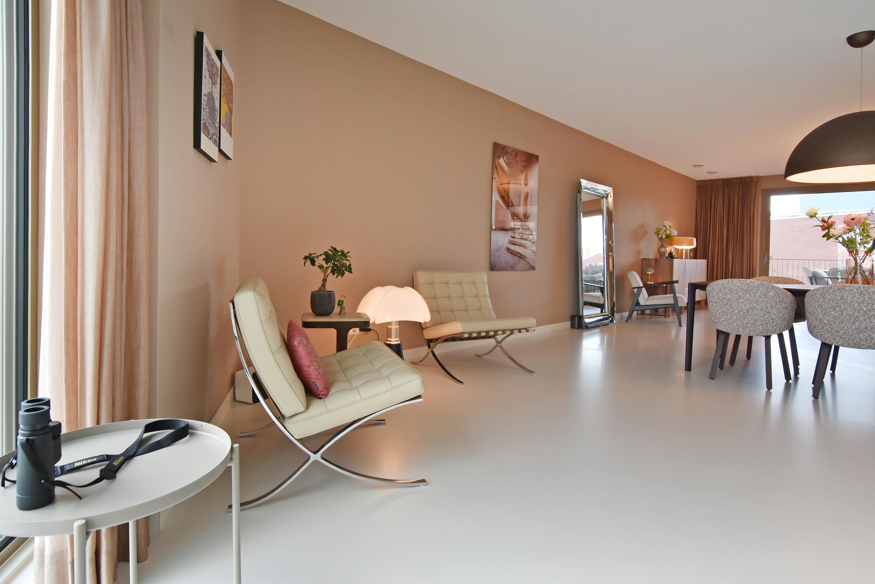 Two well-appointed bedrooms provide calm and comfort, while the bathroom follows the latest design trends with a walk-in shower, elegant vanity, and a freestanding bathtub. The apartment incorporates a fully integrated underfloor heating and cooling system, a heat recovery unit, and a heat pump, all contributing to outstanding energy efficiency with energy label A+++. Additional amenities include a custom cabinetry storage room, a separate toilet, a private parking space with a charging point in the secure garage, and an extra high private storage area. Walking distance to the Zuiderstrand, Westduinpark, vibrant harbourside restaurants, and boutiques on Frederik Hendriklaan further define the enduring allure of this Apartment Den Haag.