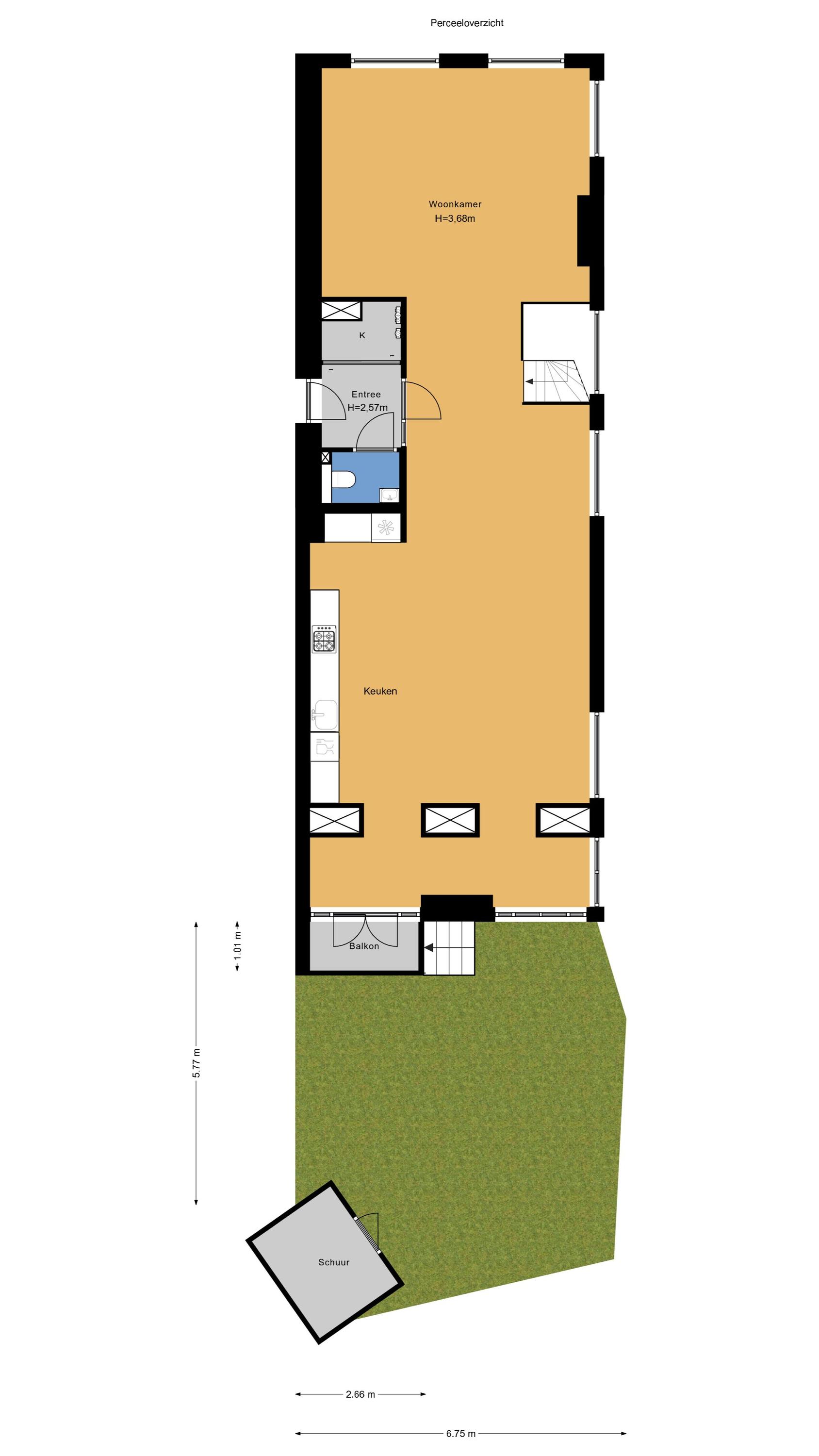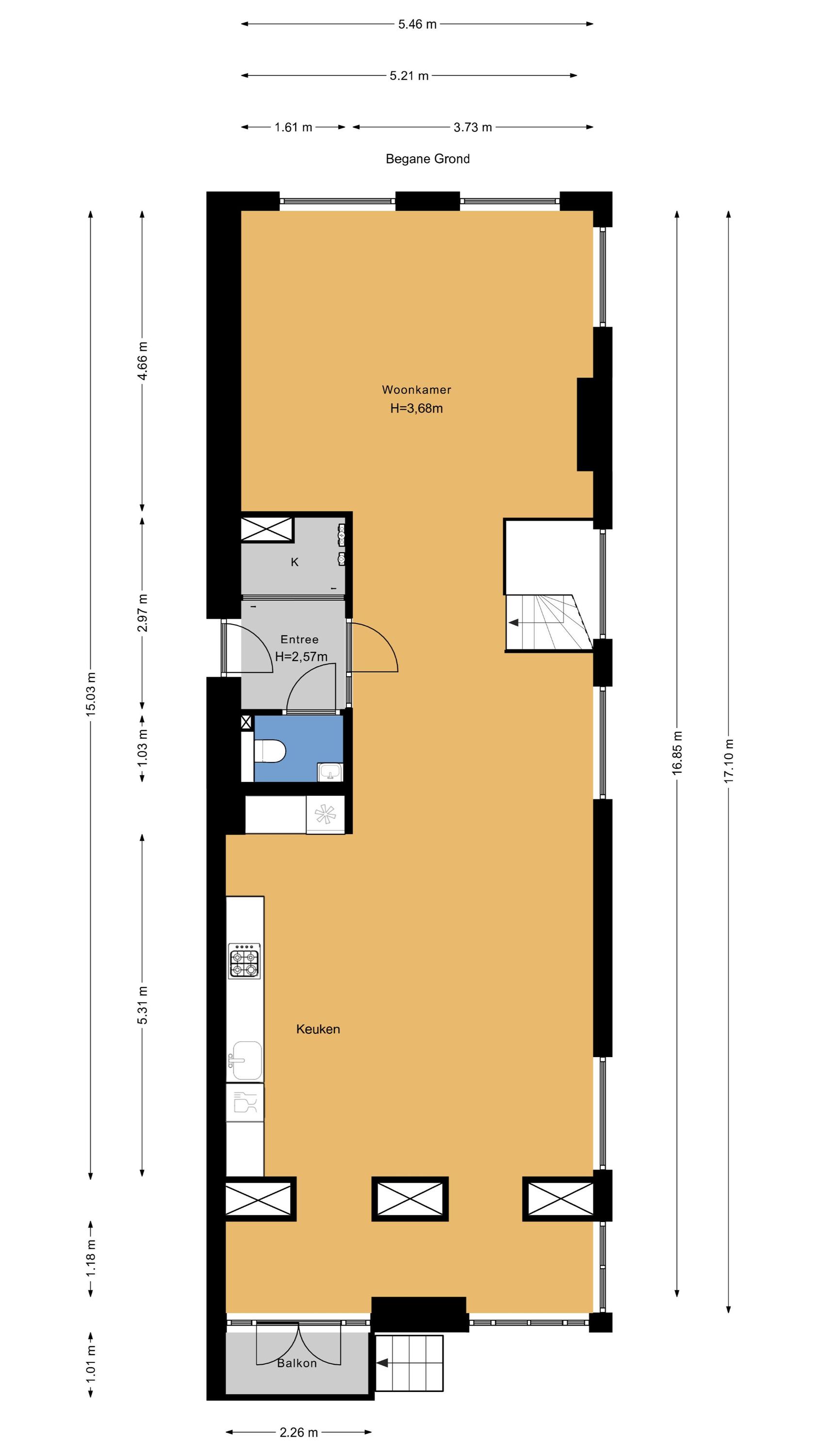 A stairway ascends to the 1st floor, where the apartment’s main entrance is located.