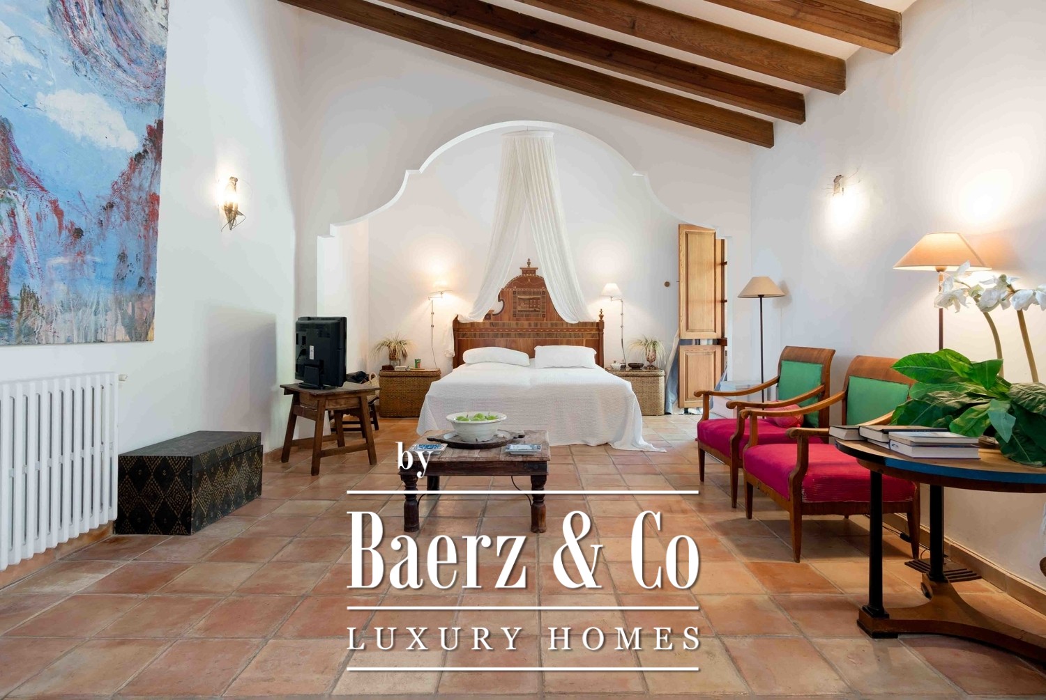 This aristocratic estate Alaro is steeped in history, offering a rare legacy property in one of Mallorca’s most storied enclaves. Behind secluded stone walls, this former noble manor of 1,314 m² lies amid 4,447 m² of ancient gardens, inviting those who seek privacy and the genuine character of European heritage. The estate comprises the principal manor with soaring ceilings and handcrafted finishes, alongside two independent guest villas—one with 4 bedrooms, the other with 5—providing a total of 11 bedrooms and 10 bathrooms. Each space is framed by sun-washed terraces, exposed beams, and quiet luxury that honours the estate’s aristocratic past, yet offers opportunity for reimagination.