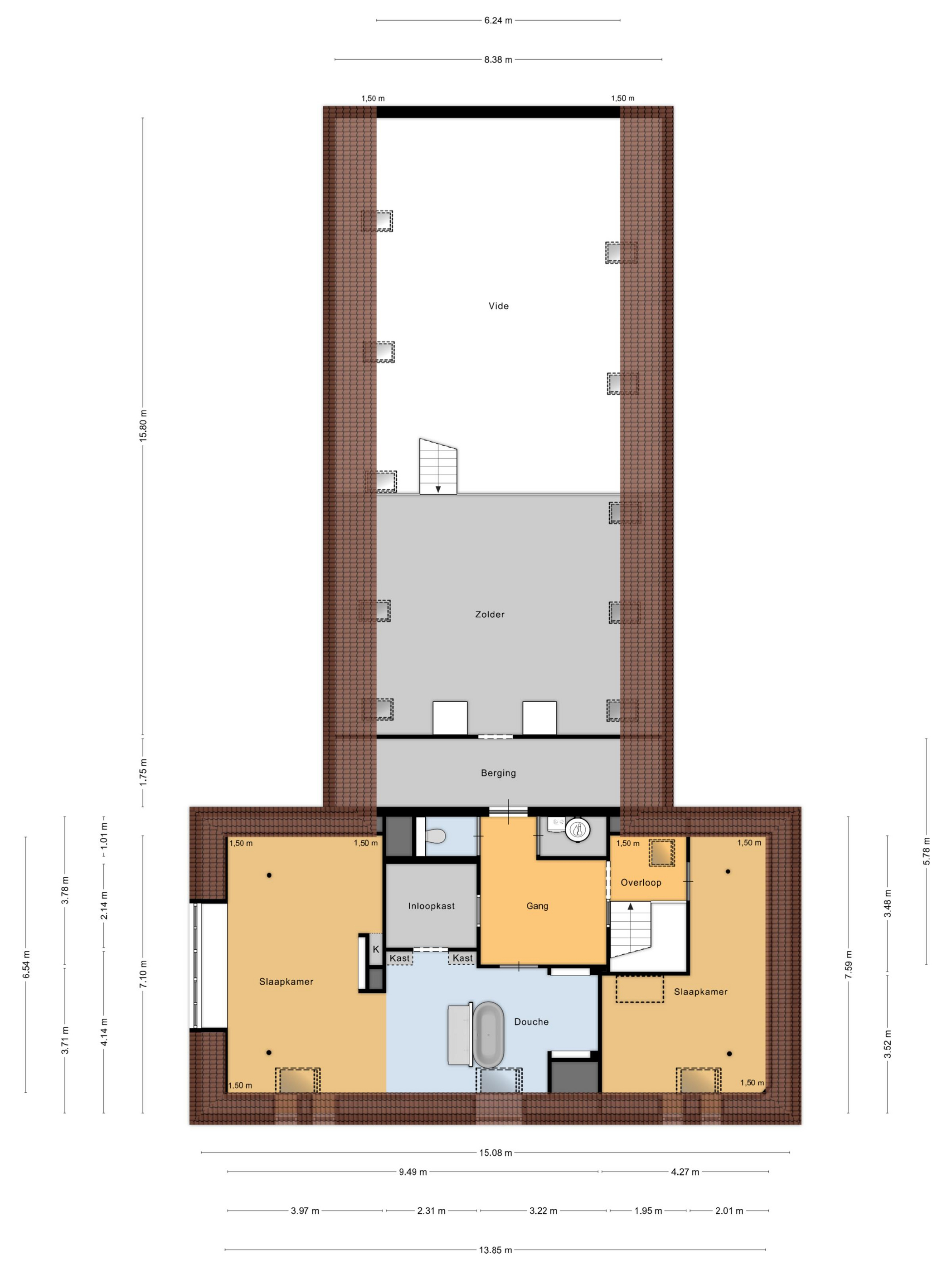 Estate in Almen Netherlands stands as a rare convergence of historic gravitas and refined living, set along the romantic banks of the Berkel River. The main farmhouse, with a living area of 438 m² and a capacity of 2,564 m³, anchors an estate comprising approximately 70,635 m², enveloped by oak and beech forest, wildflower meadows, and an ornamental garden. This setting reflects centuries of Dutch heritage—archives mention Erve Besselink as early as 1382—while the main residence, originally constructed in 1800, has been thoroughly transformed for modern comfort, finished to exceptional standards after its 2011 renovation.