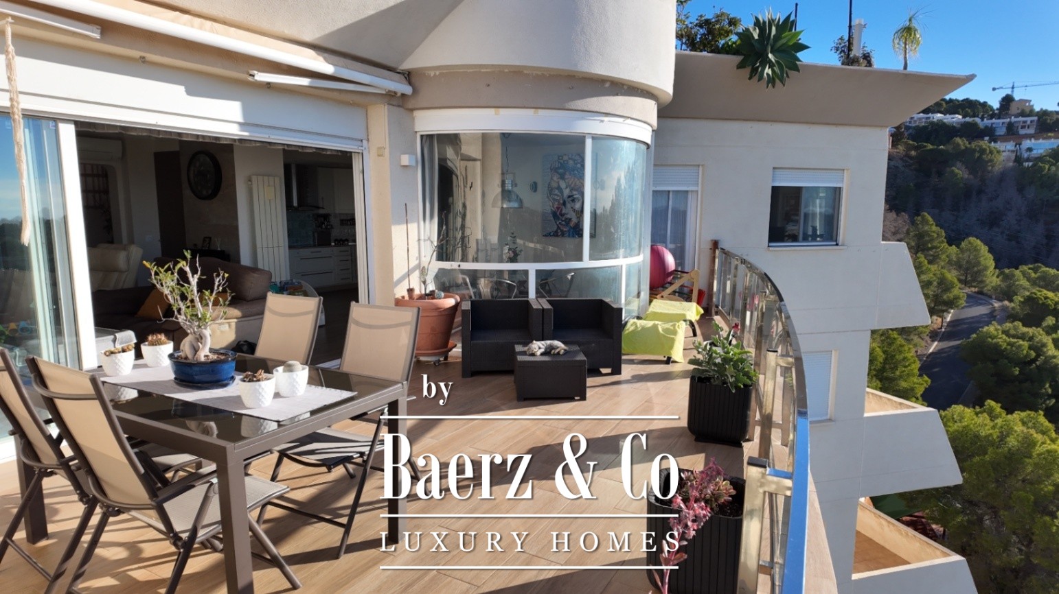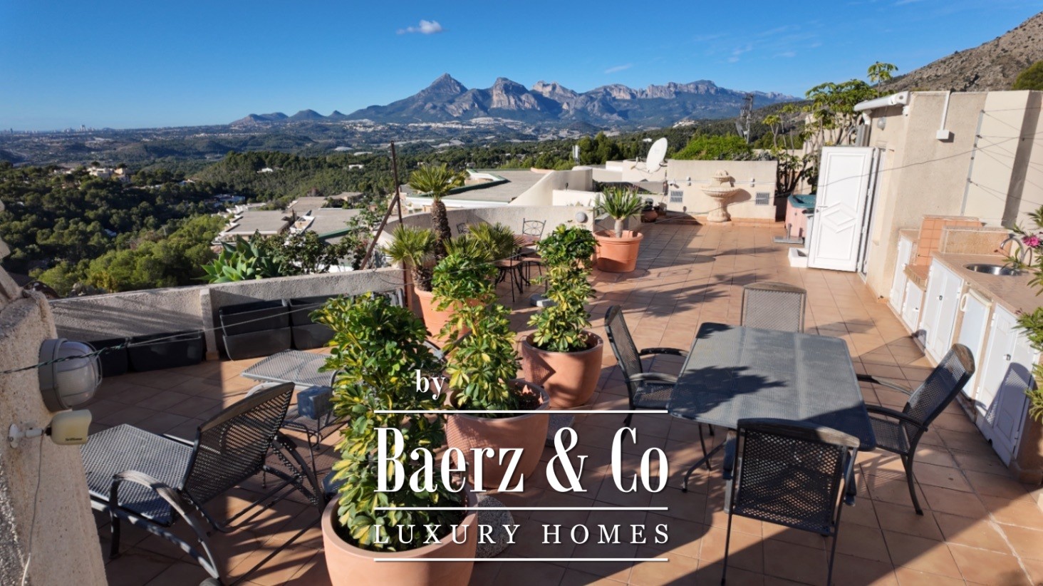 Penthouse Altea la Vieja introduces a private vantage point above the Costa Blanca, where 261 m² of living space unfold across refined interiors and expansive terraces. This penthouse in Altea la Vieja, only 10 minutes from Mascarat beach and moments from Don Cayo Golf Club, the marina, and the historic town center, presents a tranquil address attuned to both relaxation and effortless connection.