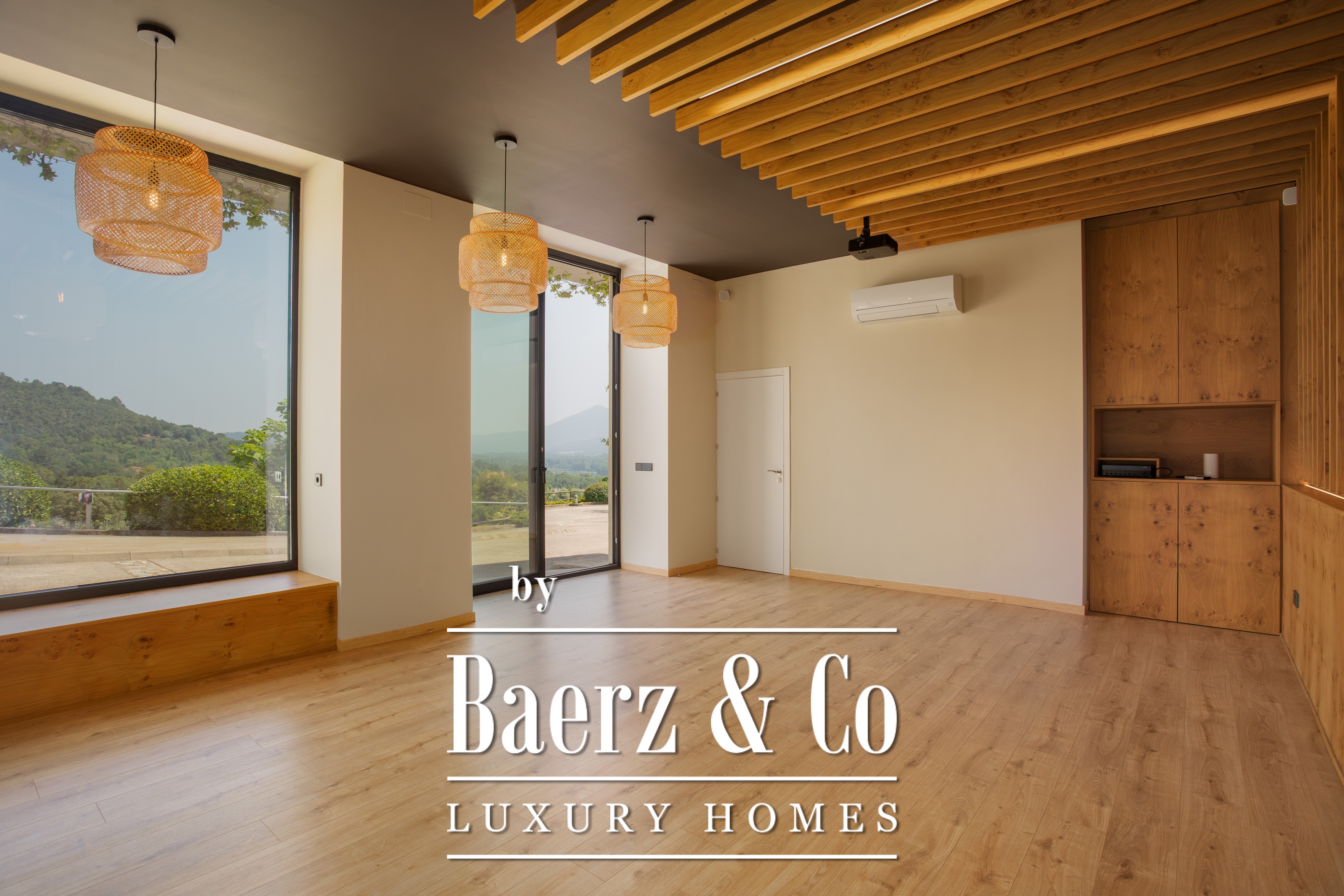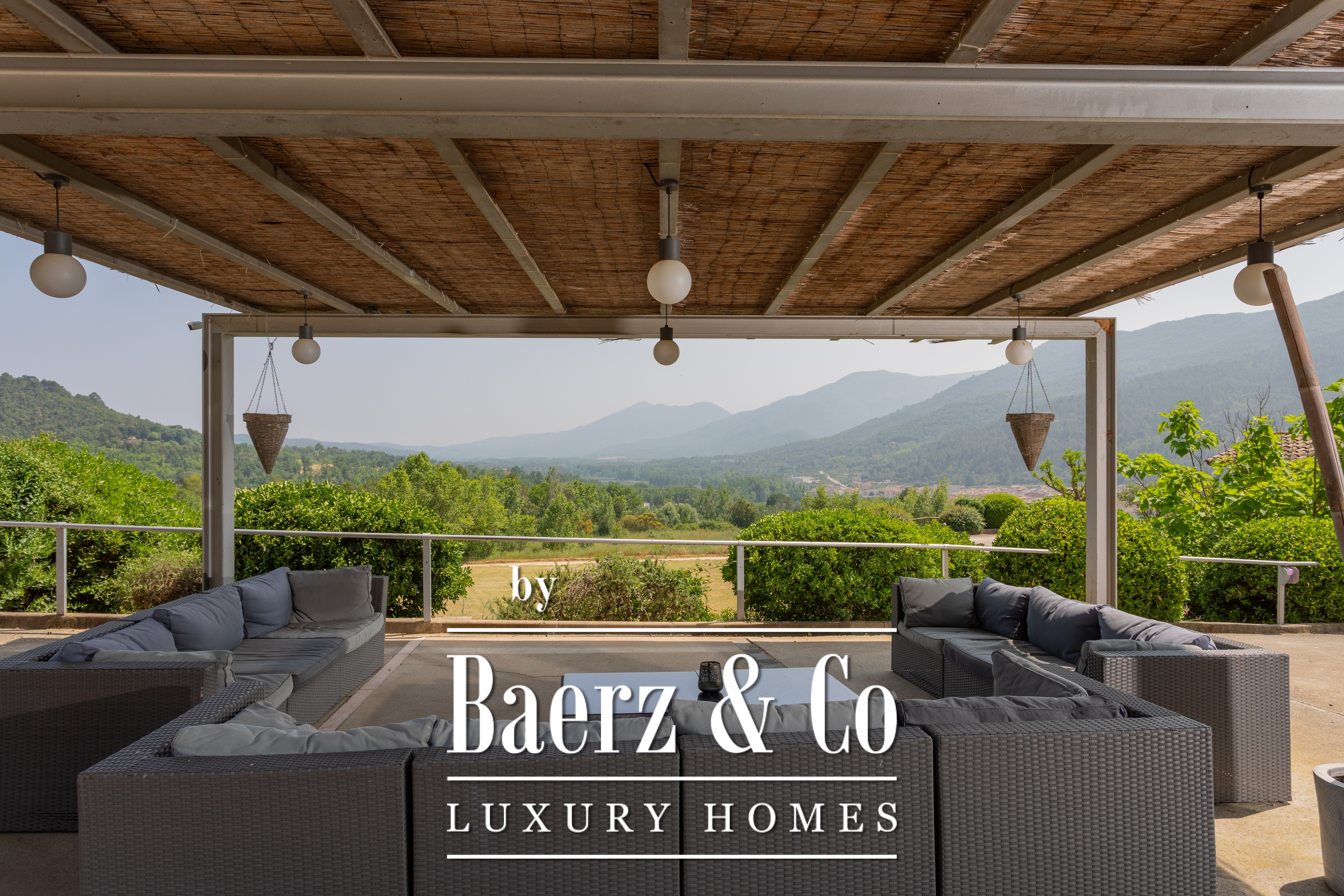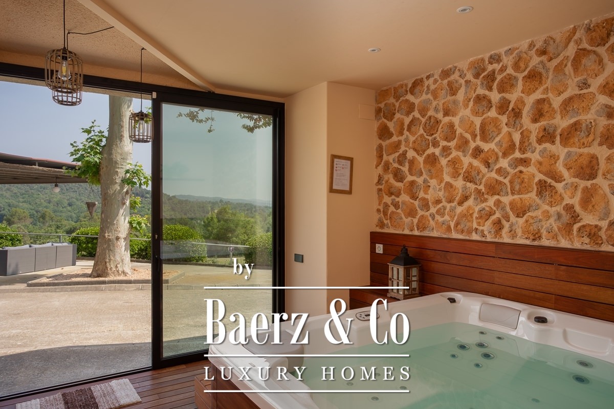 Masia for sale Amer presents a rare opportunity to own an authentic piece of Catalan history. Dating to 1720, this remarkable 645 m² masia has been meticulously restored across a 20,245 m² private estate, elevated above the Amer Valley with uninterrupted views of La Selva and the surrounding mountains. Stone, light, and space define the ambience, while a curated hospitality concept is already established, offering both lifestyle and business continuity. The main residence provides five elegant bedrooms and six bathrooms, refined living spaces, and a professional kitchen. Contemporary comfort coexists with heritage, underscored by air conditioning, heating, and high-speed Wi-Fi throughout. A wellness suite with jacuzzi and dedicated relaxation areas adds a layer of retreat, complemented by terraces and a large illuminated swimming pool tied seamlessly to the manicured gardens.