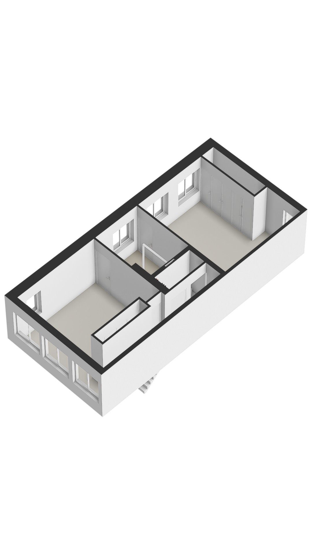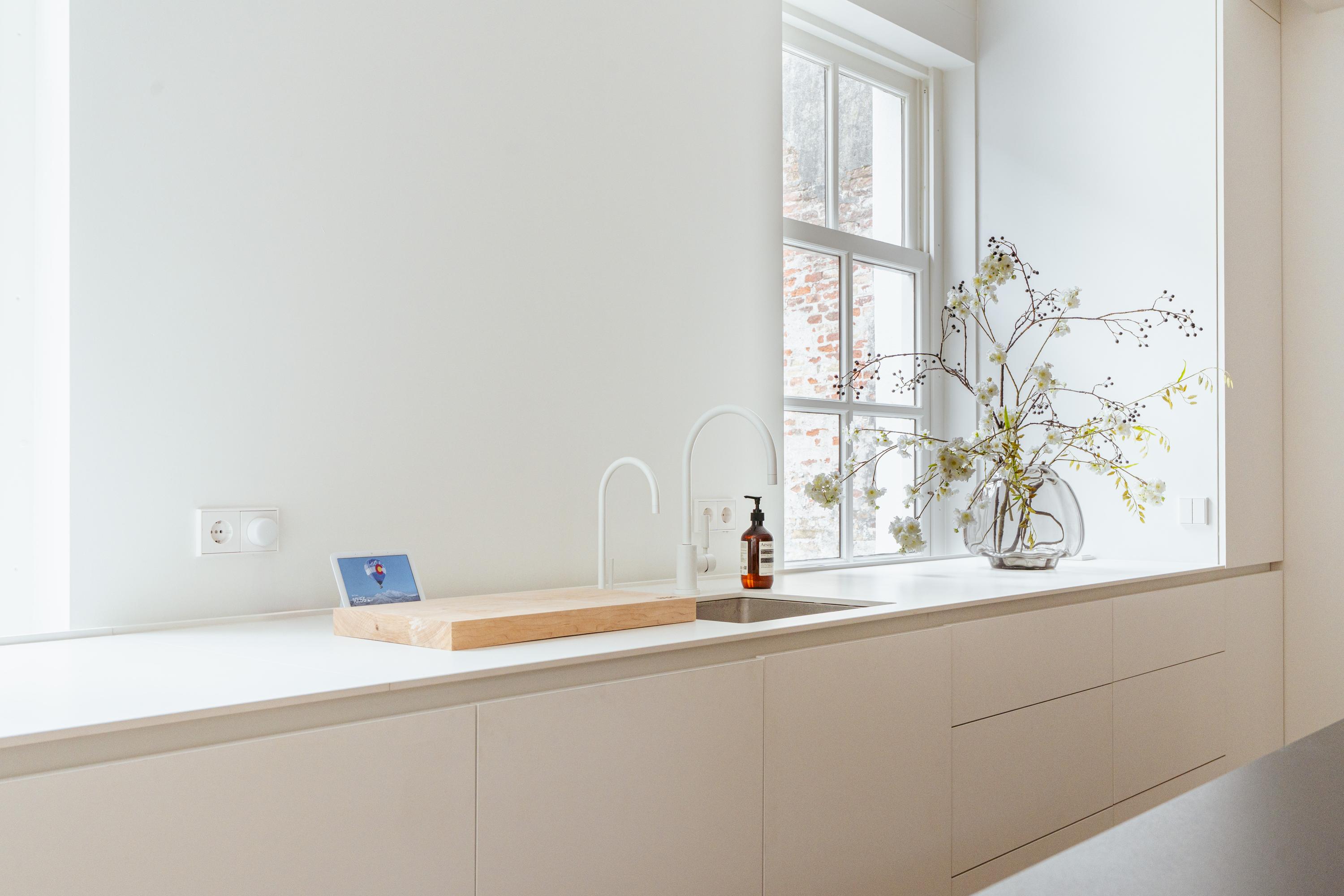 This floor is entirely dedicated to living and entertaining. At the rear is the modern kitchen — the heart of the home. It includes high-end built-in appliances: fridge, freezer, combi oven and microwave, Quooker tap, and a sleek induction cooktop with integrated extractor fan. Ample storage keeps the space minimalist and tidy. The centrally placed island includes a bar area for informal dining. At the front is the living area, where large windows offer a sweeping view over the canal. The combination of natural light, warm wooden floors, and subtle finishes create a calm, inviting ambiance. French doors open to a hallway with a separate toilet, and a staircase leads to the third floor.