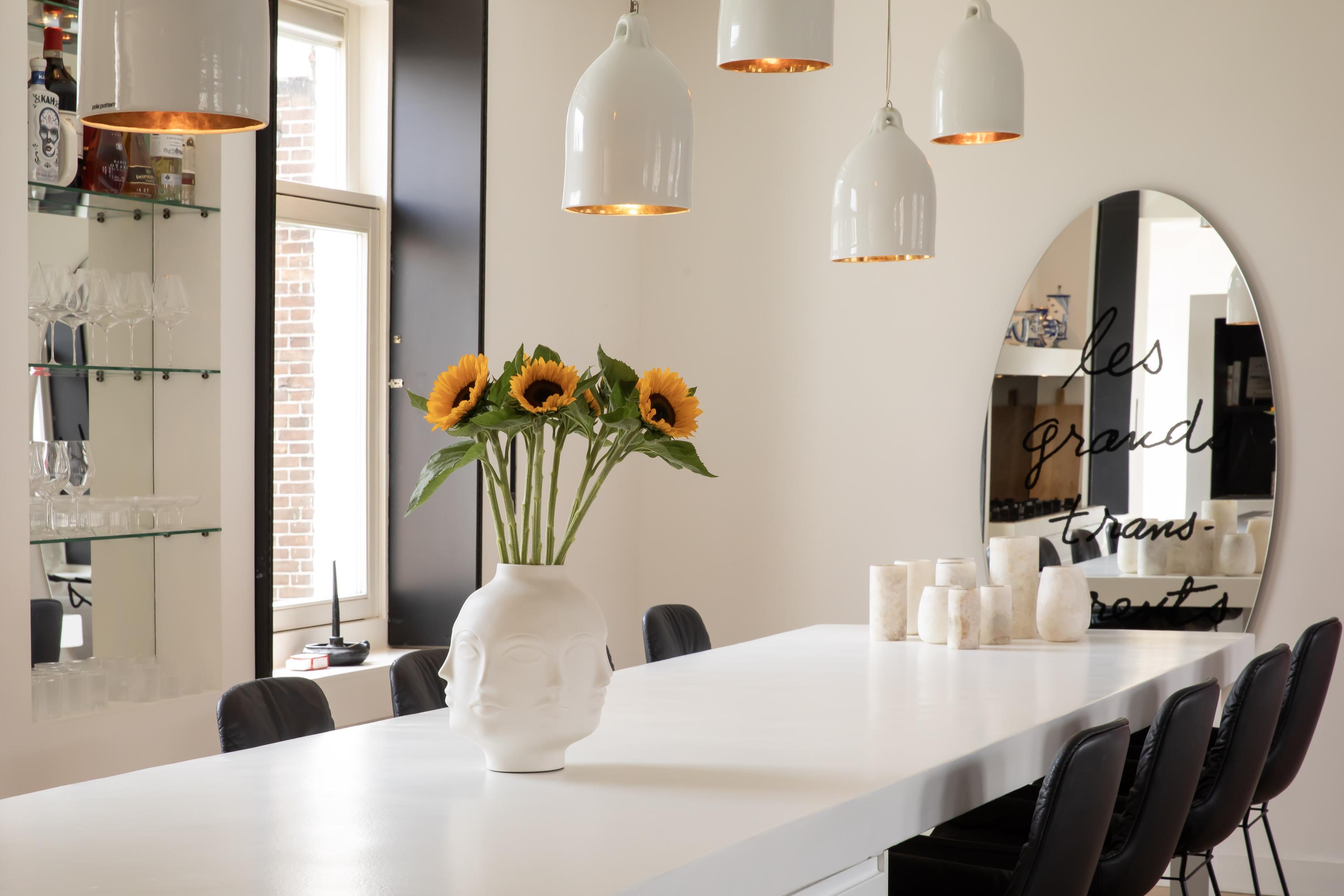 This apartment spans two floors and features a strikingly wide façade with no fewer than four large windows. The property offers a generous living room with open kitchen, a balcony, two well-sized bedrooms, and two modern bathrooms. The spacious roof terrace with outdoor kitchen provides a stunning view over the city. Finished with high-quality materials and great attention to detail, this loft-like apartment offers a stylish and comfortable living environment, with the vibrant city center just around the corner.