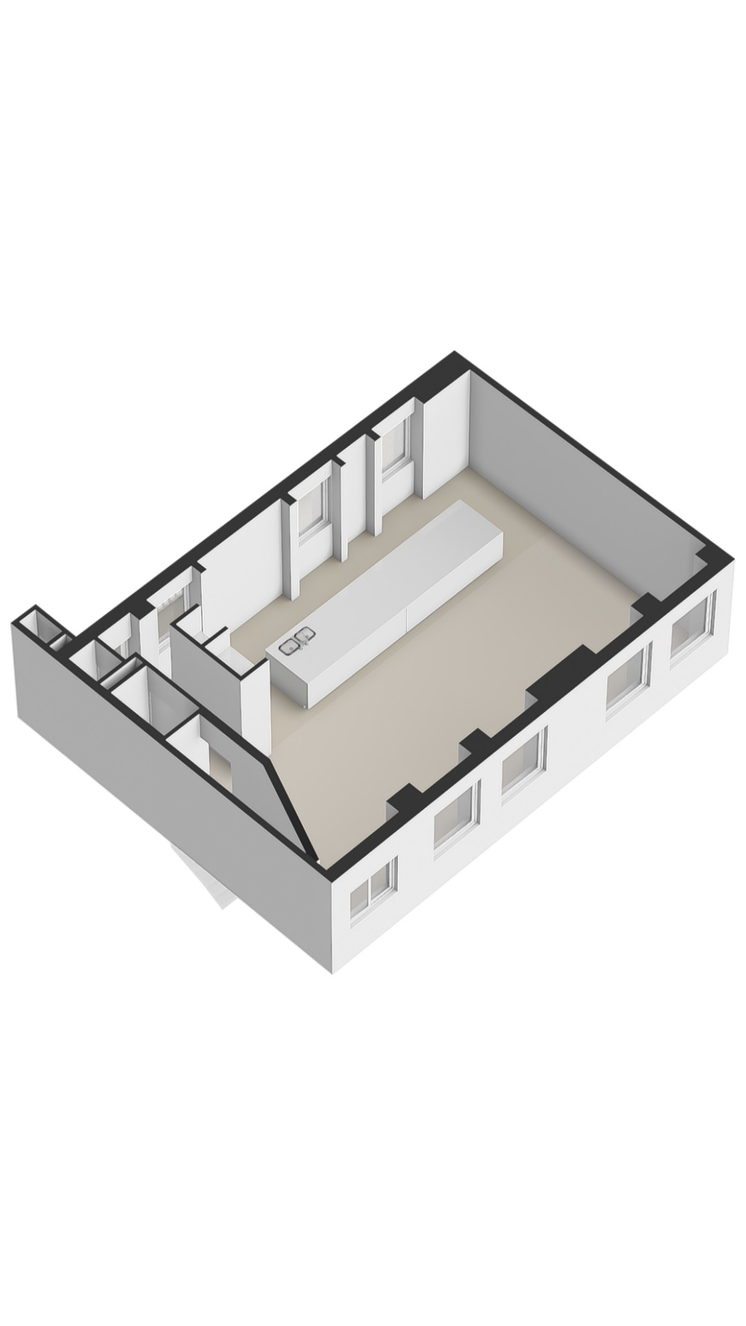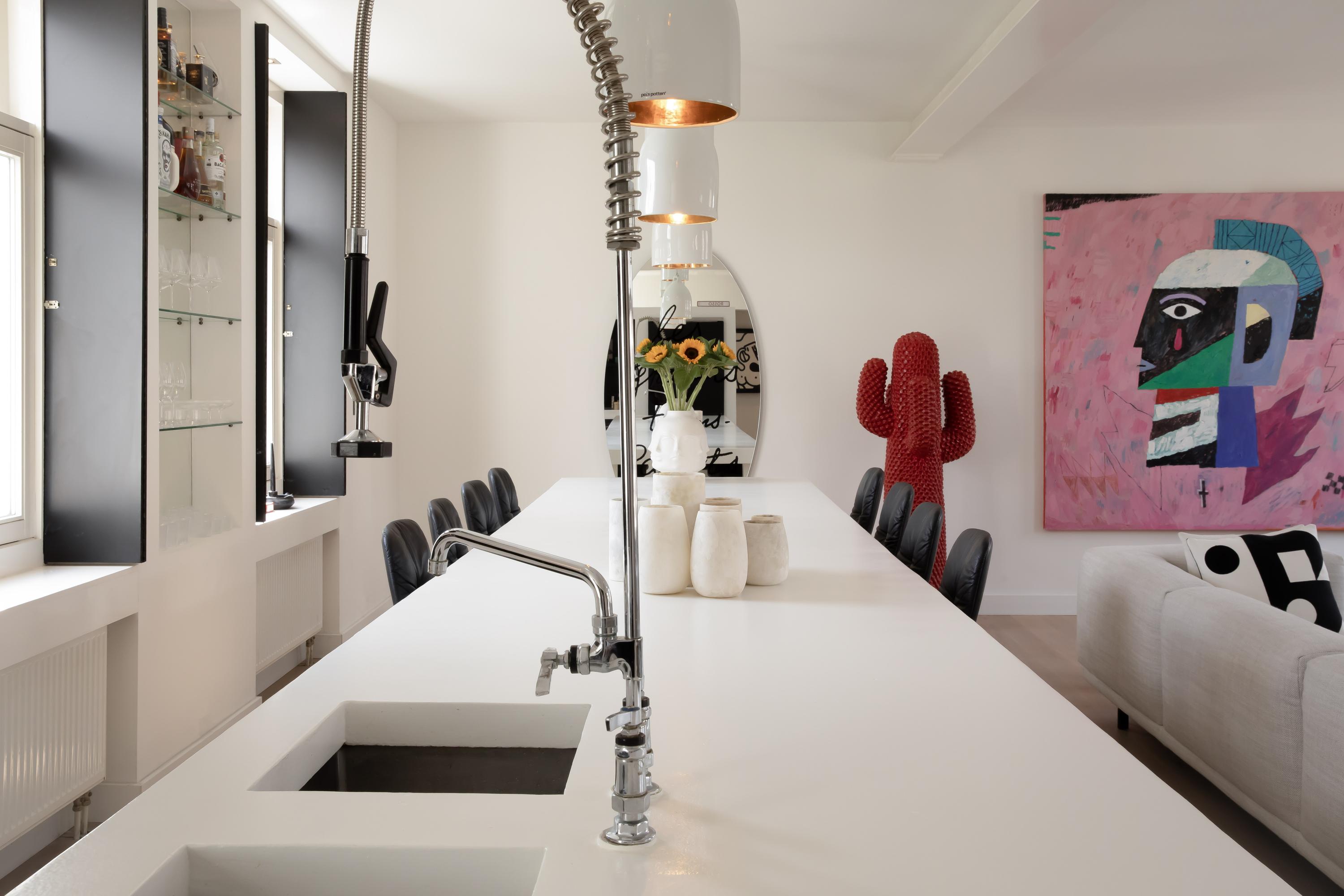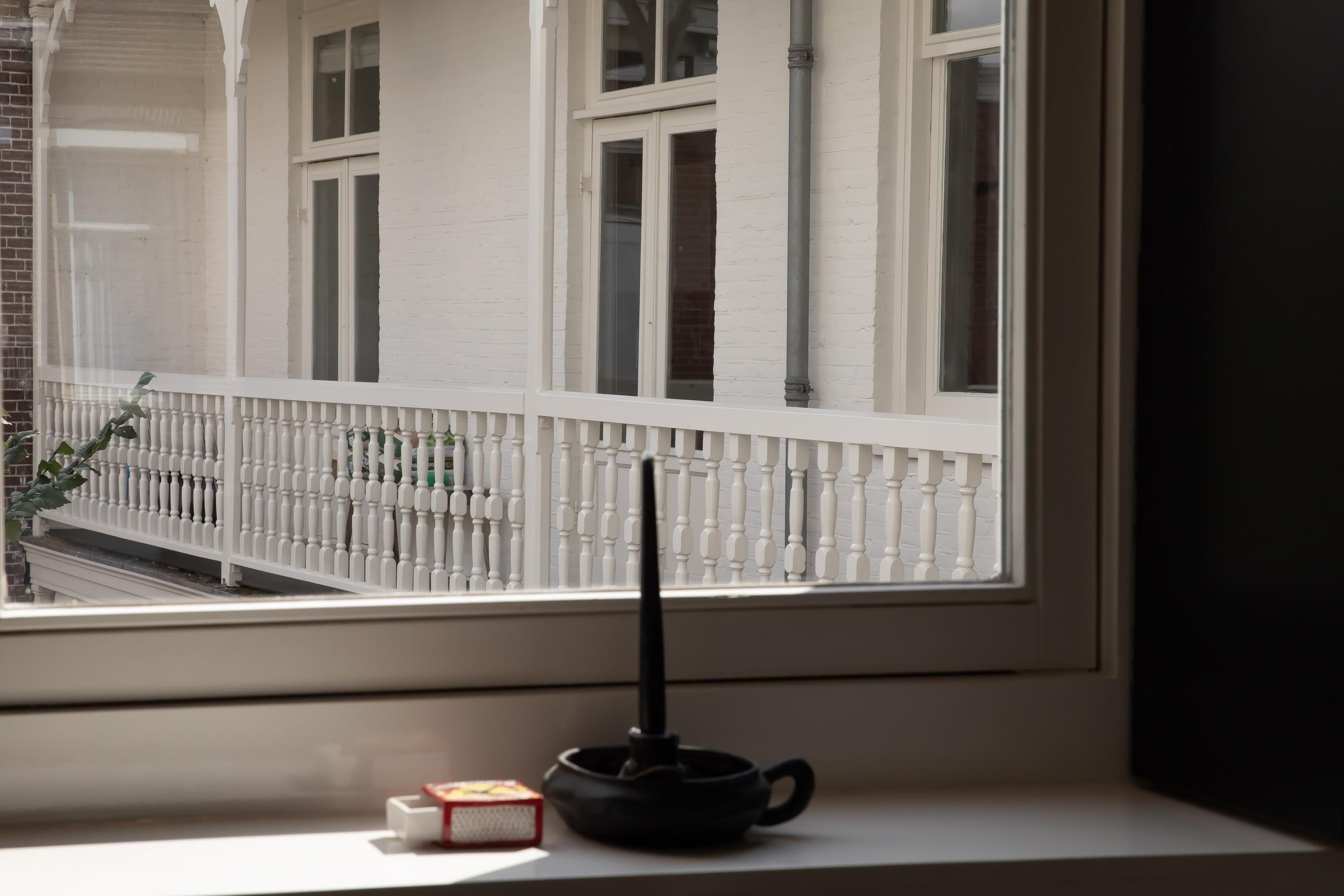 The staircase leads directly into the spacious open-plan living room on the third floor. The room is extra wide and features no fewer than four windows – double the amount typically found in Amsterdam – allowing abundant natural light to flow in.