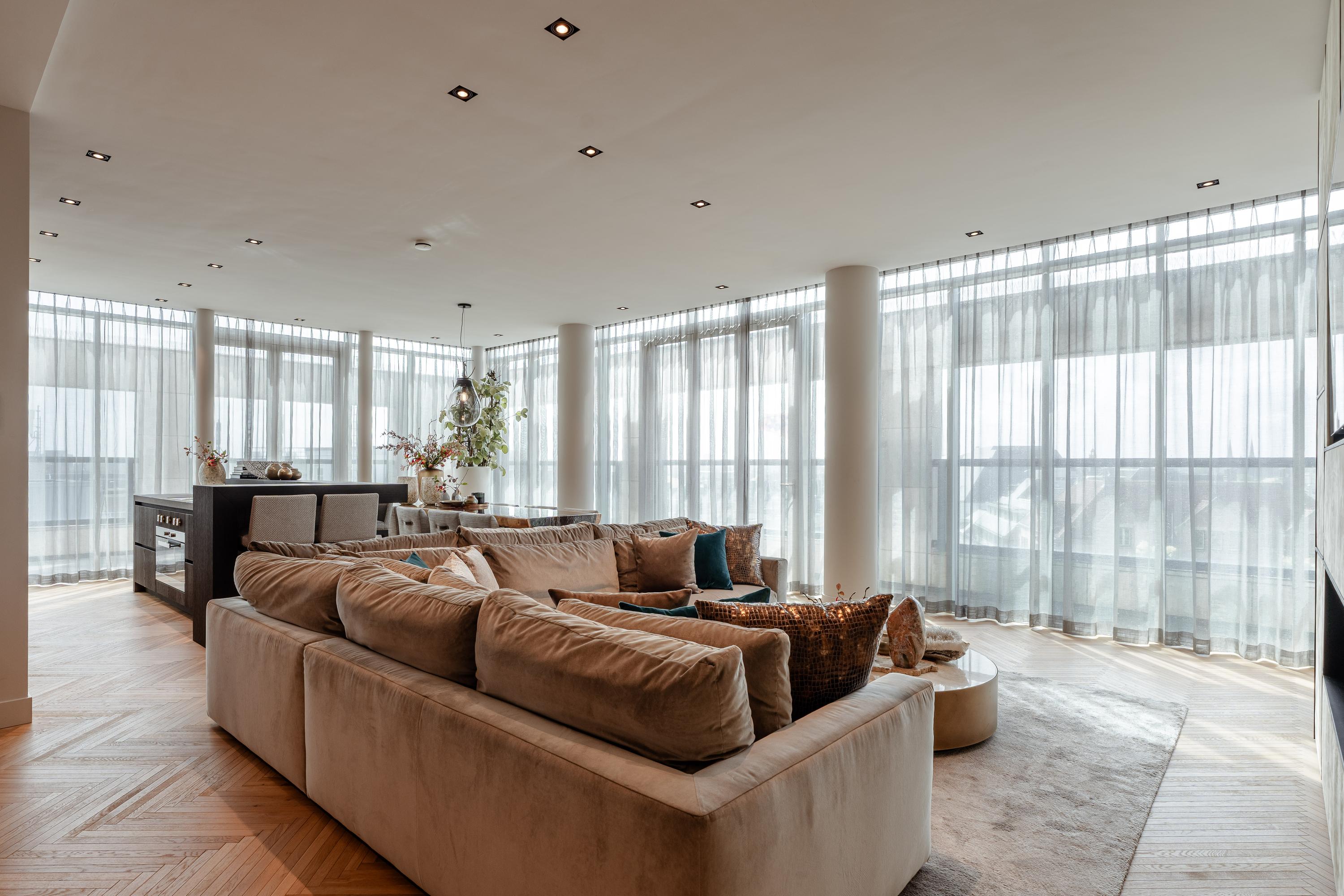 The large glass façades allow you to fully embrace the vibrant city life outside or close it off entirely to enjoy privacy and tranquility. The high-quality materials and finishes ensure a refined and comfortable living experience. The interior has been designed under the supervision of internationally renowned interior architect Pieter Laureys and finished to the highest standards. The apartment is offered including new, carefully selected bespoke furniture.
