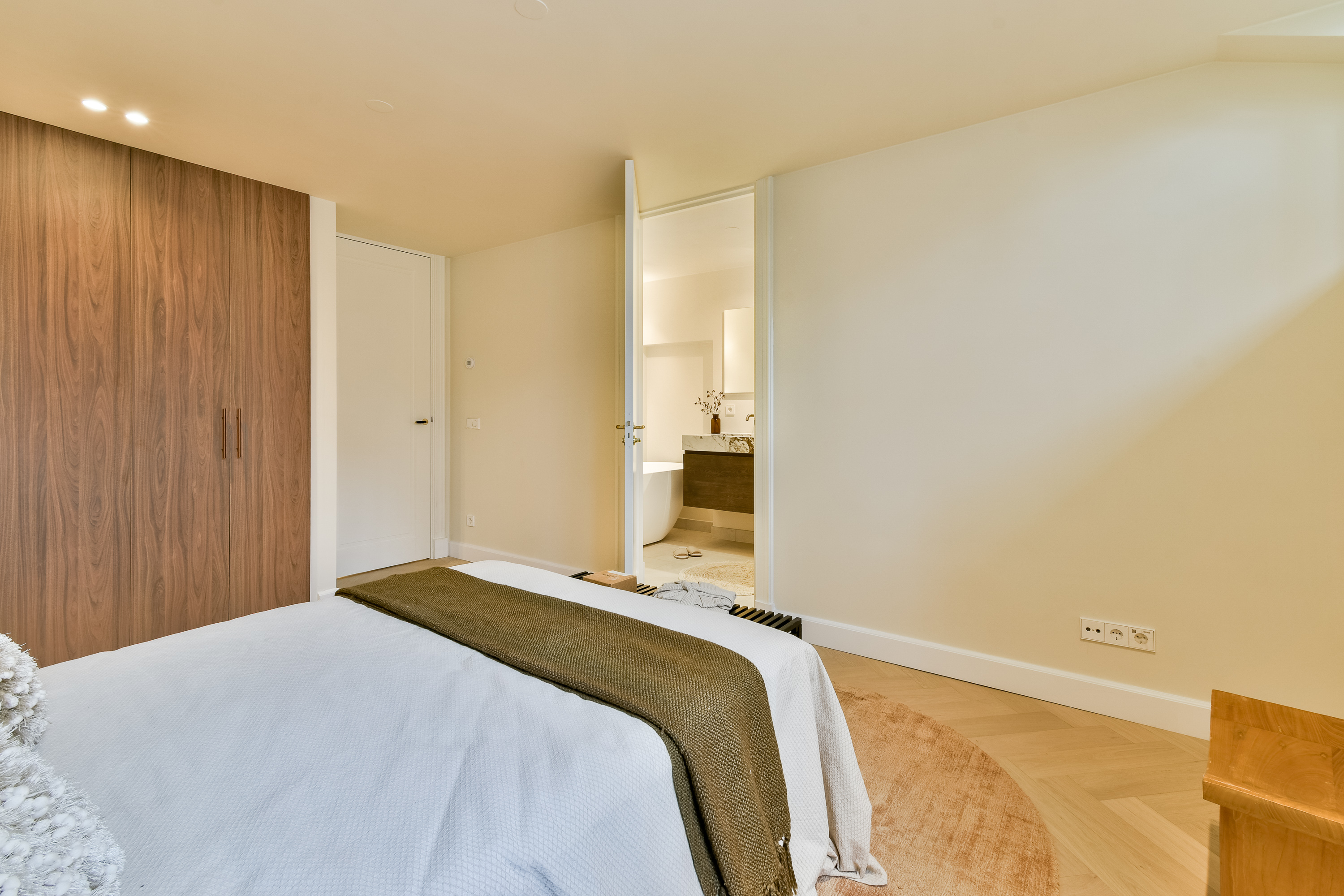 The entrance is located on the ground floor. Here you step into a bright and spacious living area, where a generous lounge and dining space seamlessly blend together. The modern open kitchen connects the two areas and is fitted with a cooking island and high-quality built-in appliances—a true eye-catcher for cooking enthusiasts. From the dining area, large French doors open onto the charming (inner) garden, a sheltered private retreat in the heart of the home, away from the city bustle. Here, you can enjoy a wonderful indoor-outdoor living experience. At the rear, there is an additional room, accessible both from the garden and via the hallway next to the dining room. This space features a second kitchen and therefore offers numerous possibilities, such as a home office, guest accommodation, or hobby room. Ample built-in cupboards on this floor ensure sufficient storage space.