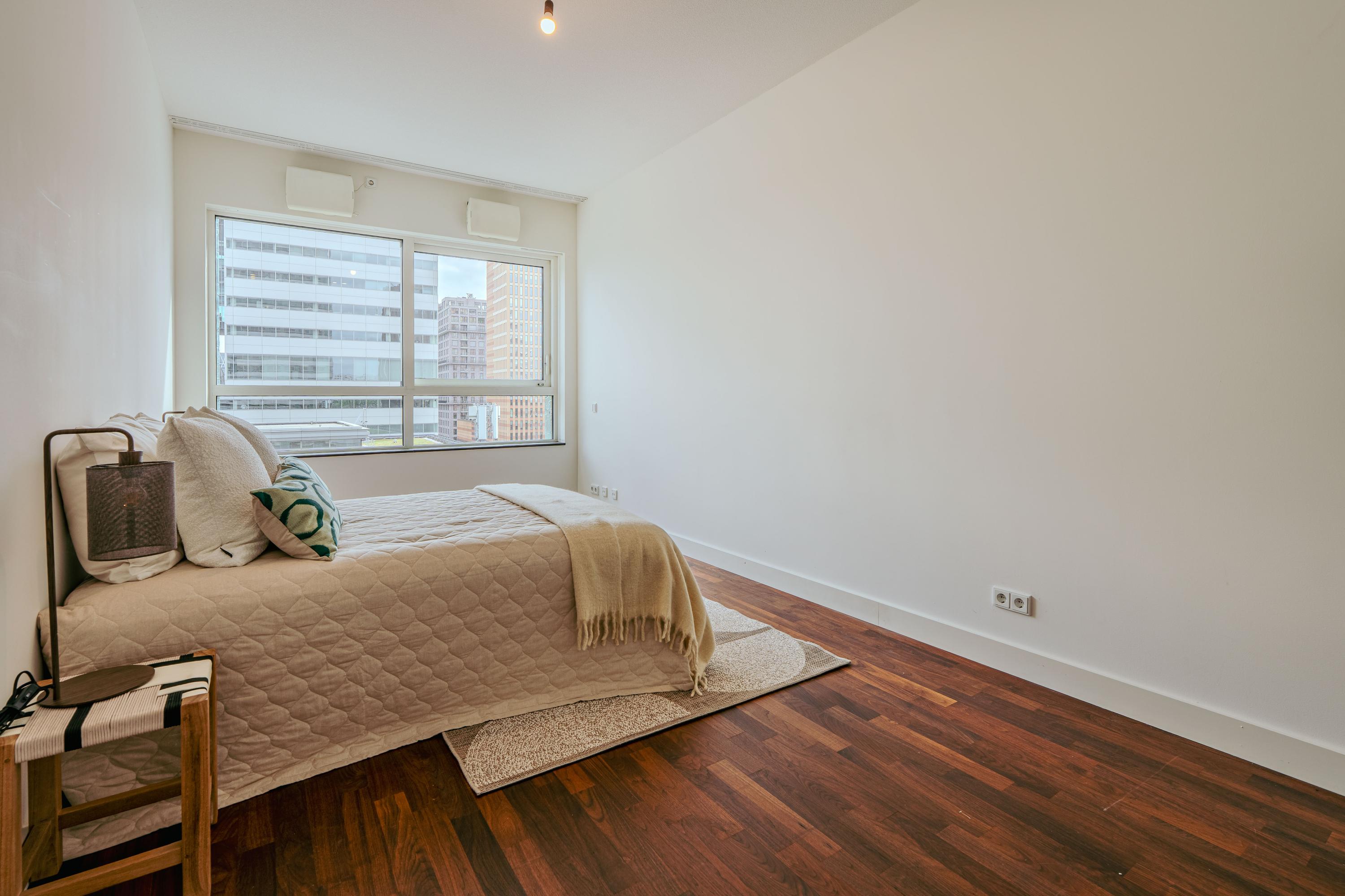 Luxurious living on the 8th floor of New Amsterdam on the Zuidas. In the New Amsterdam building, we present a modern apartment of approximately 105 m² with stunning views over the Zuidas. This residence features two spacious bedrooms, a contemporary bathroom, and a generous balcony of approx. 11 m². Here, comfort and luxury truly come together.