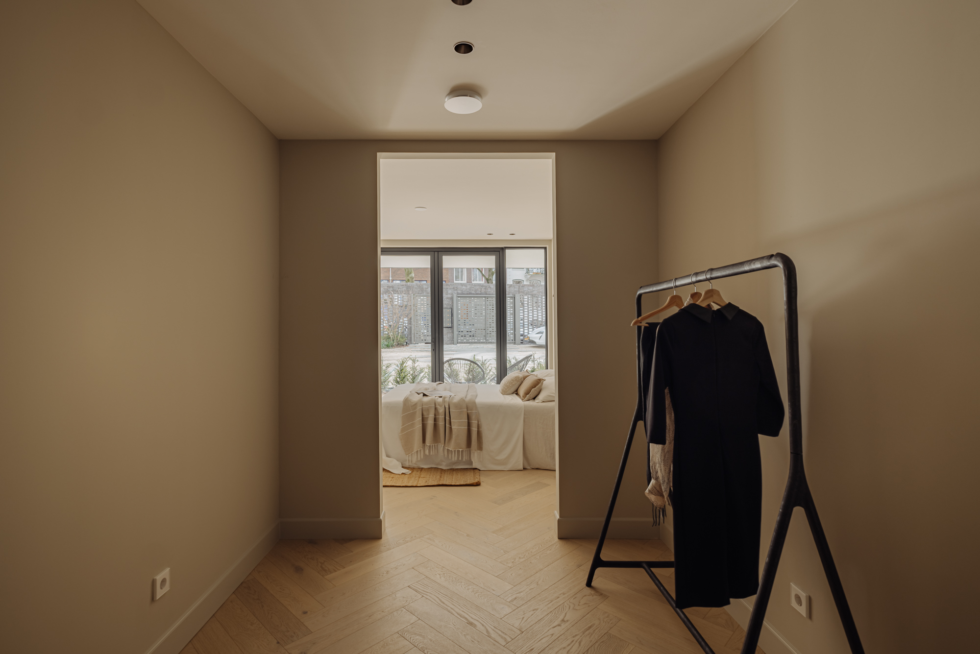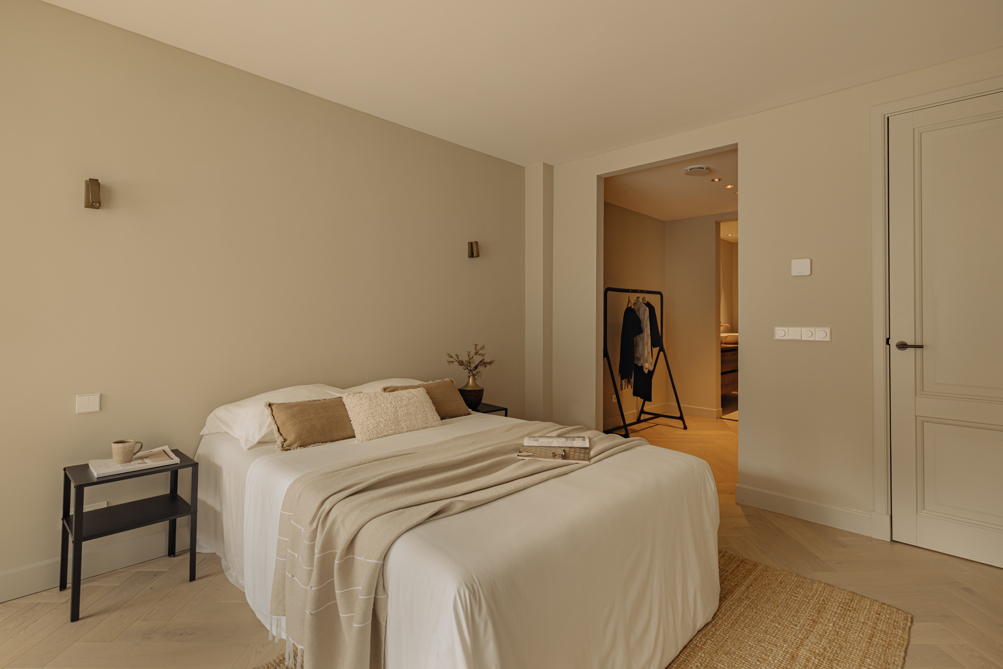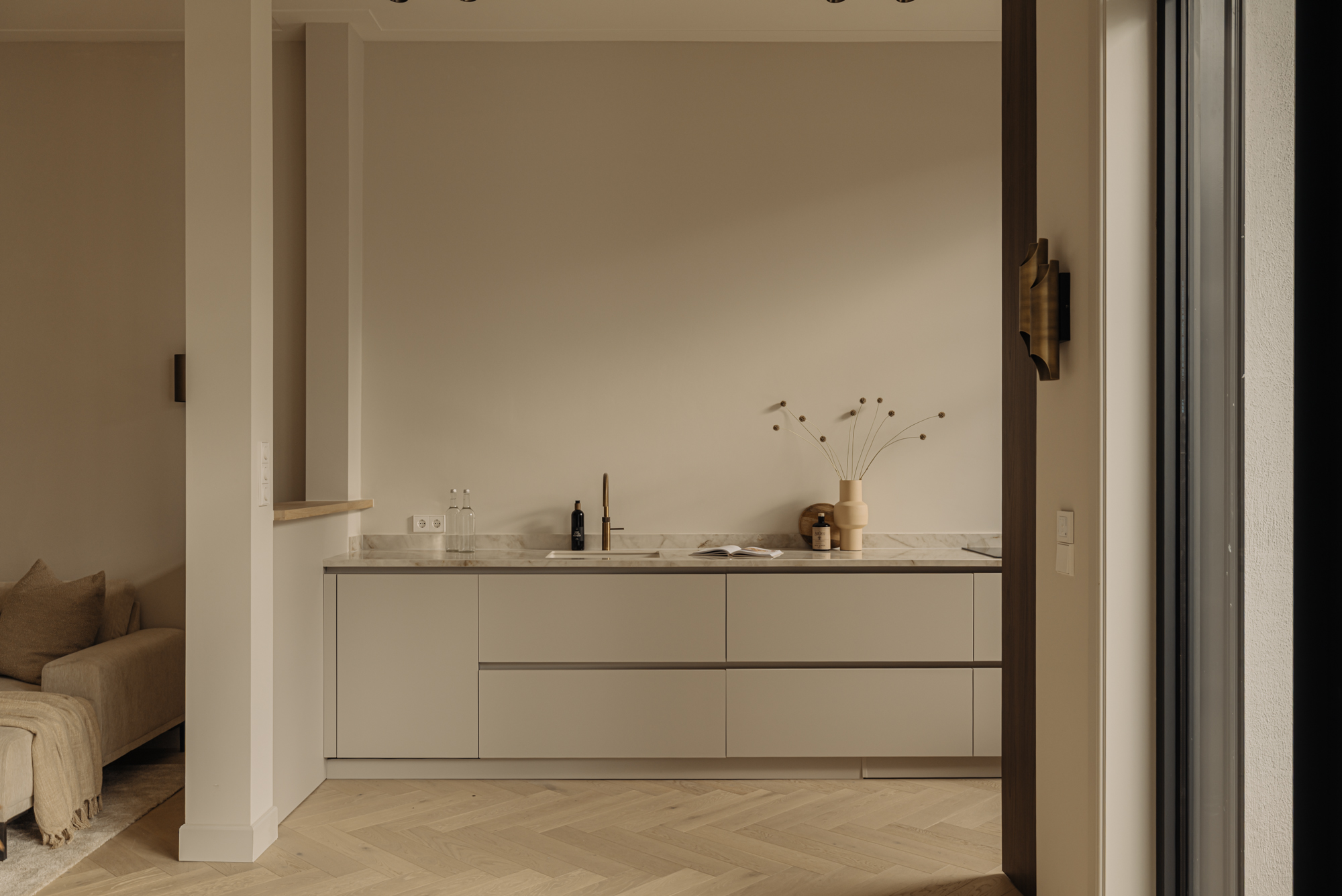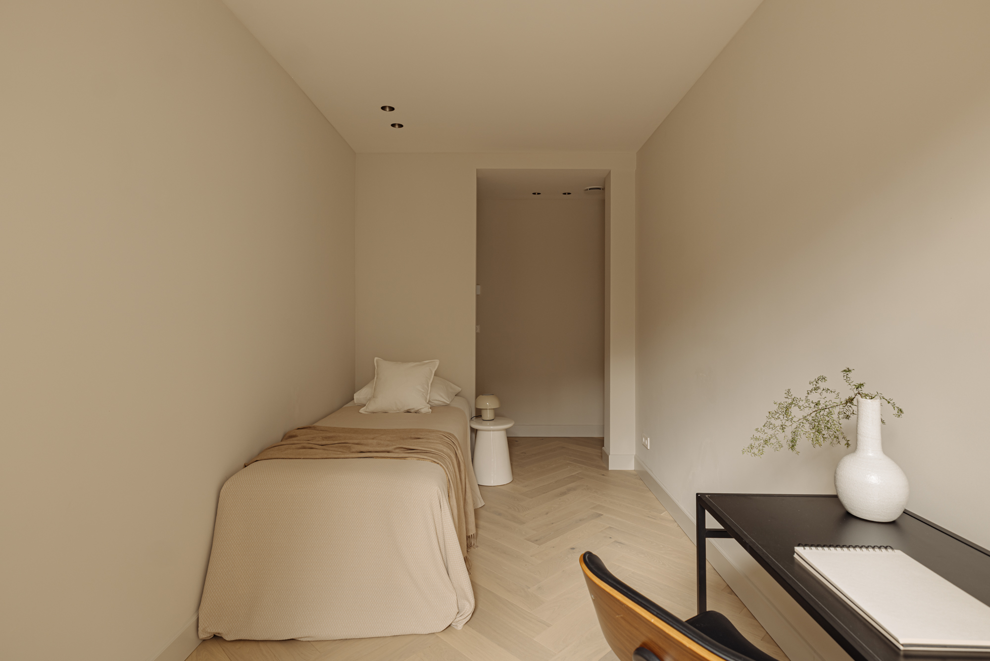 Apartment Amsterdam is presented across 182 m² of refined space, offering four bedrooms, two bathrooms, a south-facing balcony of 7 m² and an 11 m² terrace. Located in the Hemony complex on a quiet street in De Pijp, this residence is freehold and enveloped in a sense of urban calm. The double ground-floor layout welcomes you with high ceilings, luxury herringbone flooring and a palette of warm, subtle tones. The Italian-designed kitchen features white cabinetry combined with walnut accents and marble worktops, blending visual clarity with practical storage and top appliances.
