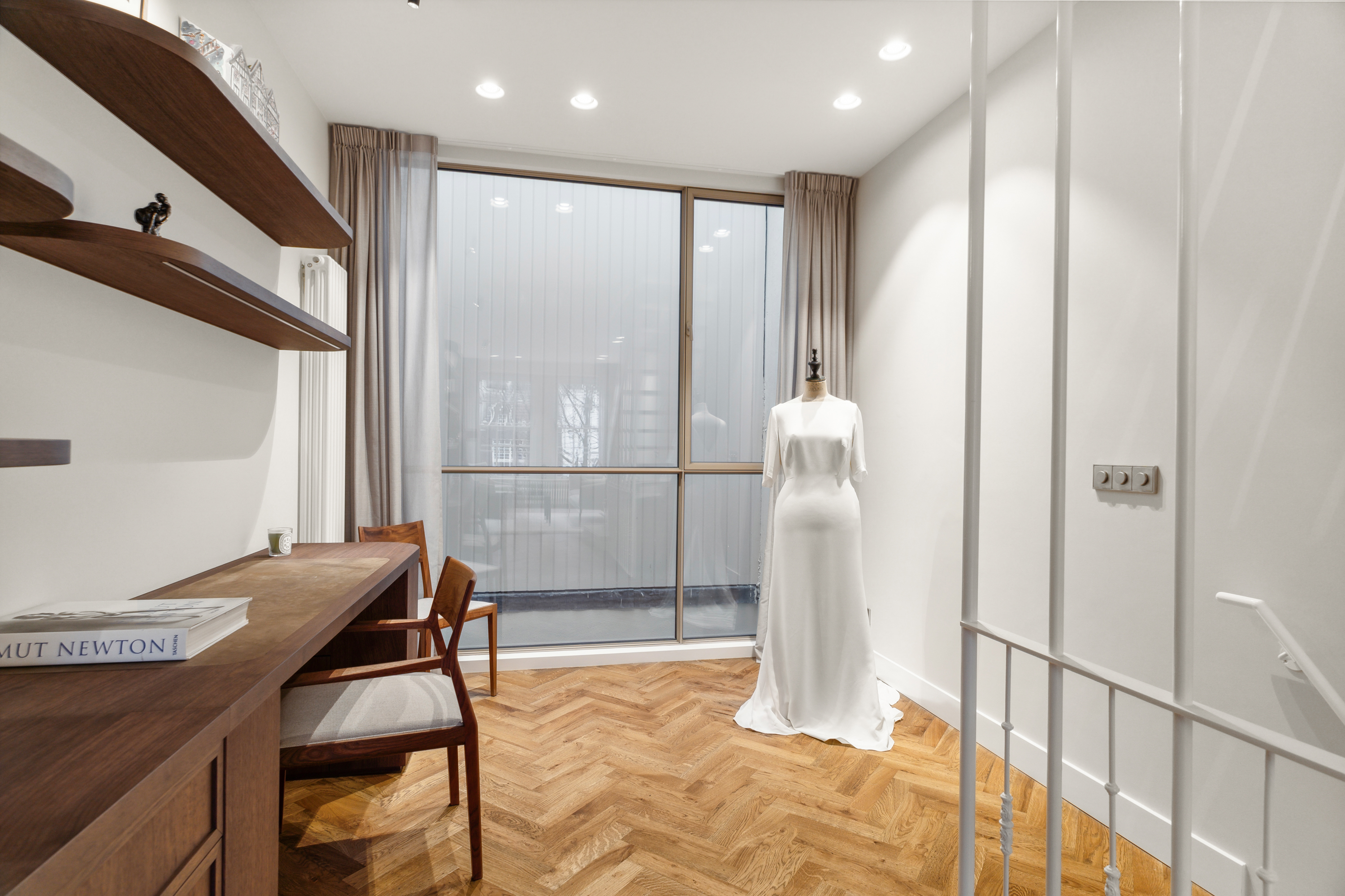 At the front, by the window, a workspace has been created with a beautiful view over the Herengracht.