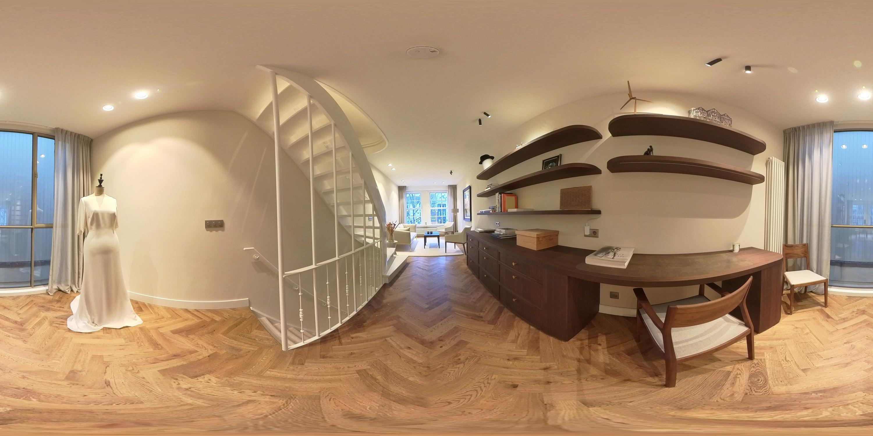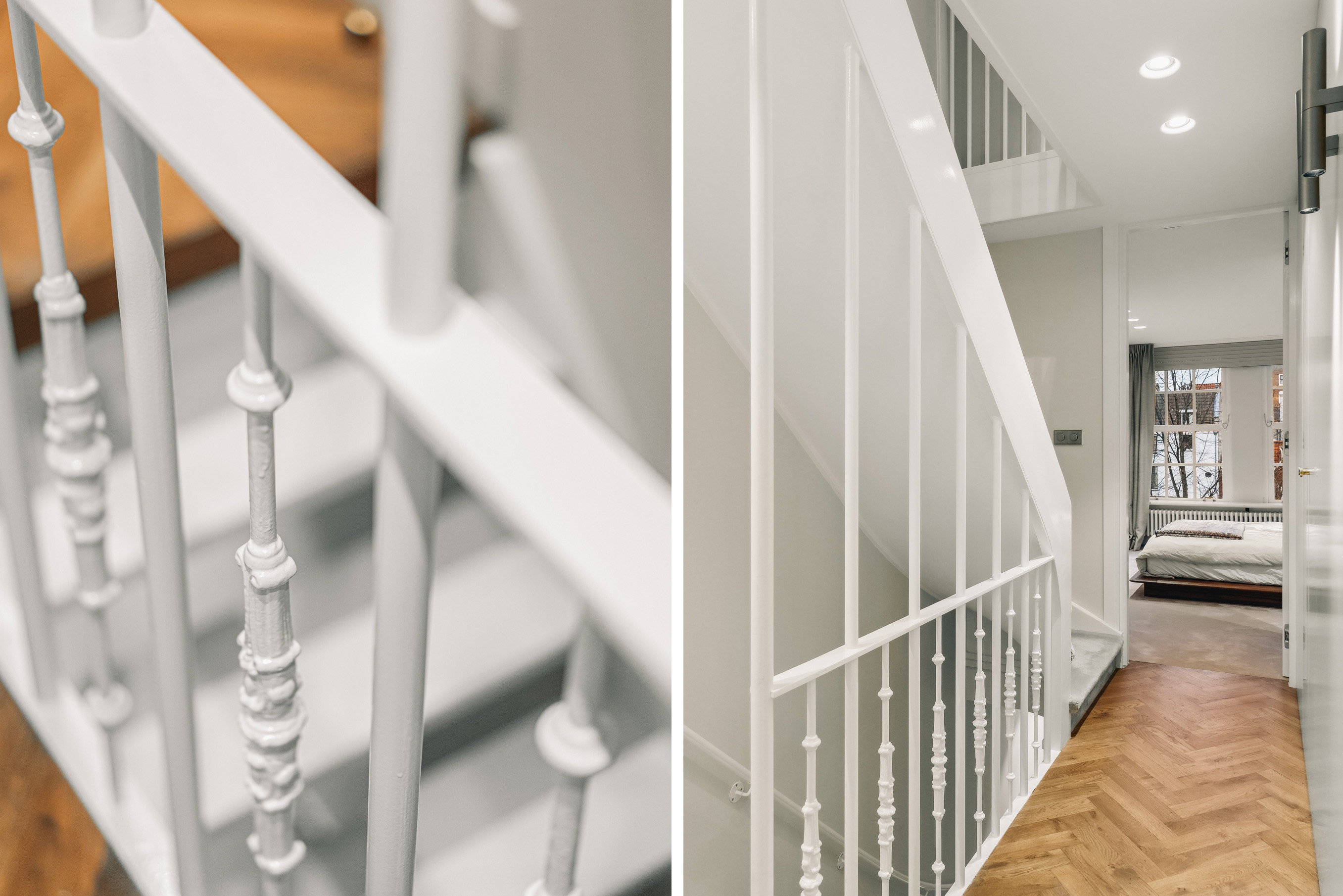 The first floor is designed as a stylish salon. This level features an oak herringbone parquet floor and large windows at the front, offering beautiful views over the Herengracht and excellent natural light.