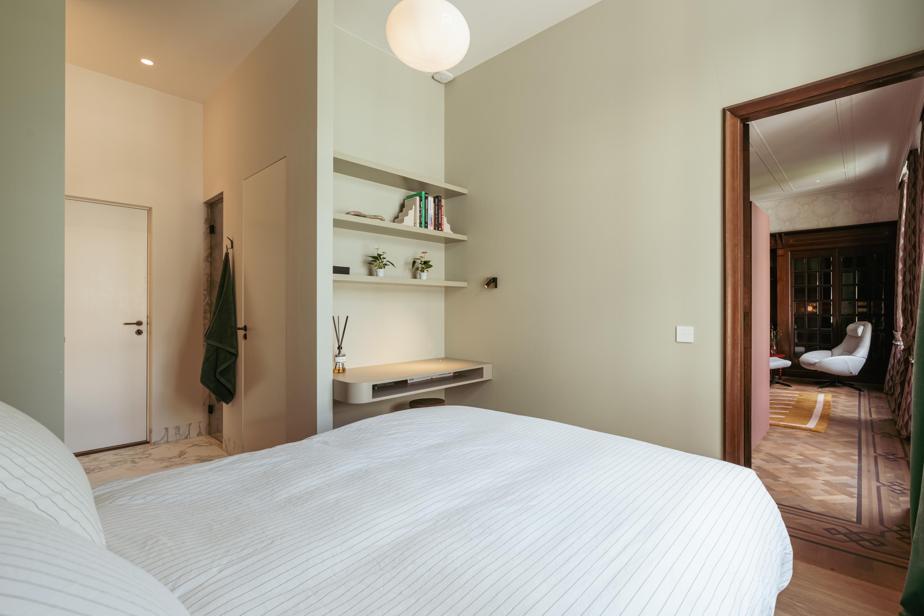 Aan de voorzijde bevindt zich daarnaast nog een ruime slaapkamer en een luxe badkamer voorzien van inloopdouche, wastafel met meubel en een separaat toilet met fontein.