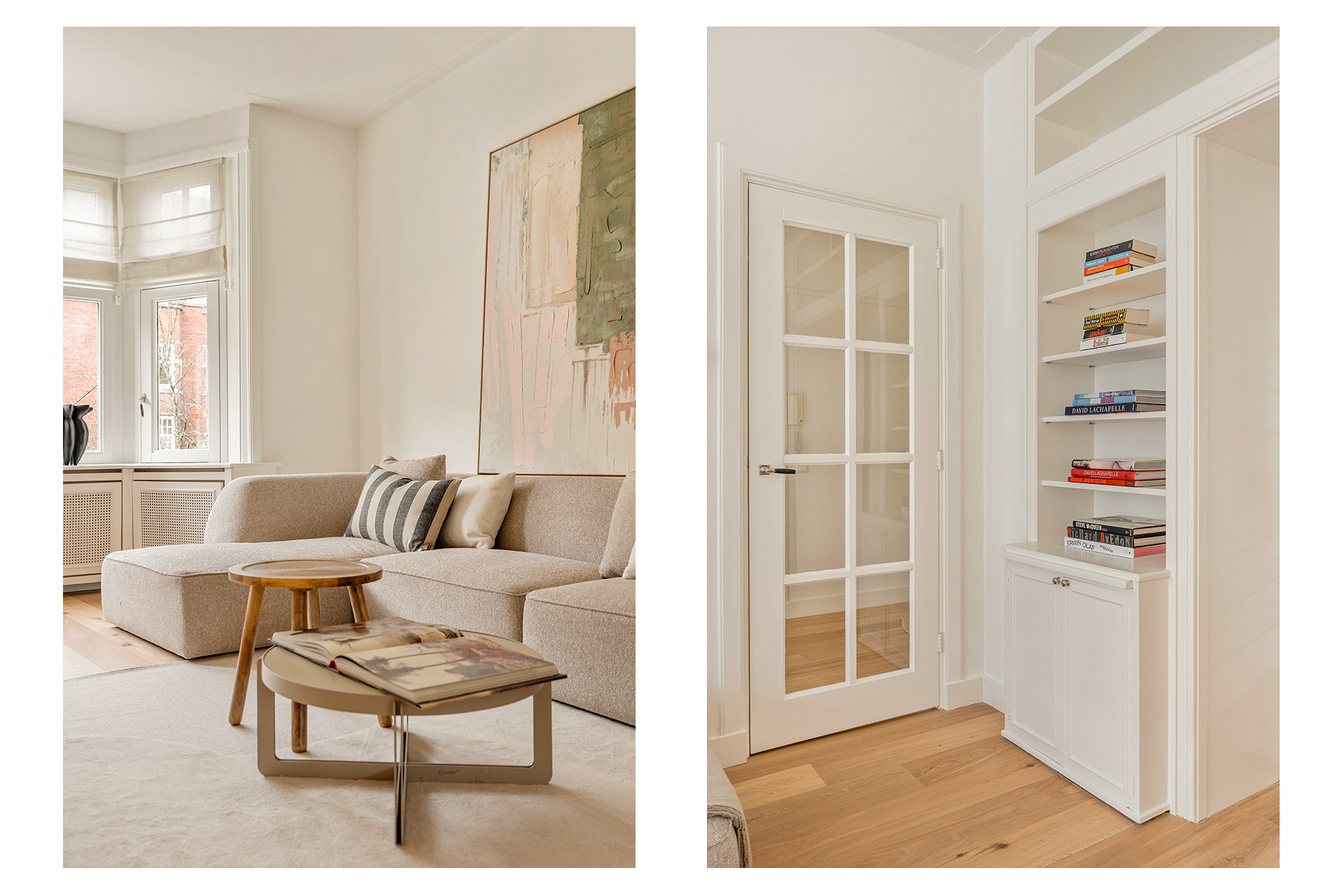 Apartment Amsterdam Zuid brings together period charm and contemporary comfort in a coveted Amsterdam-Zuid address. This residence spans approximately 112 m², offering three well-proportioned bedrooms and a spacious living area infused with character. The apartment’s heritage features, including original sliding doors, custom cabinetry, and iconic bay windows, are complemented by thoughtful renovations such as floor insulation and double glazing.
