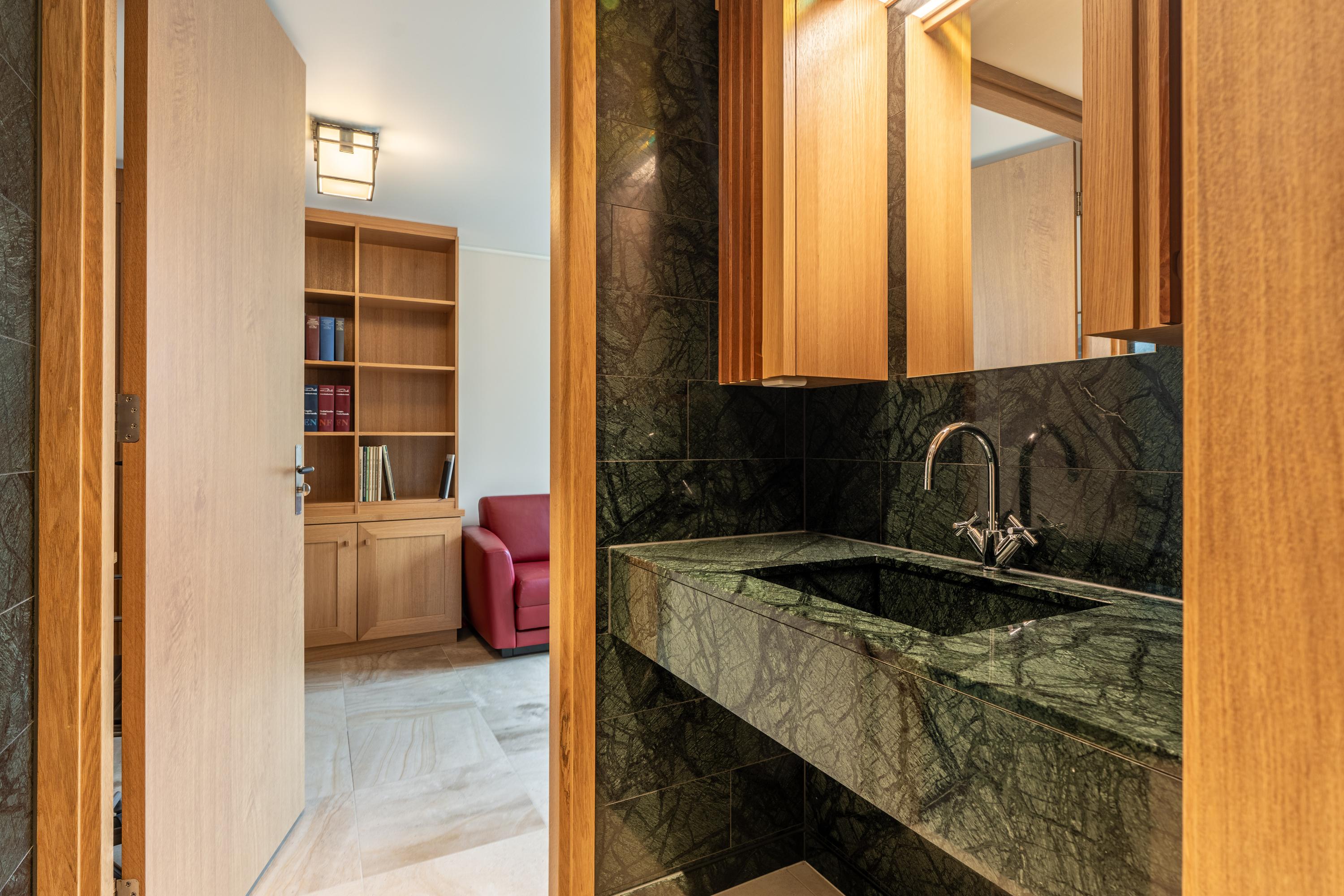 Penthouse Amsterdam is set on the eighth floor of the Byzantium complex, directly adjacent to Vondelpark. This 219 m² apartment balances architectural clarity with exceptional privacy, offering spacious light-filled living and unrivalled proximity to the green heart of the city. From the first moment in the luxurious natural stone lobby, the building’s elegance is apparent. Designed by Rem Koolhaas, Byzantium provides a secure environment with 24-hour surveillance, a concierge, and direct lift access from the underground garage, where parking with an EV charging point is available as an option.