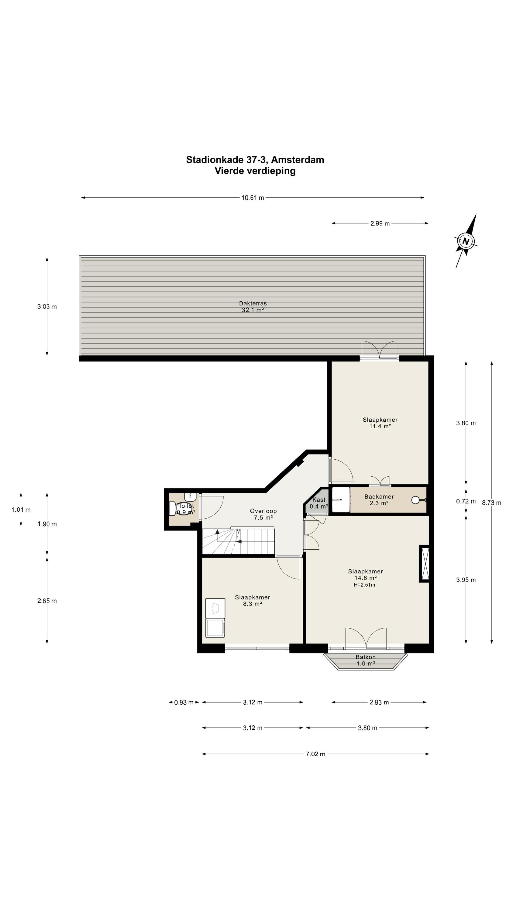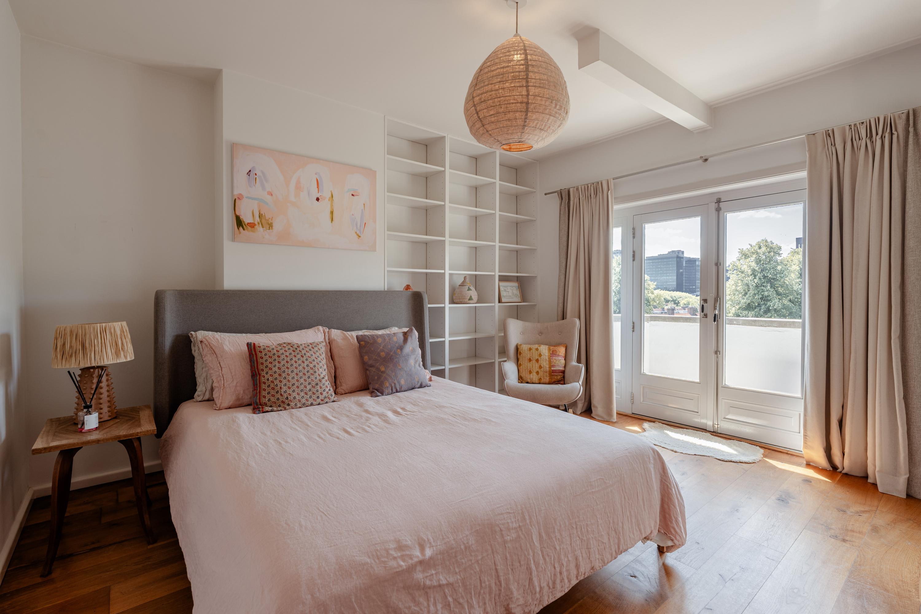 Apartment Amsterdam South defines a rare blend of scale and serenity overlooking water in the Stadionbuurt. This upper-level residence spans approximately 194 m² across three light-filled floors, offering six bedrooms, two bathrooms, and two distinct terraces. Its location, set moments from Zuidas, Beethovenstraat, and Beatrixpark, delivers both cosmopolitan access and a sense of community.