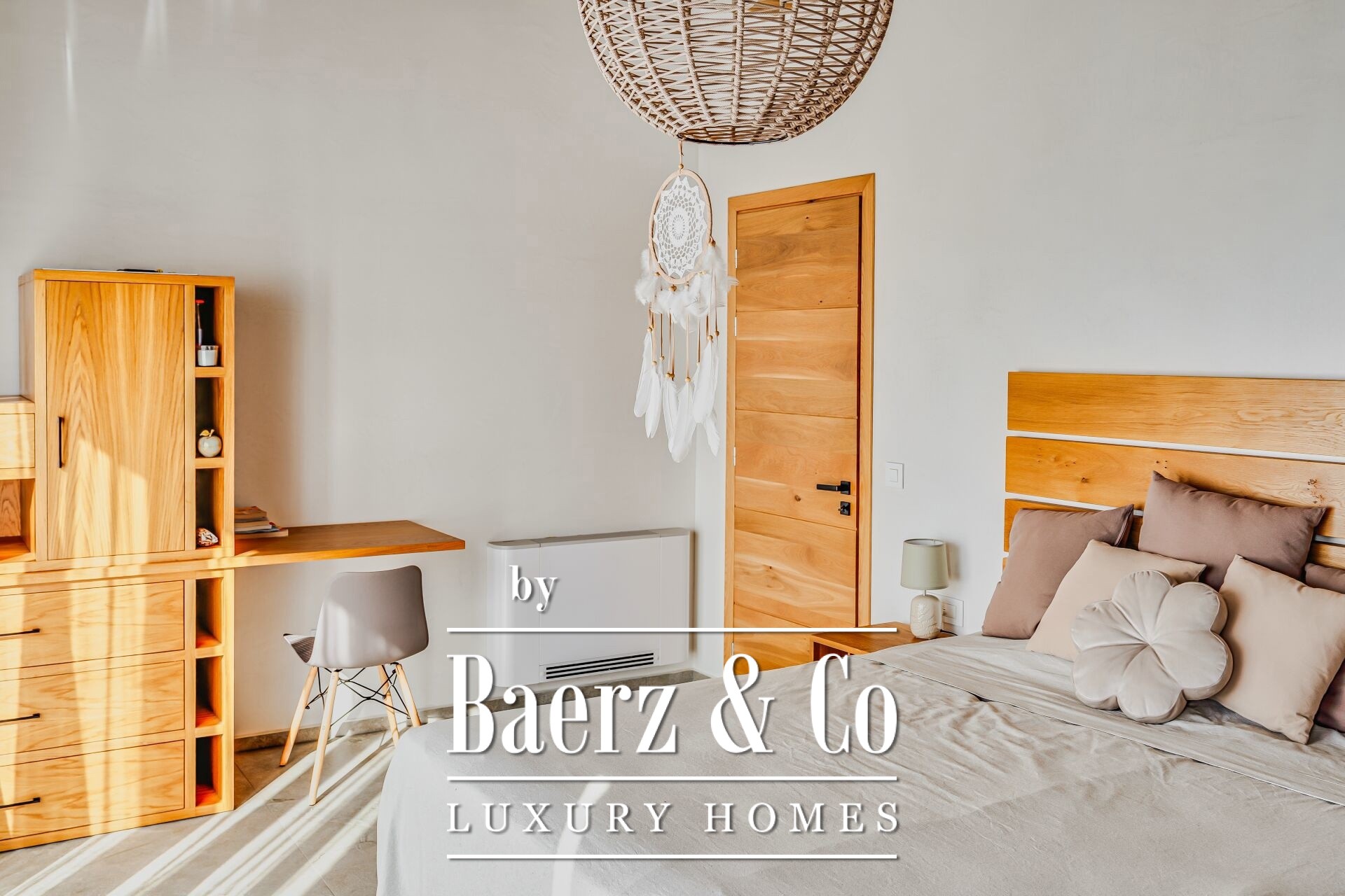 Every element speaks to discreet comfort: underfloor heating and cooling, fan coils, and double-glazed insulation enable year-round ease, while advanced security features foster confidence and privacy. Water autonomy is assured by tanks with 170 cubic meters’ capacity. Outdoors, the infinity pool of 75 m² includes a jet wave and heating system, framed by landscaped gardens, a private vineyard, and an herb garden that root the home in its Mediterranean context.