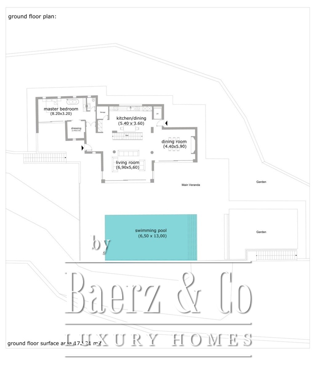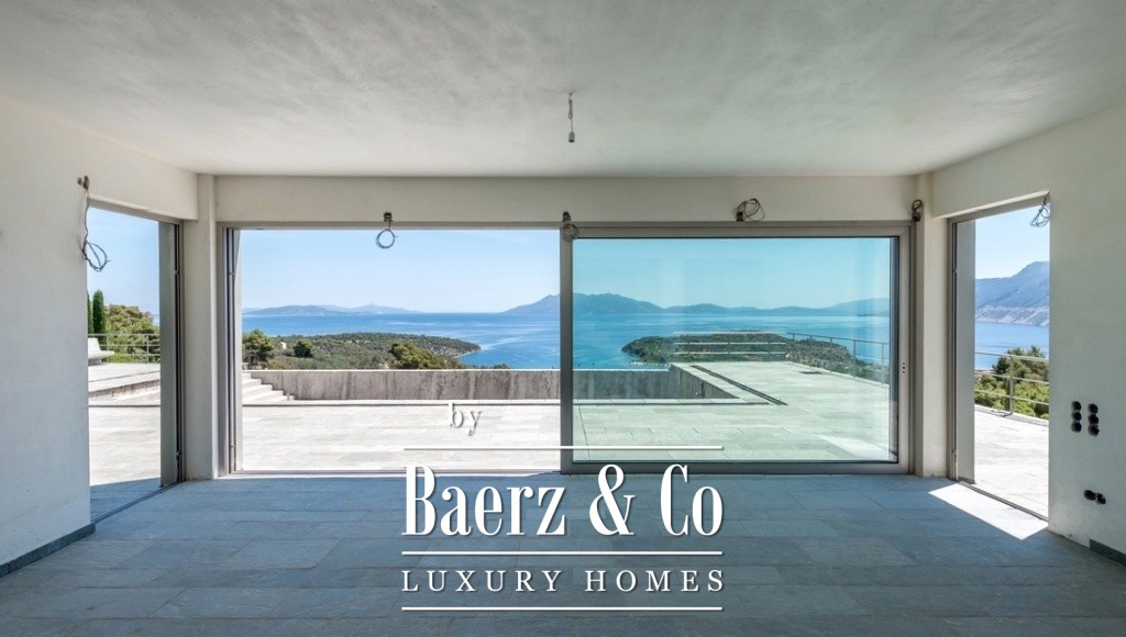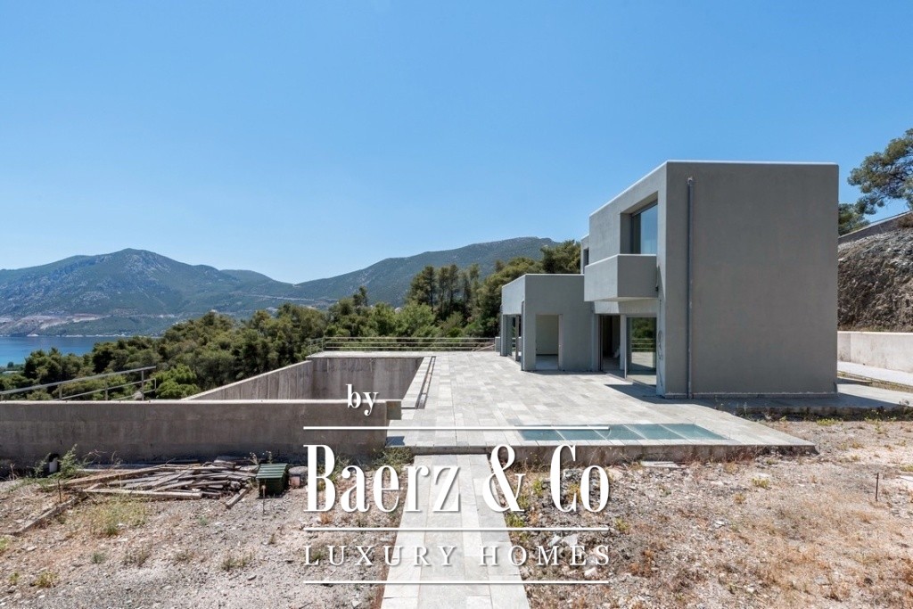 In the lush, pine-covered area of Epidaurus, on a privileged mountain slope, a luxurious villa of 568 sq m, of unique architecture, is offered for sale, offering panoramic and unobstructed views of the sea and the entire Ancient Epidaurus. The residence is built on a plot of 6,447 sq m, outside the plan, offering exclusive entrance, absolute privacy and a sense of harmony with the natural environment. The first level hosts an autonomous apartment with a kitchen, bathroom, one bedroom and three storage spaces. On the second level one finds an open-plan living room and kitchen area, a wc, a bedroom with a private dressing room and bathroom, while direct access to the outdoor pool and the impressive 230 sq m. terrace create the ideal atmosphere