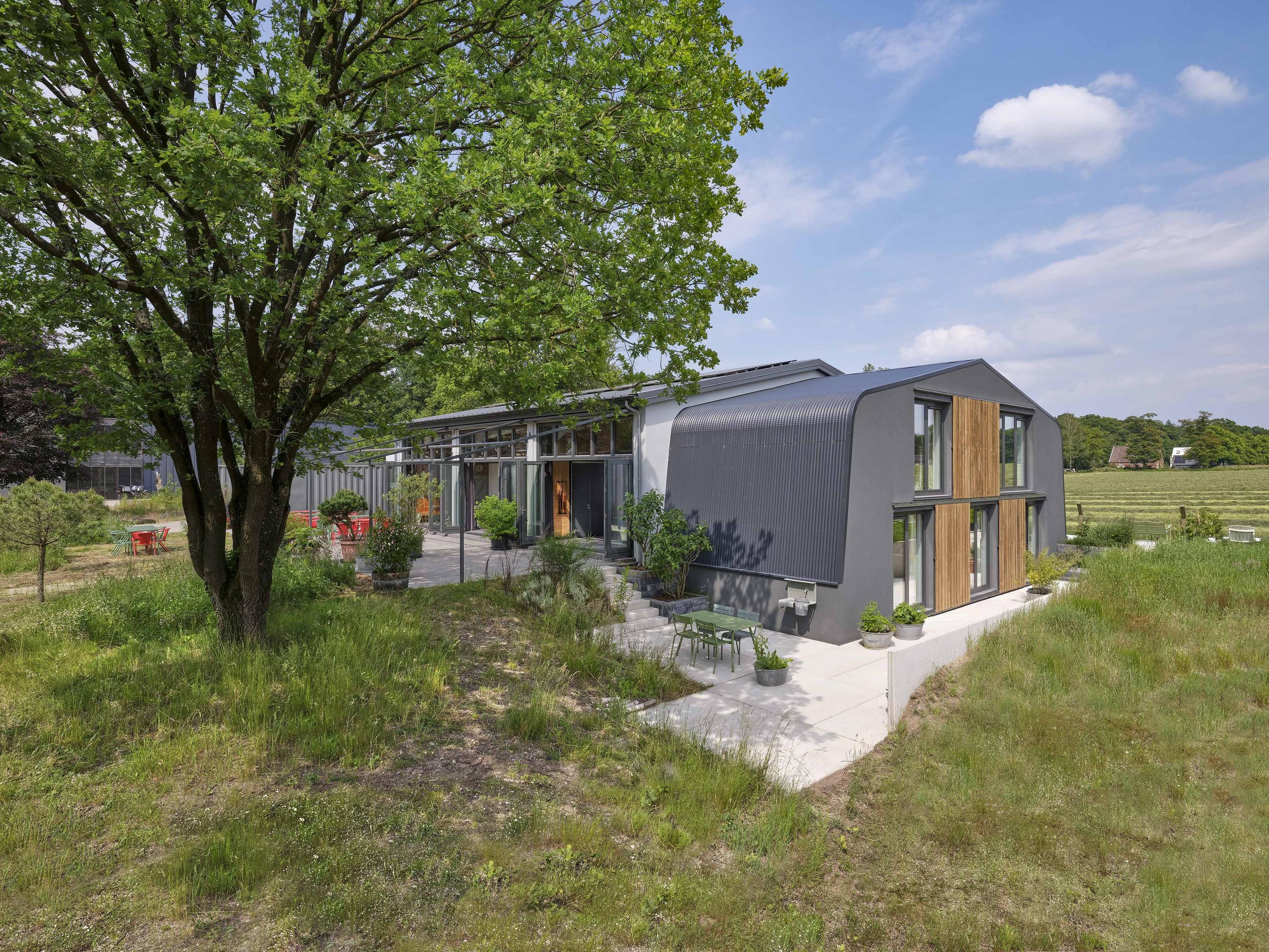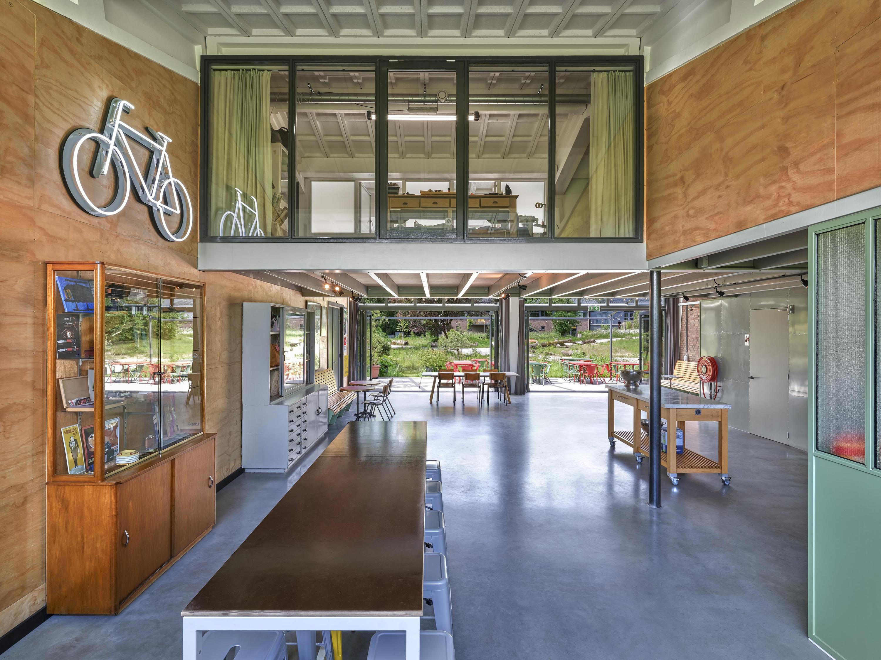 Het pand heeft een horecabestemming en deed ooit dienst als militaire hangar. In 2021 is het volledig gerenoveerd en luxe uitgebreid met een moderne bedrijfswoning. Vanuit de woning kijk je uit over het groen en ervaar je elke dag het gevoel van vrijheid.