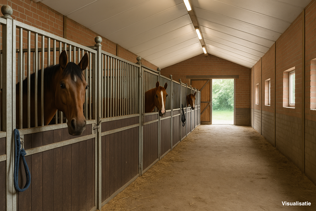 Achter op het perceel staat een grote schuur met op het dak maar liefst 64 pv-panelen die volledig uit het zicht van het woonhuis zijn onttrokken. Deze schuur kan na een aanpassing uitstekend fungeren als bijvoorbeeld een paardenstal om hobbymatig paarden aan huis te houden. Een gedeelte van de tuin kan ingericht worden als paardenweide.