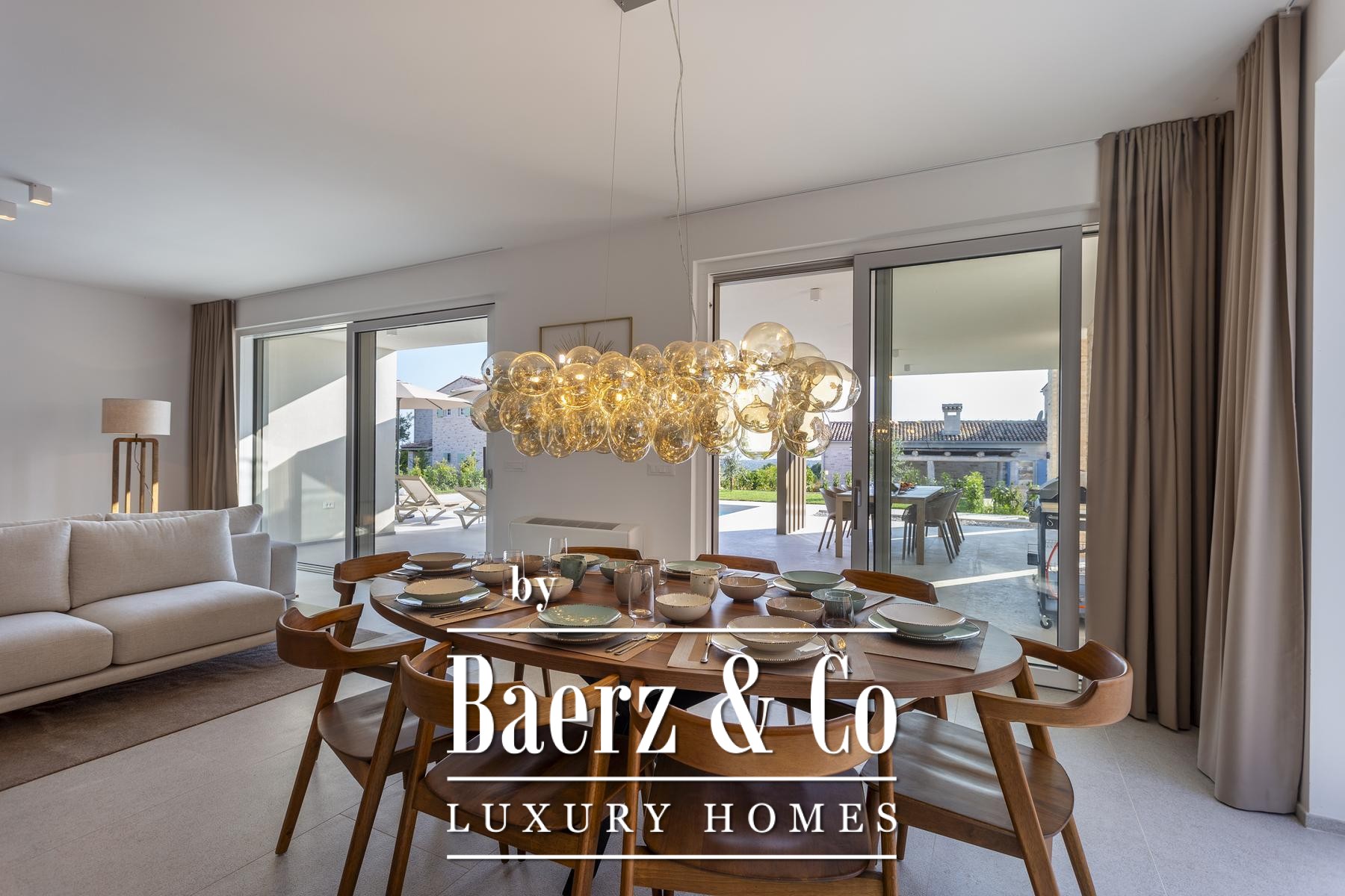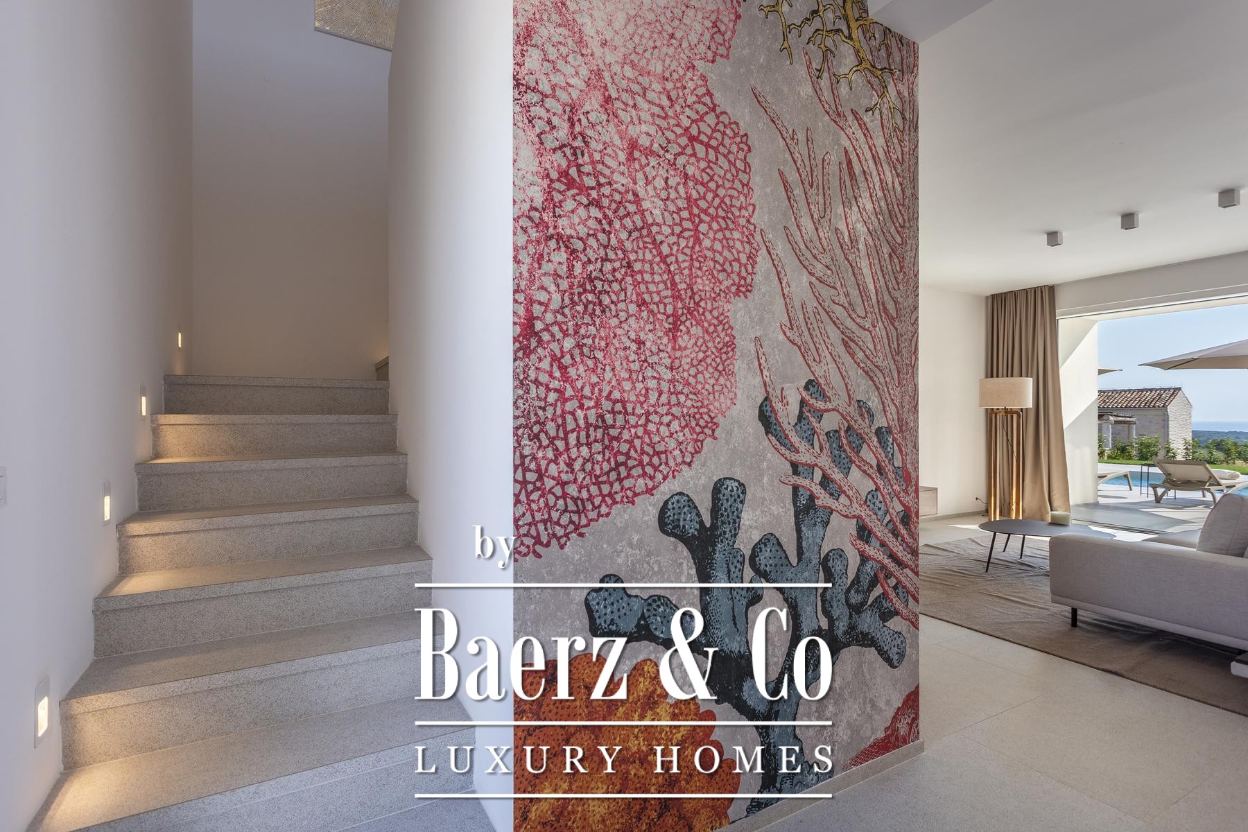 Villa Bale Croatia stands at the meeting point of timeless architecture and contemporary comfort. This designer villa occupies a 228 m² living area across two floors, positioned on a fenced 688 m² plot in the tranquil village of Čubani, between Bale and Rovinj. The entry reveals a considered lobby that divides private quarters from living spaces, lending an inviting sense of flow.