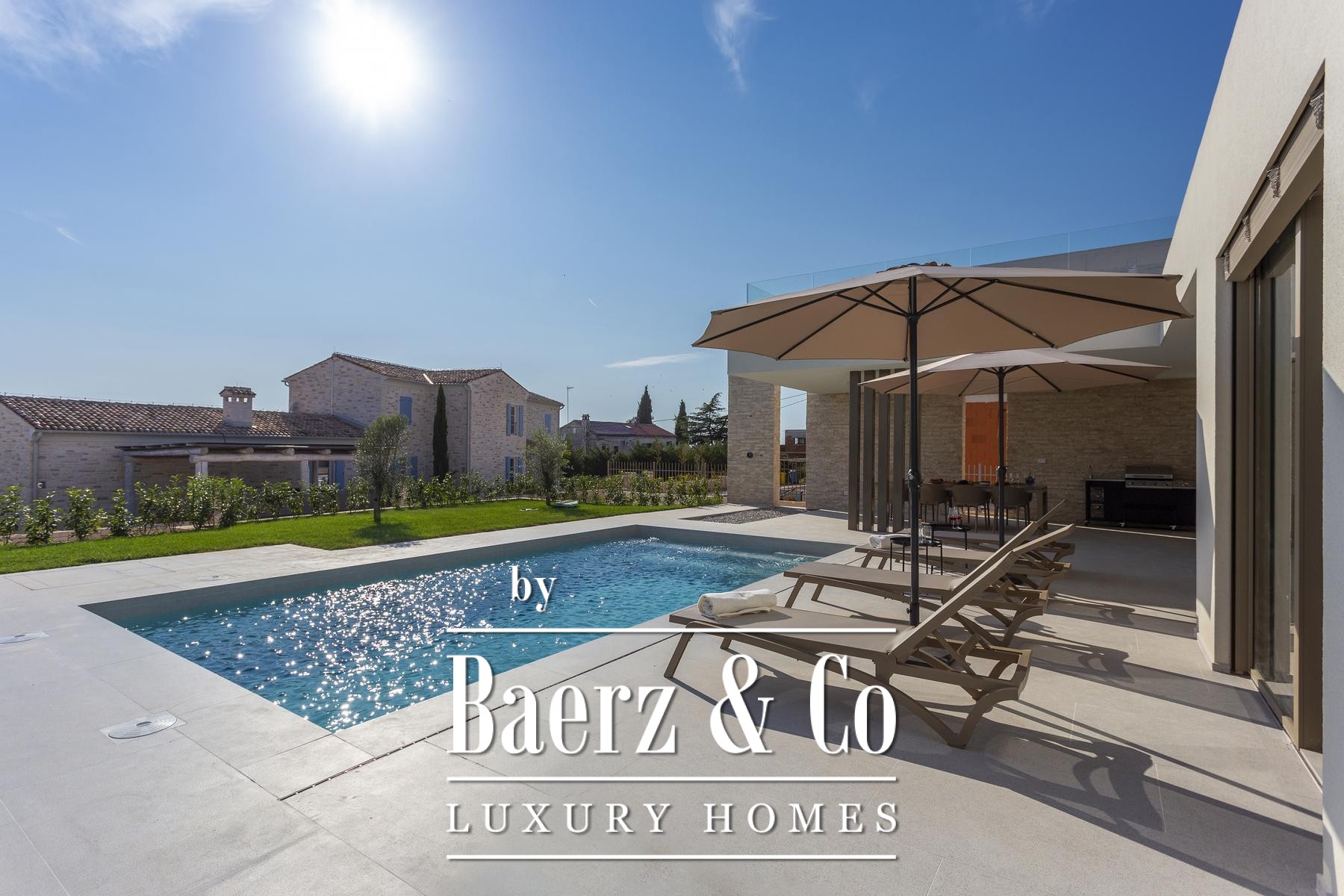 The villa’s distinct simplicity and modern lines are tempered by warmth; insulation and technical systems discreetly enhance year-round comfort. Automated irrigation and landscape lighting enrich the garden, ensuring the property’s exterior echoes its refined interior. Renowned for its peace and privacy, Villa Bale Croatia is moments from the amenities of Istria, offering a sanctuary designed for both serene family life and investment potential.