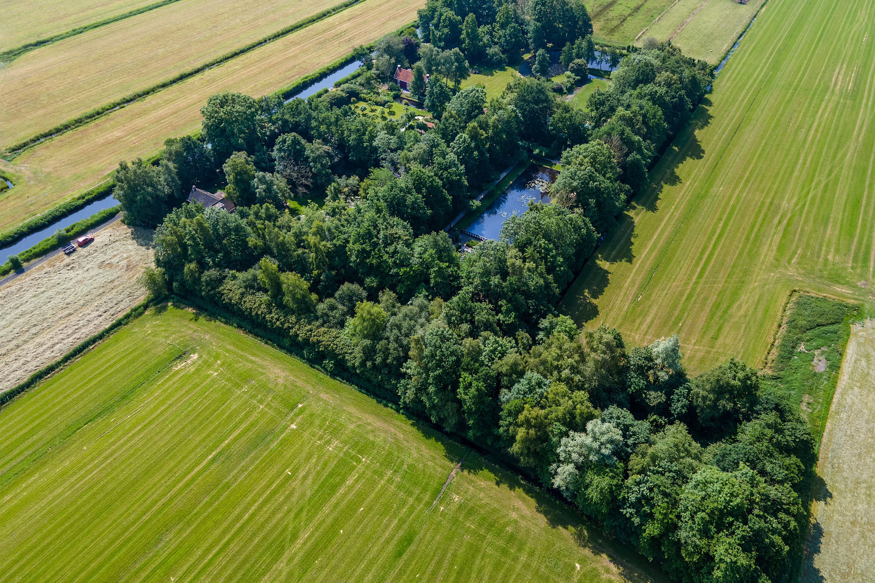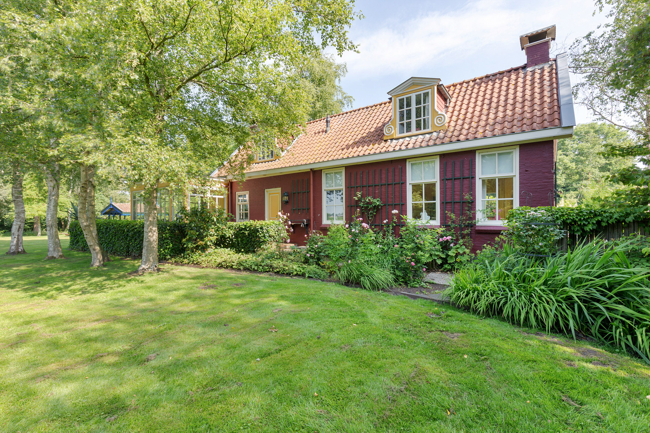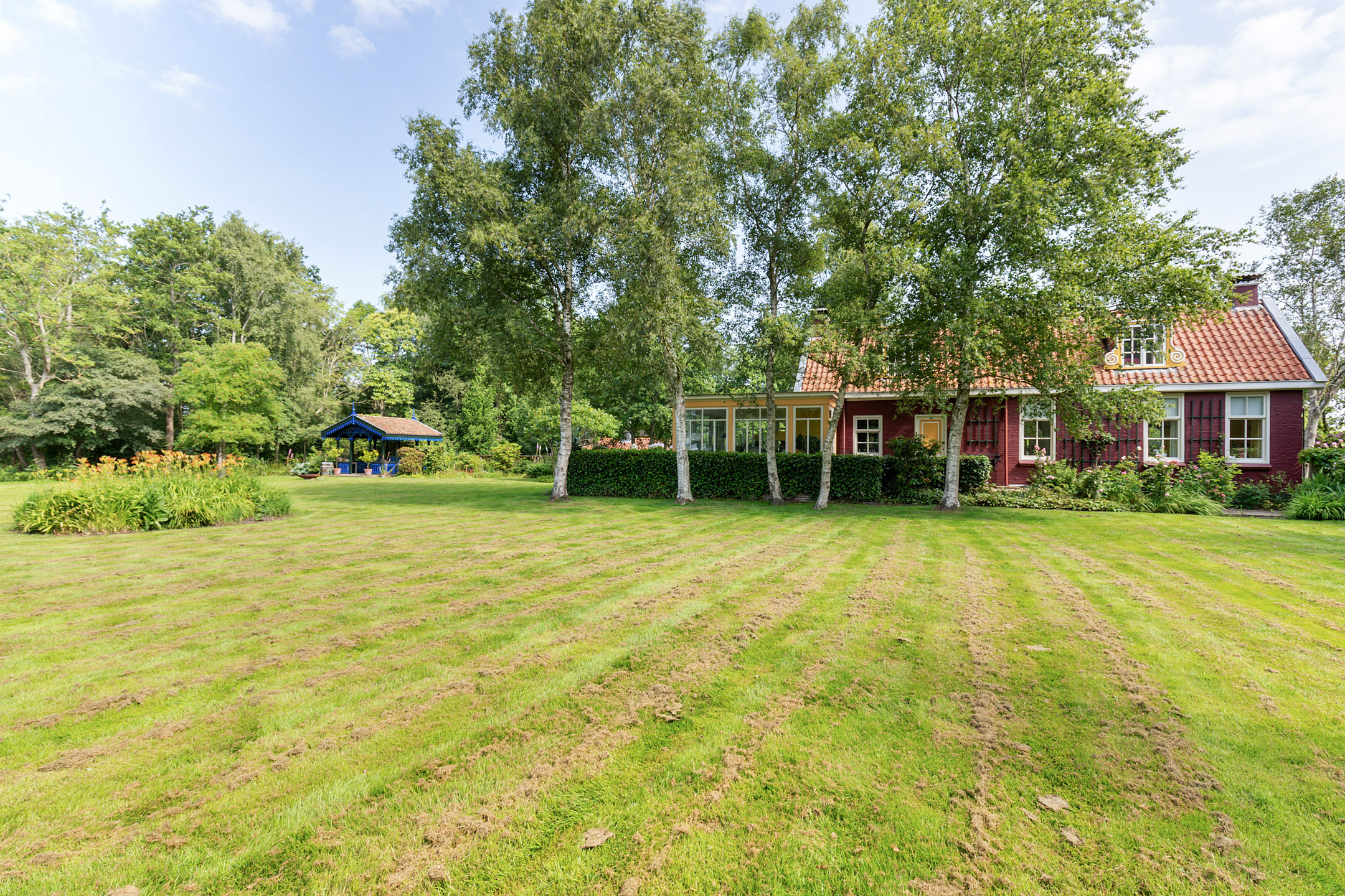 What began as a plot of approximately 1,600 m² has grown into a remarkable estate of approximately 3.18 hectares. The gardens were carefully designed to combine formal and natural elements, including two (swimming) ponds, multiple terraces, garden houses, a conservatory with vegetable garden, wooded areas, and expansive lawns.