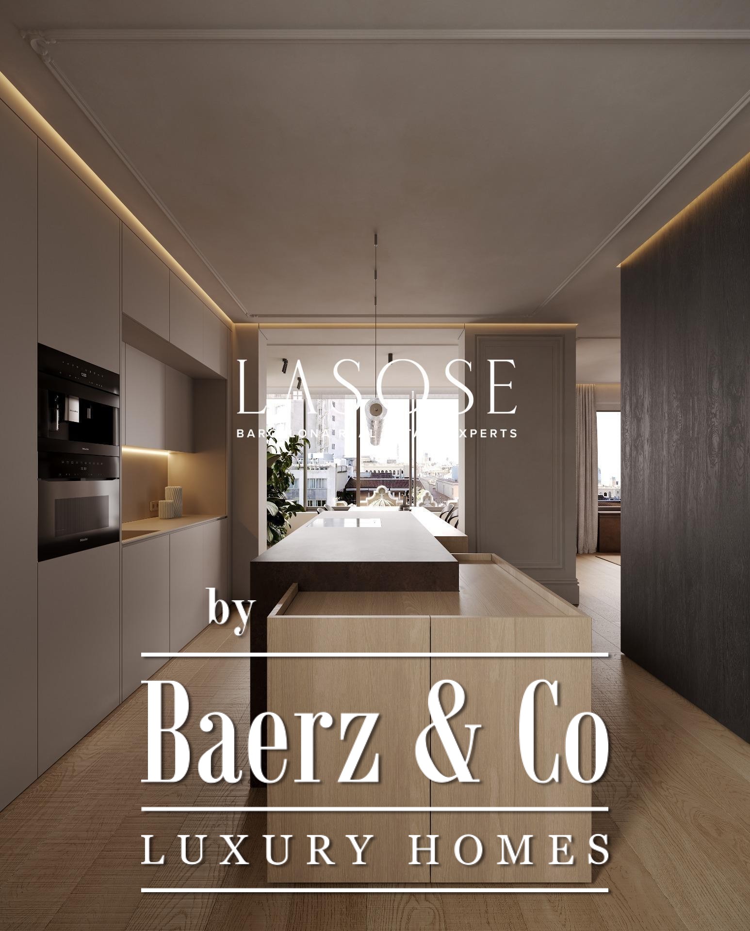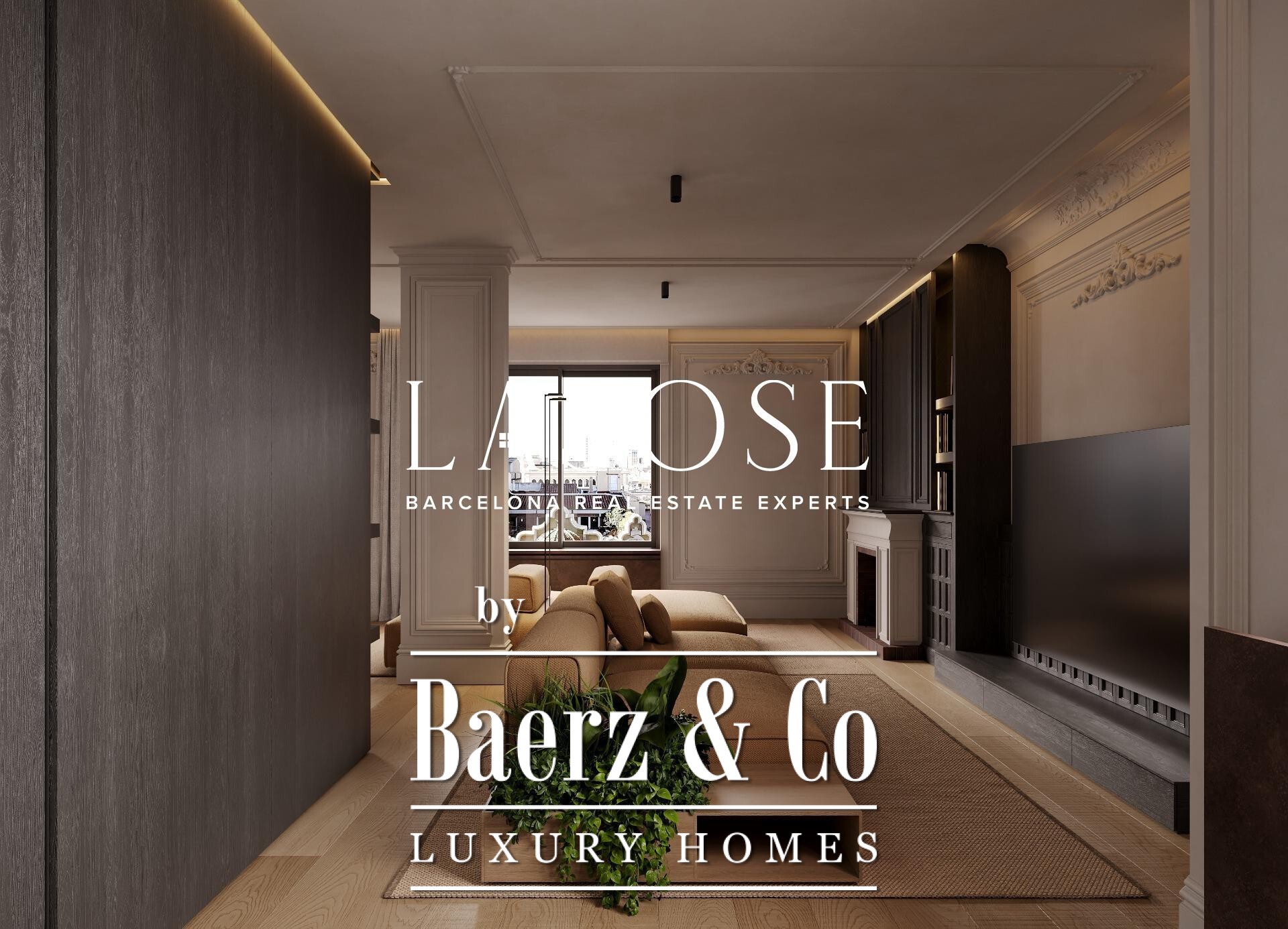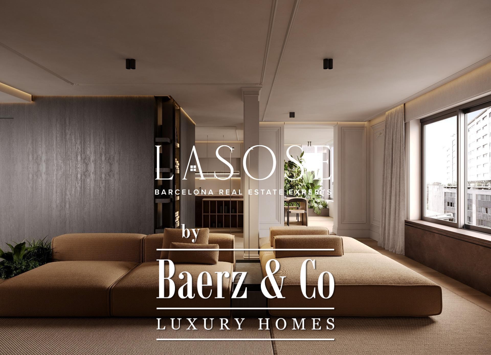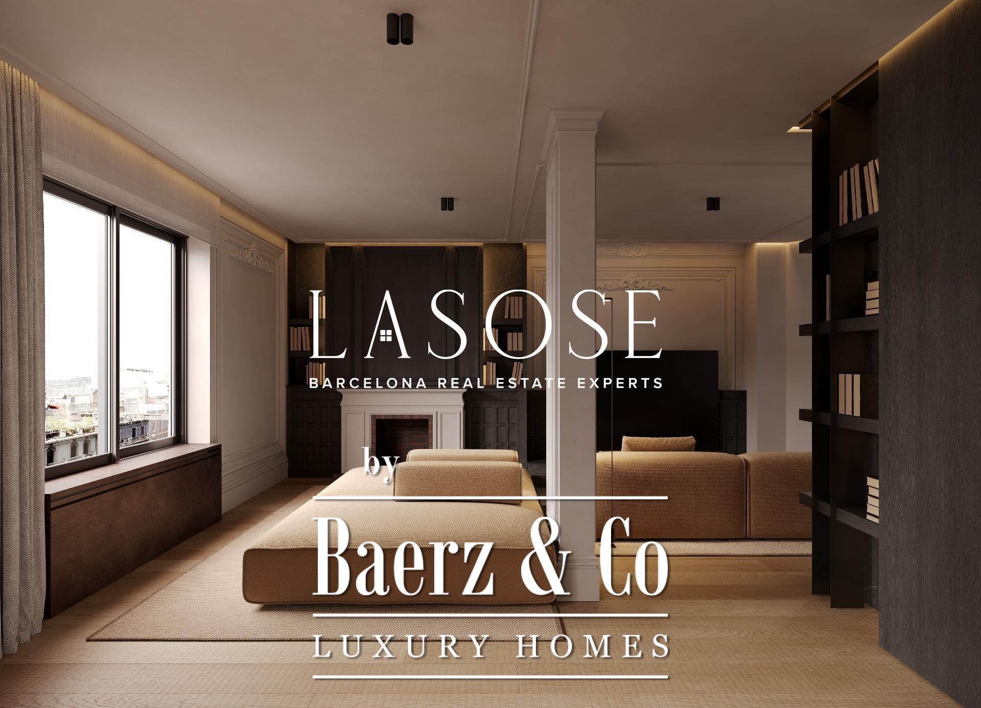 to the street, receives the afternoon sun, creating a warm and cozy atmosphere.. . The property has top of the range fittings: fitted closets, natural gas heating and air conditioning to ensure maximum comfort all year round. The finishes are of superior quality, with parquet floors, restored wooden carpentry and double glazed windows, achieving a perfect balance between classic and modern.. . The property is located on the 6th floor of a building with lift (actually on the 8th floor) and there is only one floor per floor, which guarantees total privacy. In addition, the building has a concierge during working hours.. . Currently, the apartment is being prepared for a complete renovation (the renderings accompanying the ad show the design project), but it is still possible to adjust the project to the buyer's needs.. . This property is located in one of the most exclusive areas of Barcelona, surrounded by luxury stores, gourmet restaurants and excellent connection to public transport, offering a high-end lifestyle for those looking for the best of the city center.. . Do not hesitate to contact us to arrange a visit and personally discover the magic of this apartment. We are available to answer all your questions and assist you every step of the way. . . At LASOSE, we don't just sell properties; we offer exceptional living experiences and look forward to welcoming you soon to your new home!