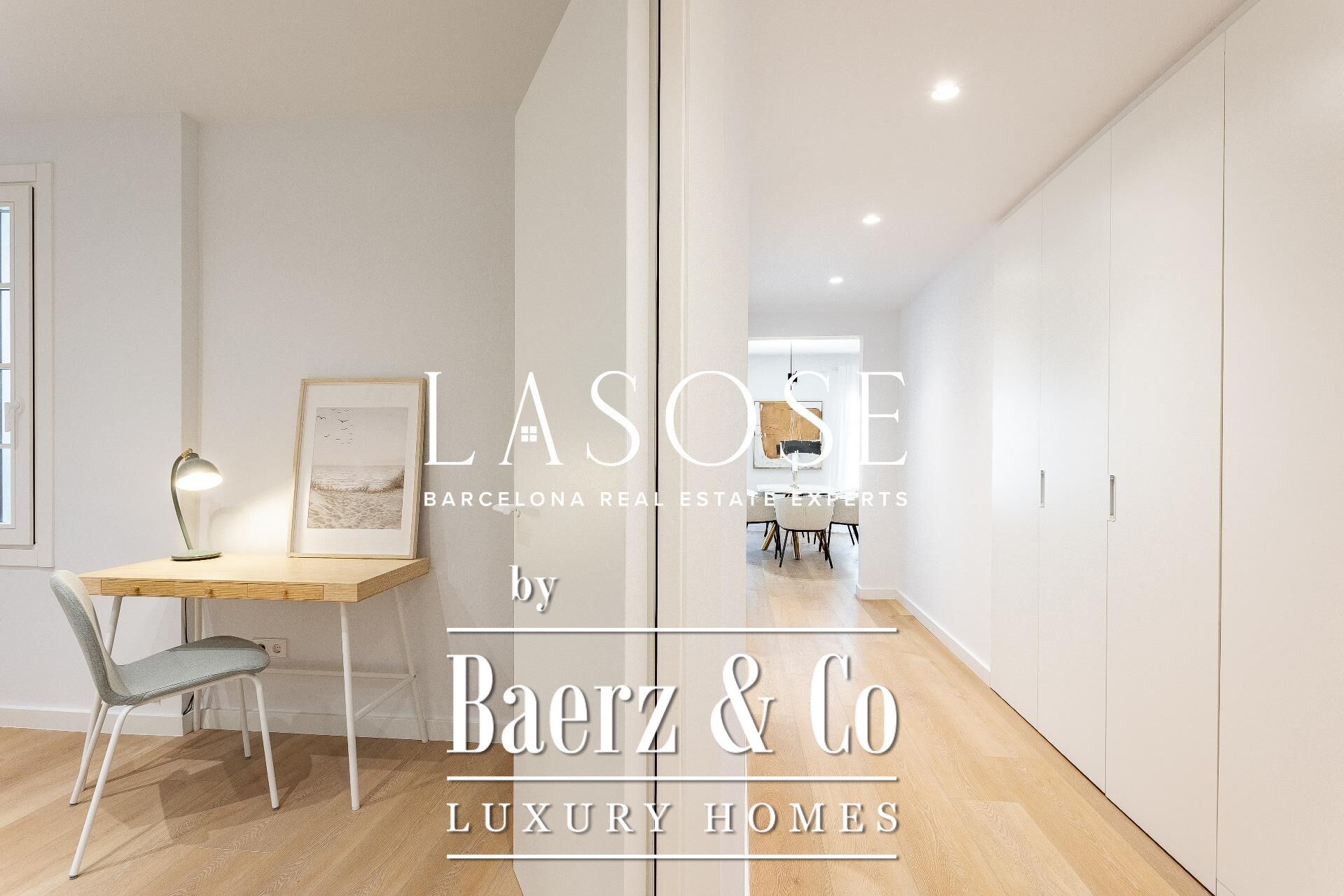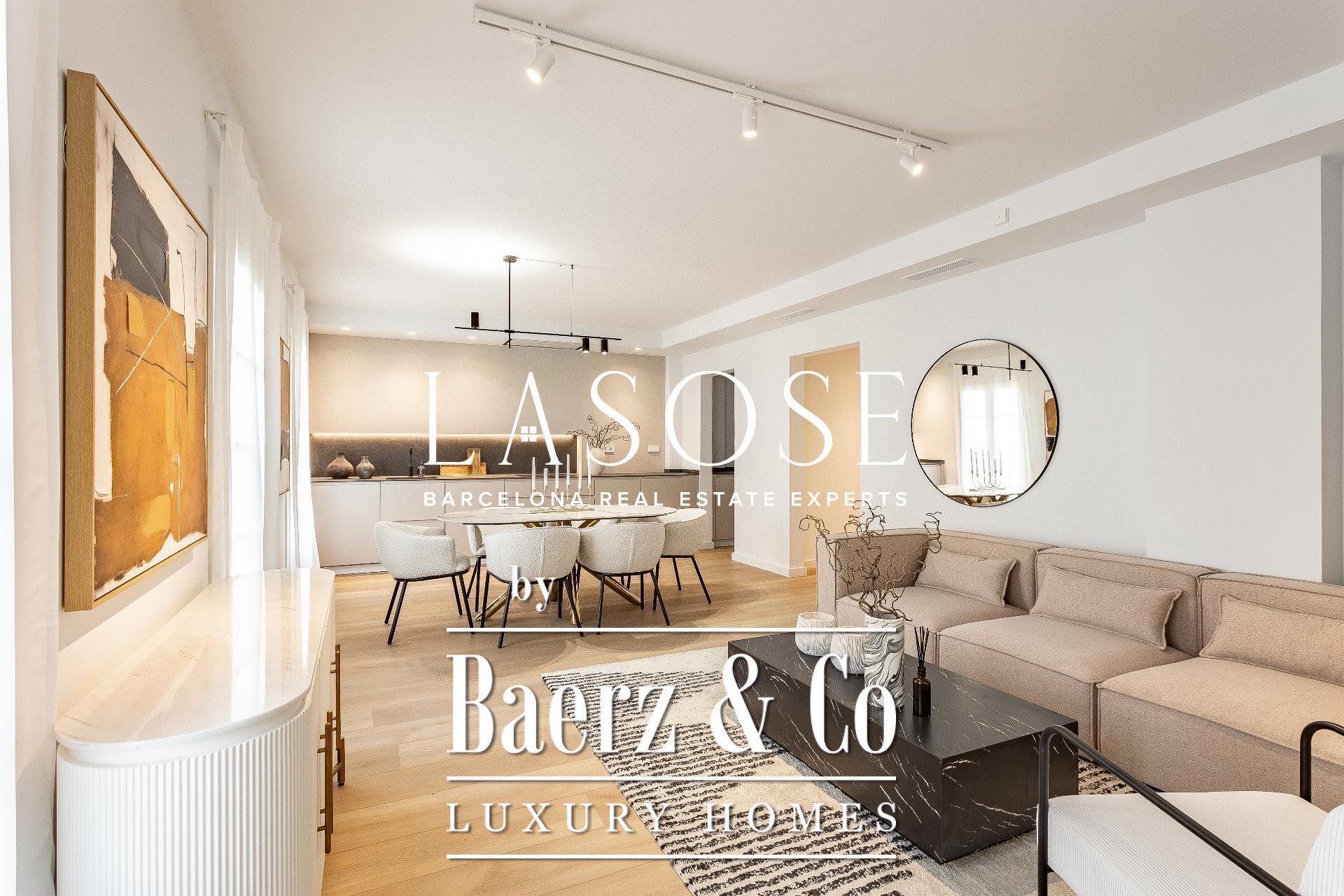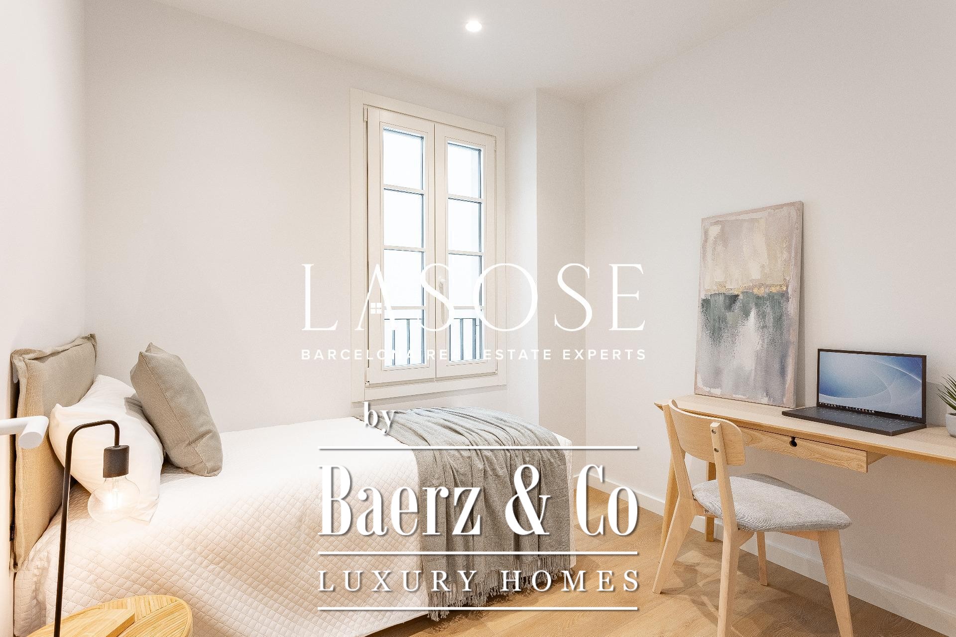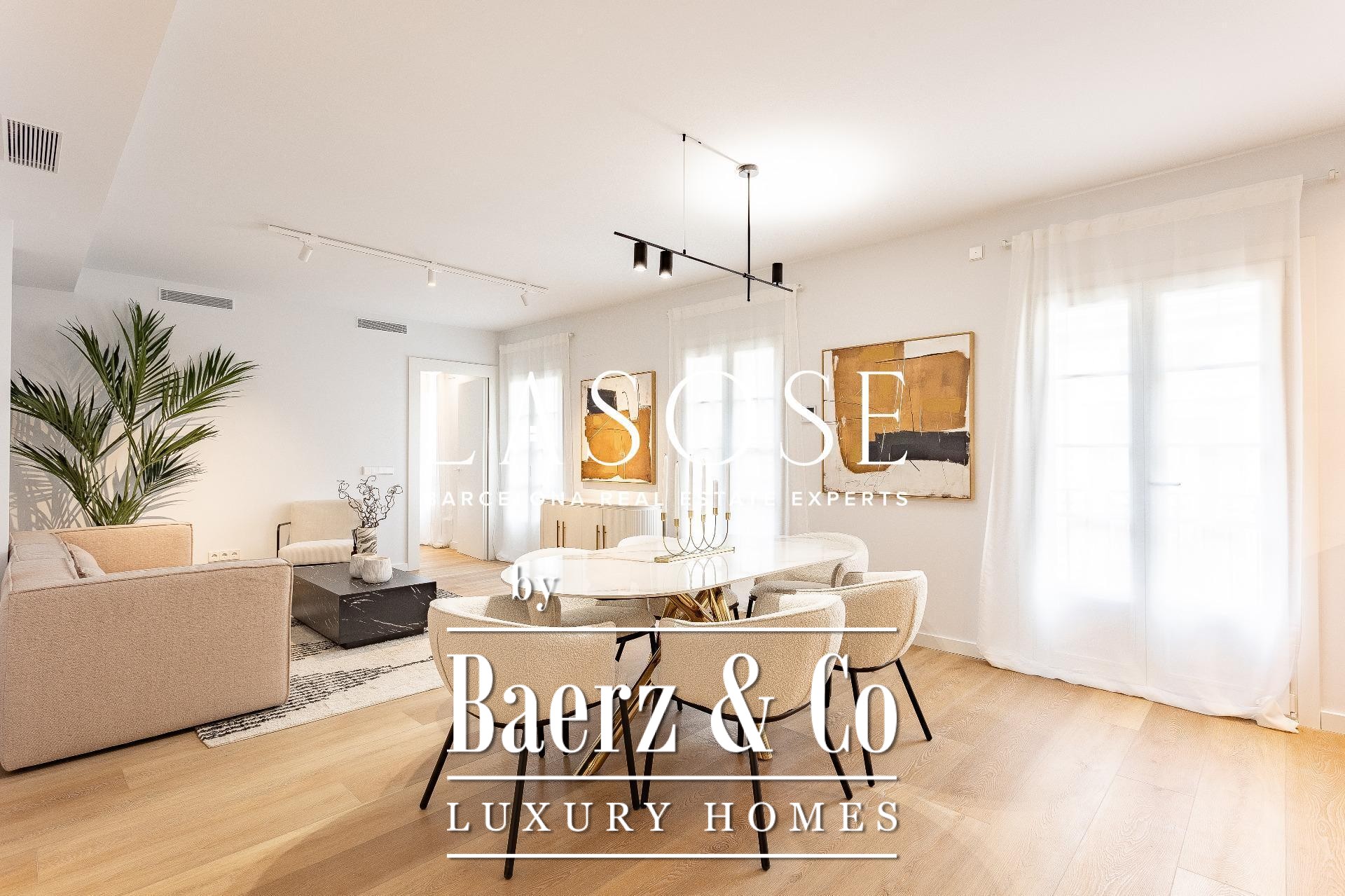Apartment Barcelona offers an invitation to urban refinement in the heart of the city, nestled on Tallers street, just moments from Plaza Catalunya. This fully refurbished residence encompasses 108 m² of thoughtfully balanced living space, where three large bedrooms and two bathrooms flow seamlessly with open, light-filled interiors. The design is defined by understated contemporary lines and a functional layout, complemented by the preservation of original architectural features that echo the building’s heritage.