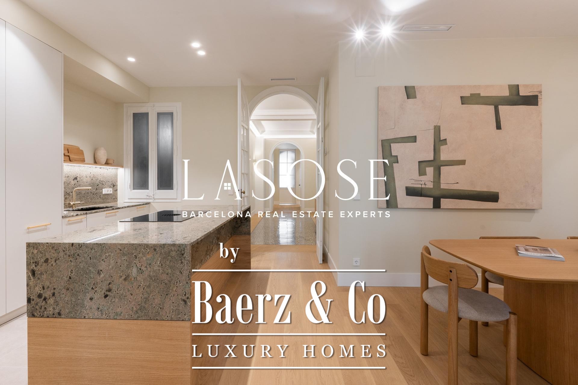 LASOSE is privileged to present this magnificent high-end residence, located in the heart of Barcelona's coveted Eixample district.. . Located in an elegant listed royal estate dating from 1900, this property stands out for its stately architecture, its historical value and its unmistakable character. It is a unique apartment, where the charm of Barcelona's modernism merges with the most demanding comfort and contemporary design.. . Located on a bright 2nd floor with double orientation, the property enjoys abundant natural light throughout the day. Its careful distribution maximizes every corner, offering spacious, functional and stylish spaces.. . The property has three elegant double suites, all with full bathroom, and one of them equipped with an exclusive glazed gallery, perfect as a chill out corner or as a sophisticated workspace.. . The spacious living-dining room is harmoniously integrated with a designer kitchen with central island, equipped with top-of-the-line materials and appliances: polished marble countertop by Levantina, porcelain flooring, and high-end appliances by De Dietrich, Bora and Liebherr (including refrigerator, dishwasher and wine cooler).. . In addition, the dining room - bathed in natural light - can easily be transformed into a fourth bedroom according to the buyer's needs.. . This exclusive home offers luxury finishes such as natural wood floors, original hydraulic tiles and high ceilings decorated with moldings and rosettes, which