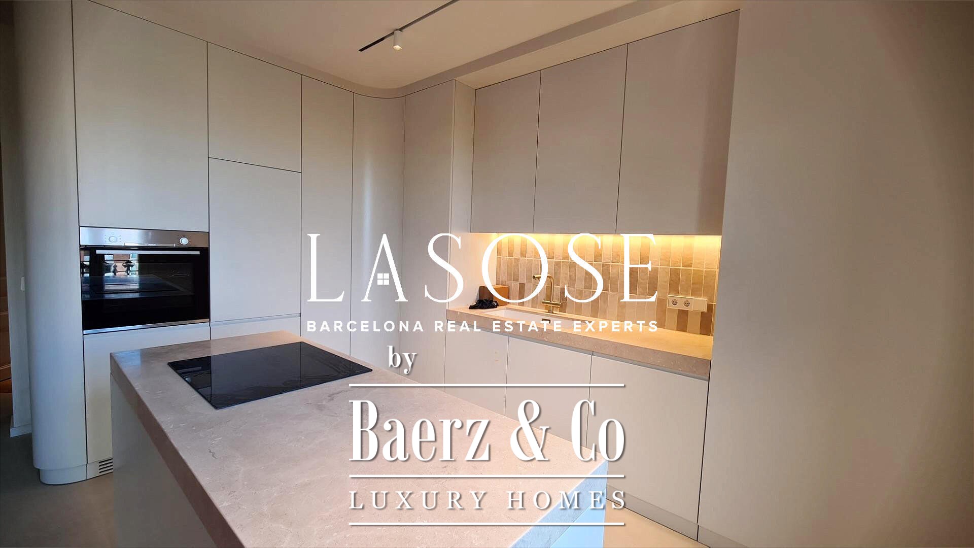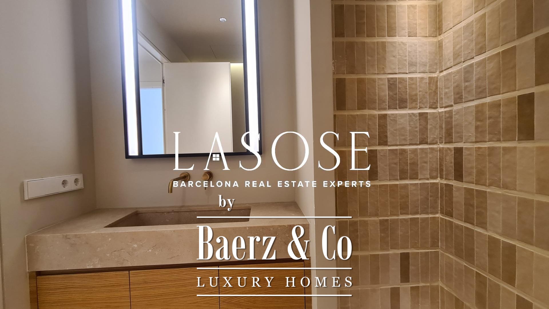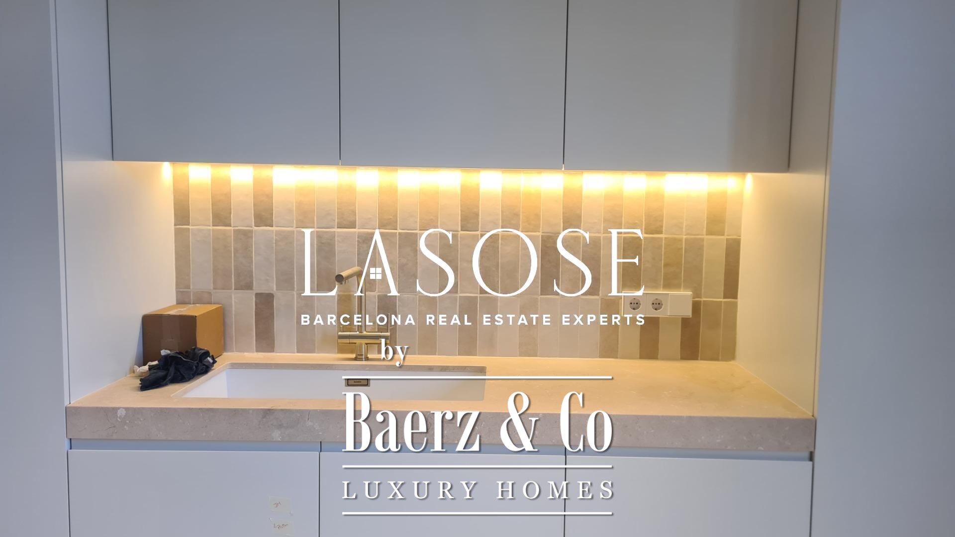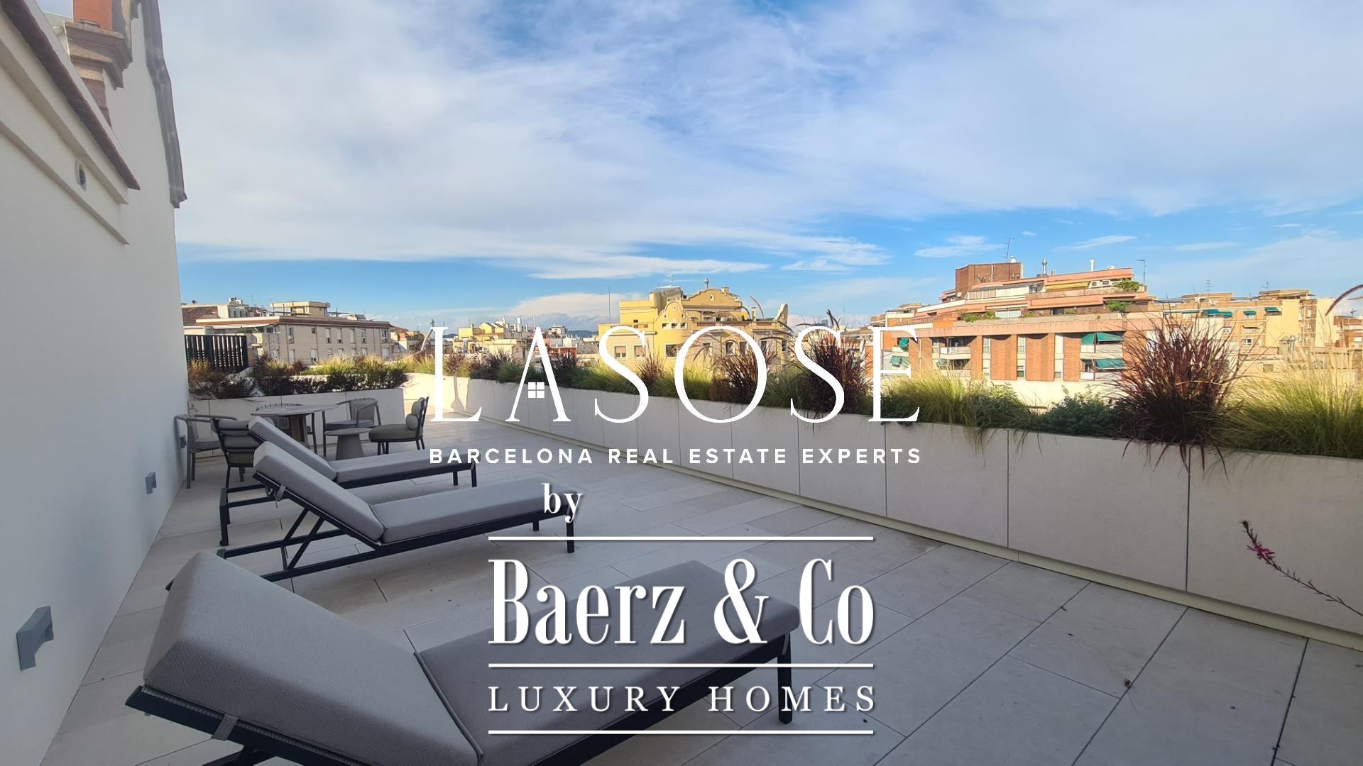 The orientation infuses every space with persistent daylight, while unobstructed urban views expand across the Barcelona skyline. A private balcony further connects the living area to the city’s sensory rhythms. Communal amenities elevate daily life, including a recently renewed rooftop terrace offering panoramic sights from the sea to Tibidabo, a fully equipped gymnasium, and the reassurance of a concierge service and lift.