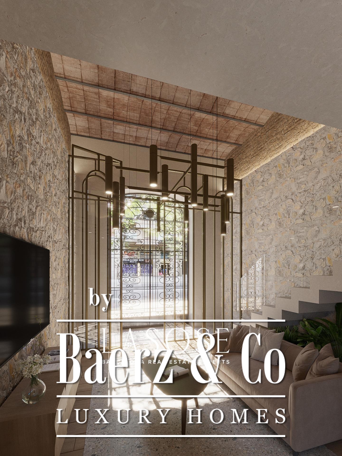 Apartment Barcelona with terrace is at the heart of Eixample Derecho, steps from the iconic Sagrada Familia. Spanning 175 m² across three thoughtfully designed levels, this residence offers a balance of architectural character and contemporary living. The open living area is illuminated by double-height ceilings, immediately creating a sense of calm and spatial clarity. Natural wood parquet underfoot invites warmth, while a designer kitchen with high-end appliances and clean lines elevates daily rituals.
