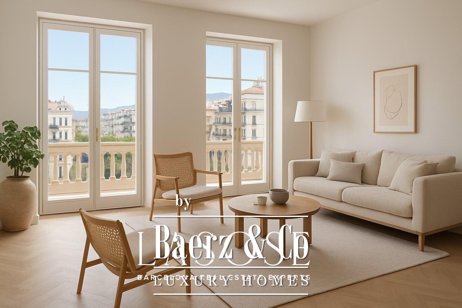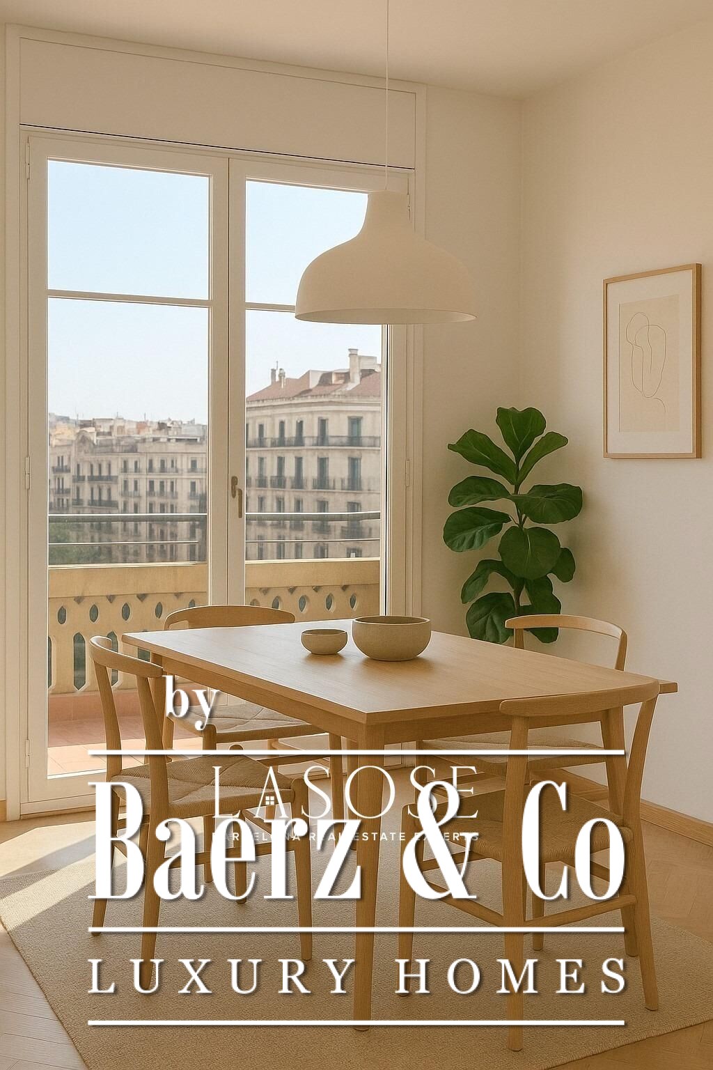 Penthouse Barcelona is offered as a rare canvas for transformation within the renowned Quadrat d'Or, just steps from Passeig de Gràcia and Gran Via. This property presents 140 m² of interior space alongside a private 80 m² terrace, capturing sweeping city views and Mediterranean light. Floor-to-ceiling windows connect the home’s generous living-dining room and open kitchen with the terrace, creating an interplay between interior volume and outdoor expanse.