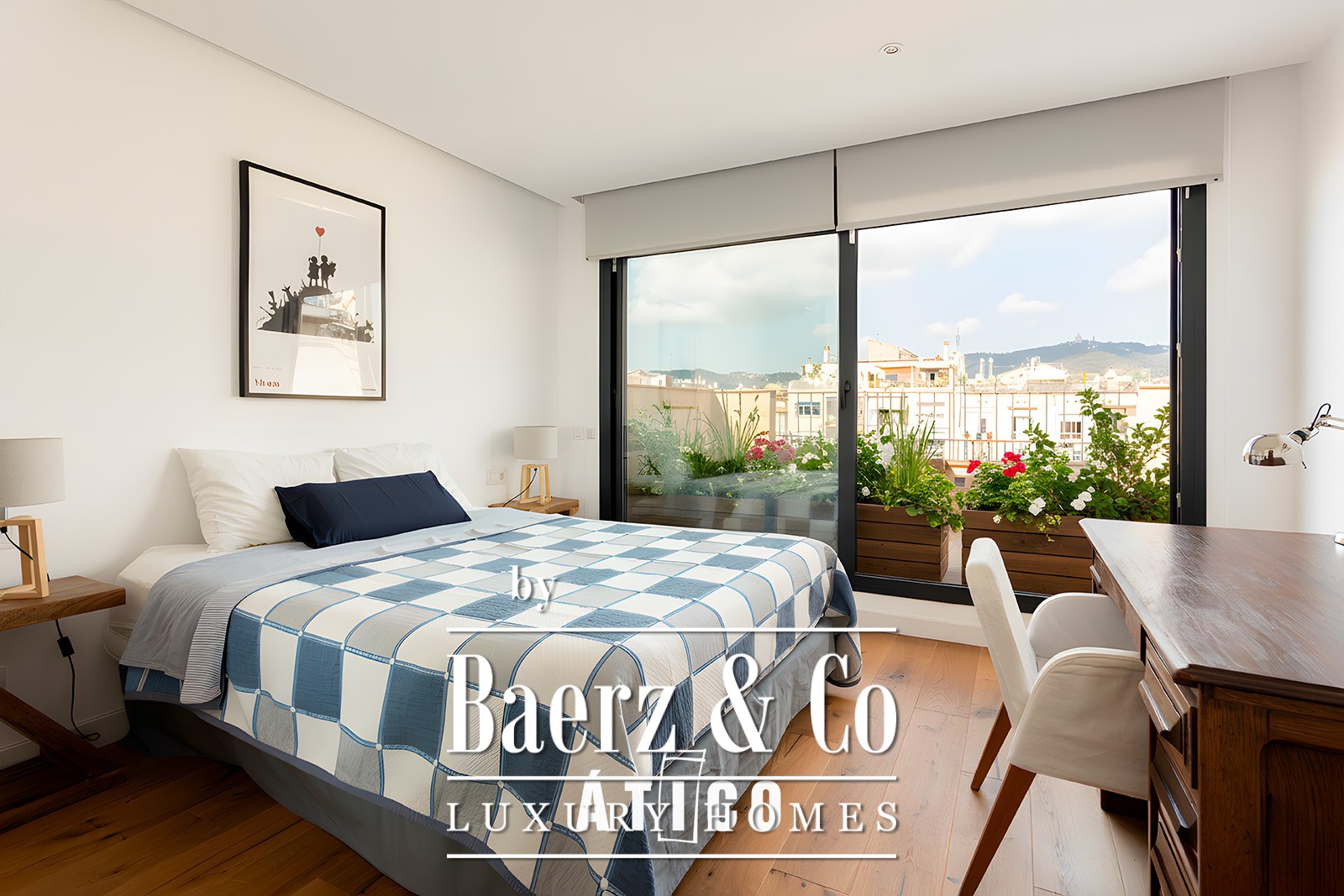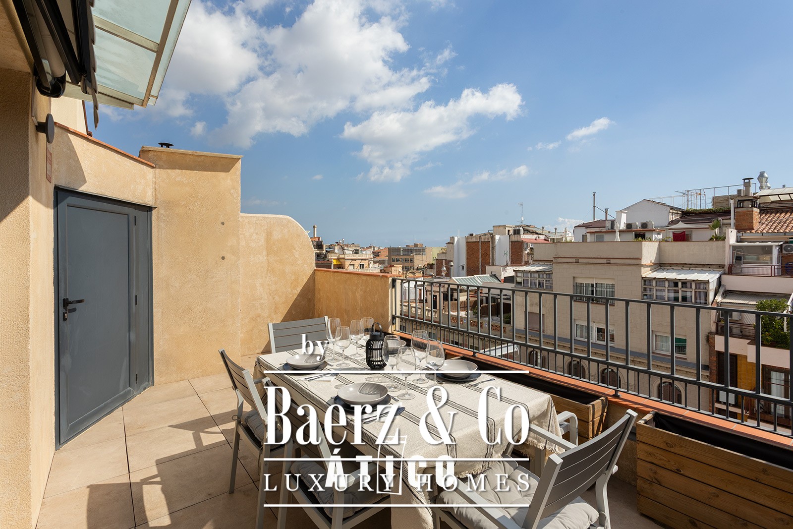 Attic Barcelona penthouse is found in the heart of Eixample Izquierdo, moments from Carrer Enric Granados and a short walk from Rambla Catalunya's elegant thoroughfare. This 138 m² penthouse offers a rare synthesis of modern comfort and Barcelona's urban rhythm, with a layout designed for daily enjoyment and privacy alike.