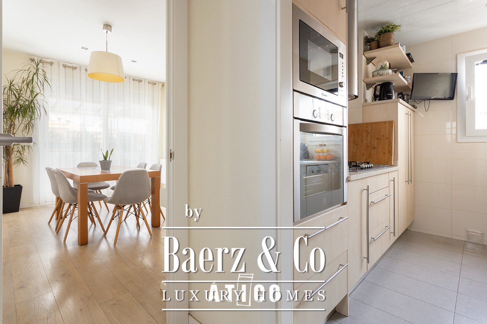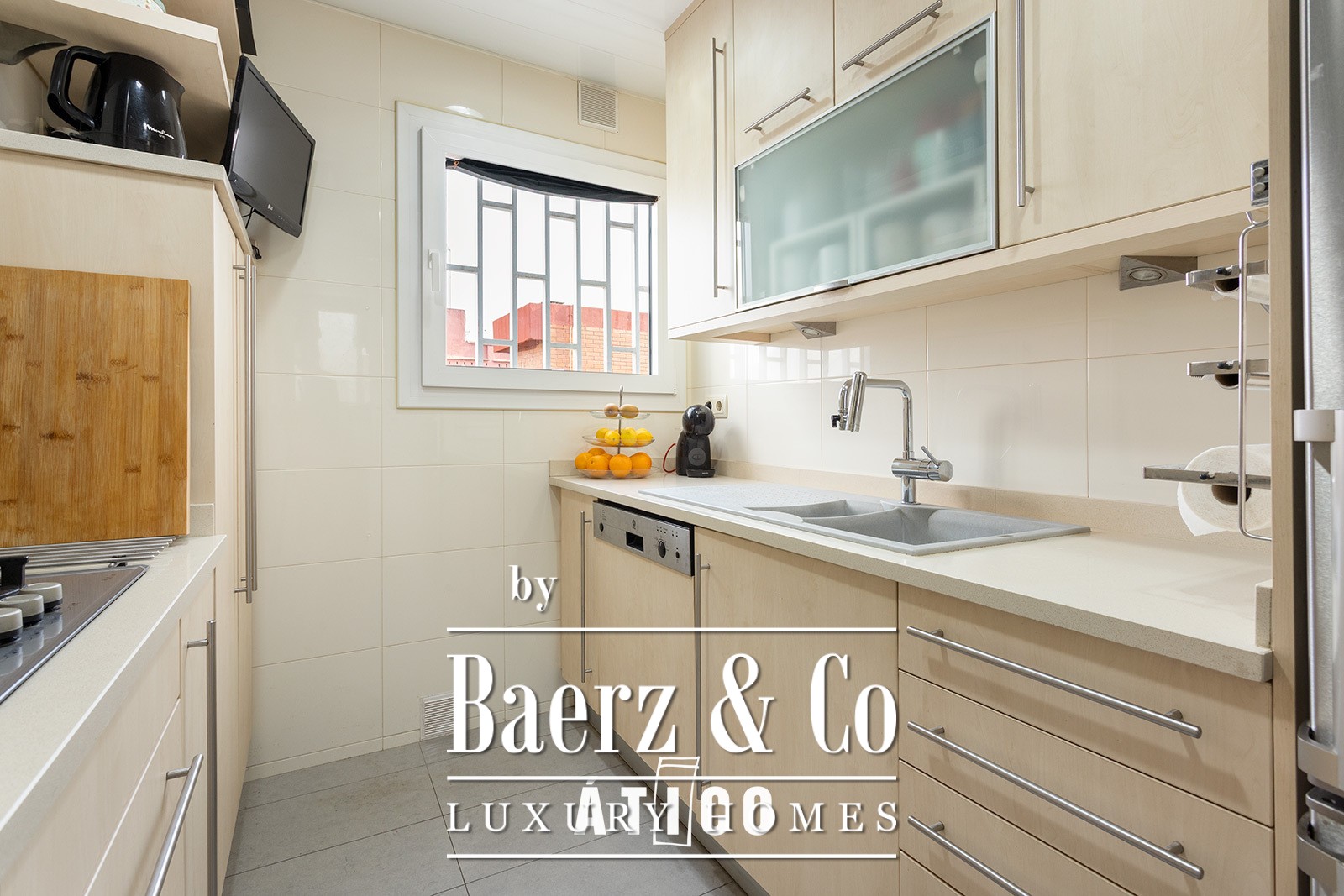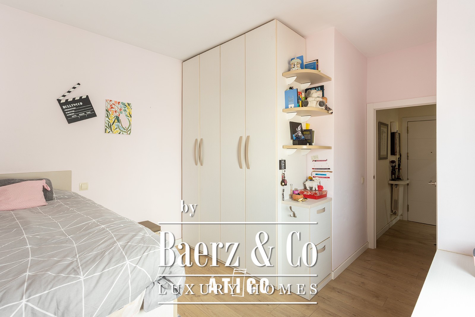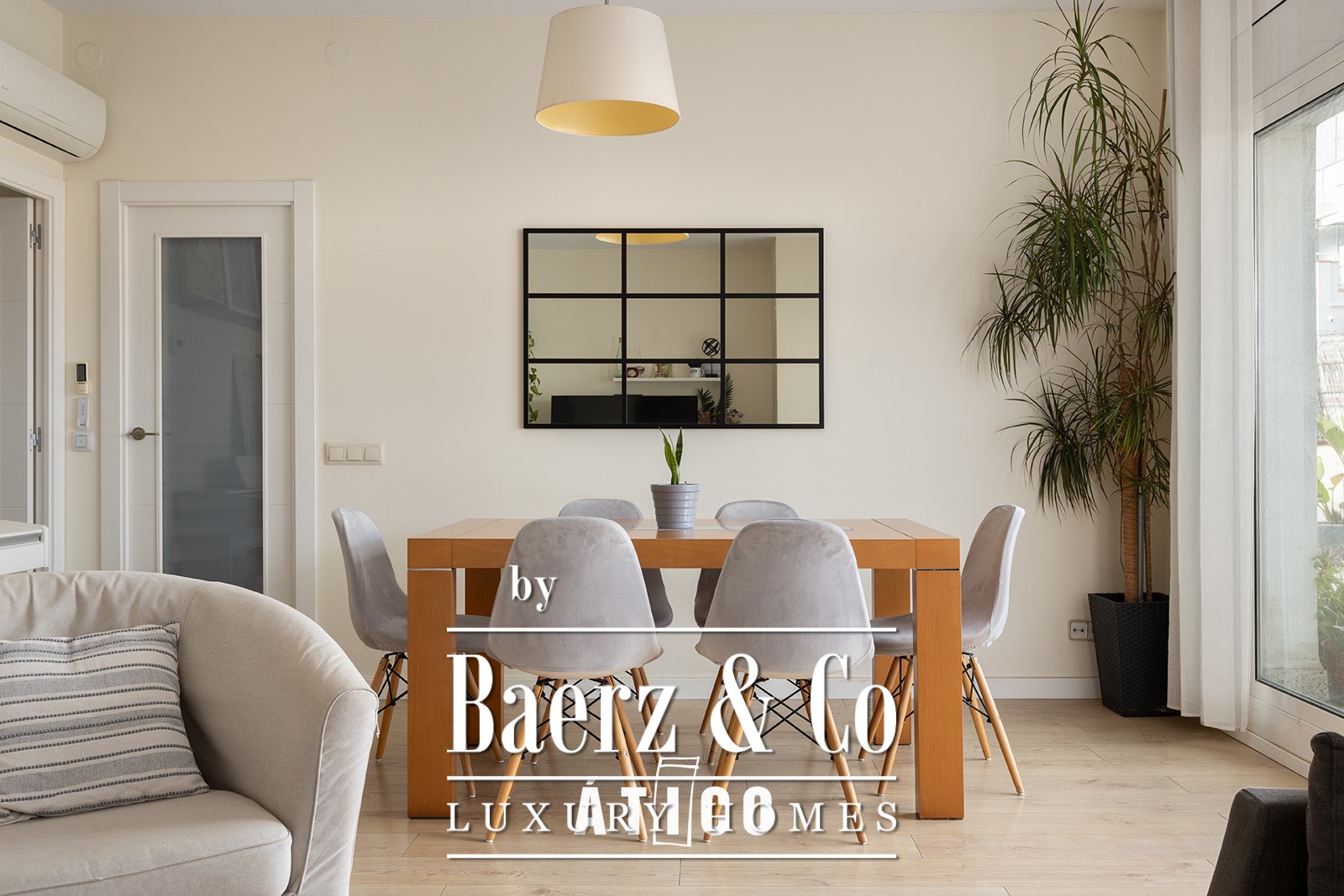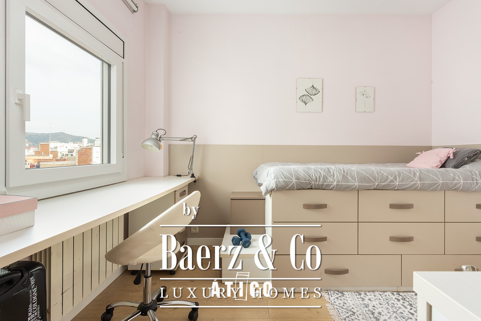 Materials are thoughtfully selected and spaces immaculately maintained, supported by air conditioning and heating for year-round comfort. On a quiet residential street in Guinardó, the penthouse stands shielded from city noise, yet remains deeply connected: swift access to public transport, thoroughfares, universities, cultural venues, and parks.