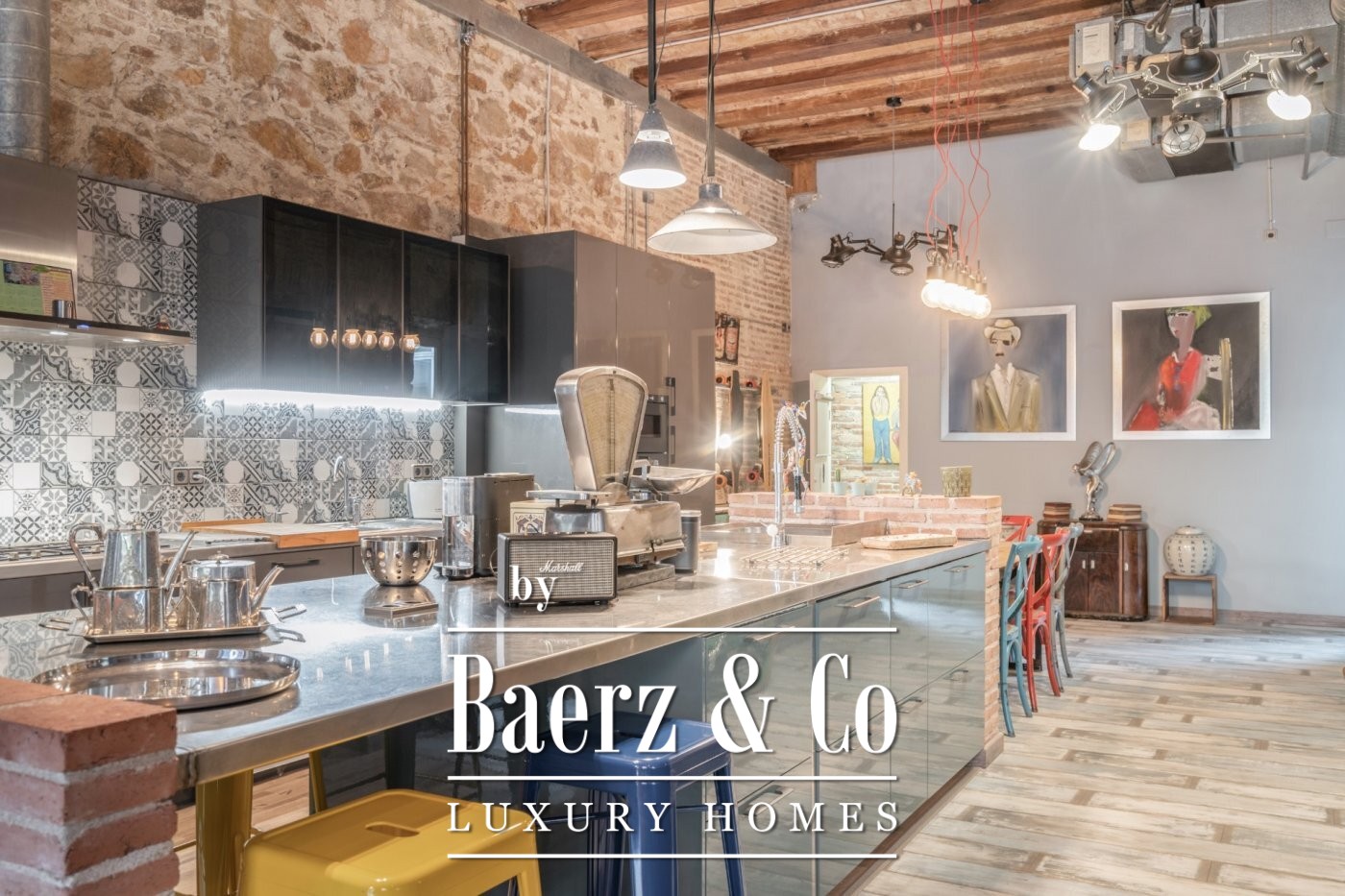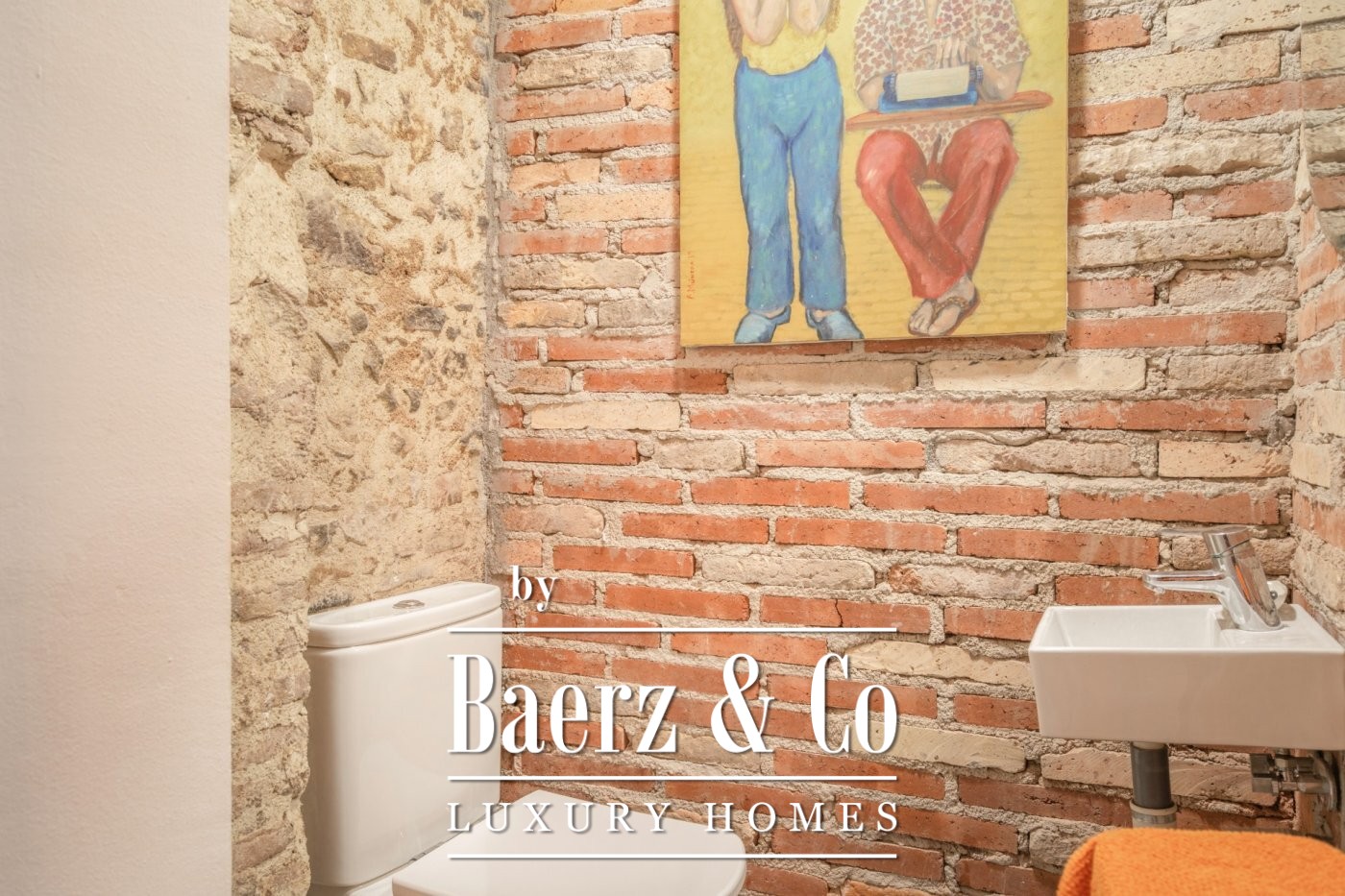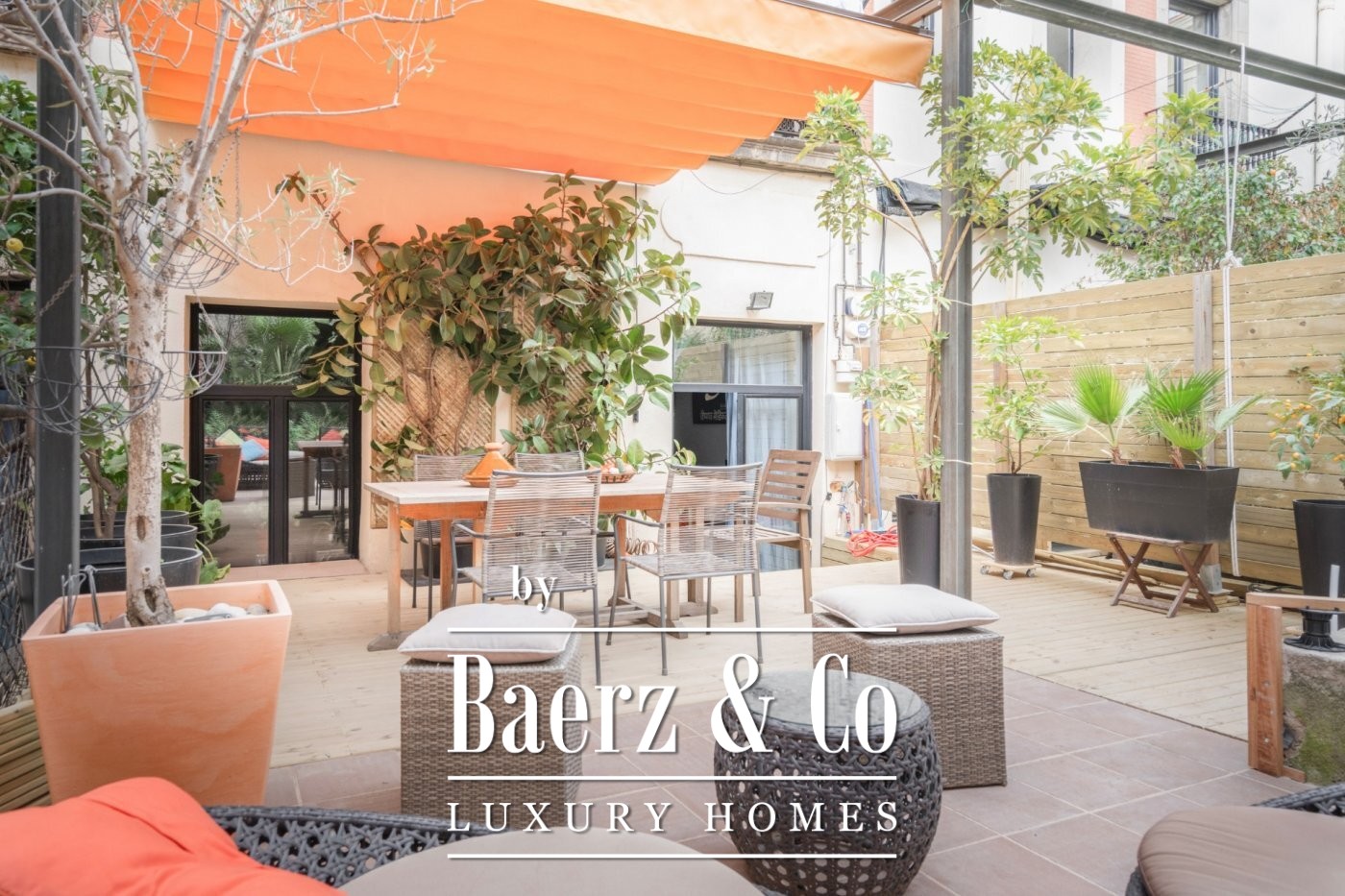 . . This catalan style apartment consists of 218 m2 plus 74 m2 of private terrace with pool. Upon entering, we find a corridor with huge windows that overlooks a large interior patio offering the space plenty of natural light. Ithis area connects the three double bedrooms; each one with its private bathroom, and another room that acts as a large multifunctional space that can perfectly be used as an office space.. . Following the corridor we find the day area, a huge and spacious space with very high ceilings up to 5 meters, composed of a large open kitchen, original brick walls and tiles, a toilet and a beautiful living room with a (wood) fireplace from which you can access the wonderful terrace with a pool shared with the neighbour next door. The terrace is private and is recently restored with new roofing to guarantee privacy. The whole house was completely renovated keeping original elements and decorated with great