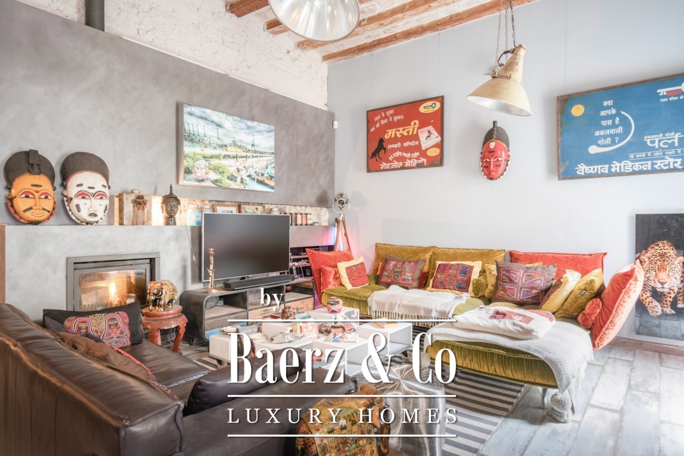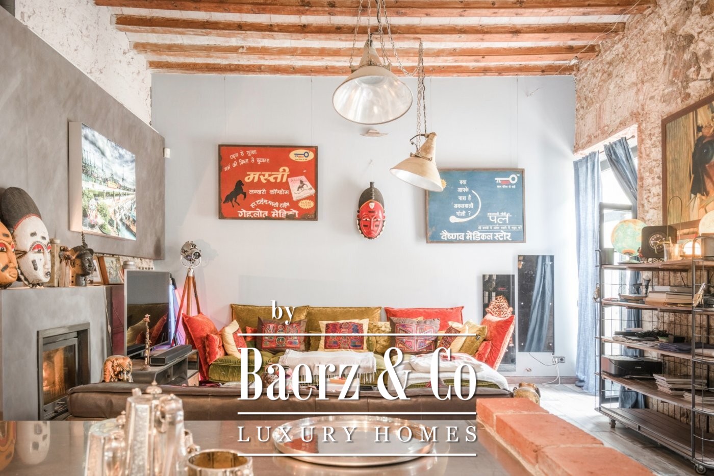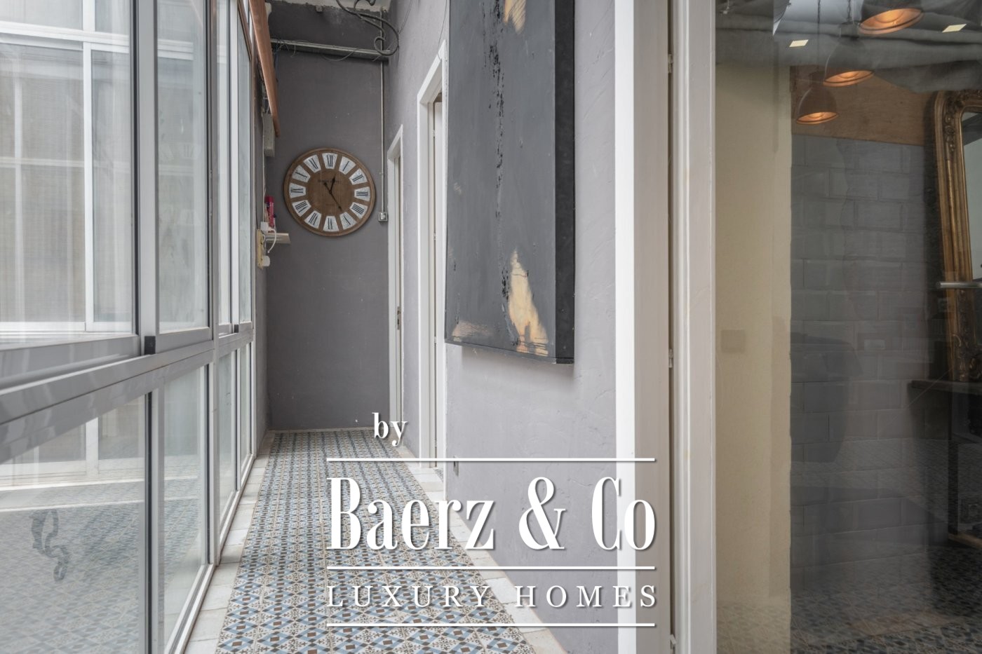 . . This catalan style apartment consists of 218 m2 plus 74 m2 of private terrace with pool. Upon entering, we find a corridor with huge windows that overlooks a large interior patio offering the space plenty of natural light. Ithis area connects the three double bedrooms; each one with its private bathroom, and another room that acts as a large multifunctional space that can perfectly be used as an office space.. . Following the corridor we find the day area, a huge and spacious space with very high ceilings up to 5 meters, composed of a large open kitchen, original brick walls and tiles, a toilet and a beautiful living room with a (wood) fireplace from which you can access the wonderful terrace with a pool shared with the neighbour next door. The terrace is private and is recently restored with new roofing to guarantee privacy. The whole house was completely renovated keeping original elements and decorated with great
