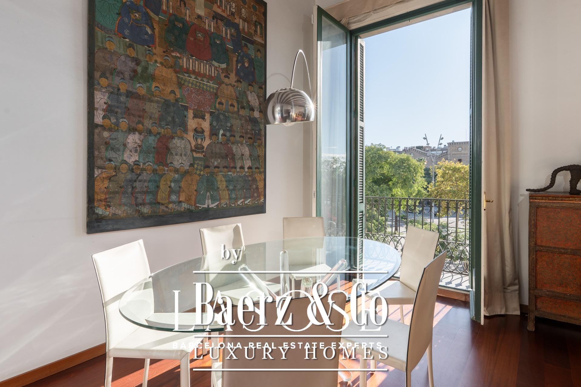 Apartment Barcelona sets its stage within a historic building overlooking the city’s marina. This apartment, spanning 122 m², occupies a distinguished address on Carrer Llauder and presents a rare interplay of heritage and contemporary living. Step inside to a volume defined by 3.8-meter ceilings, exposed wooden beams, and Catalan vaulted ceilings with hand-painted details. Wrought-iron balconies frame the open sea and the greenery of Las Ramblas de Mar, filling each room with Mediterranean light.