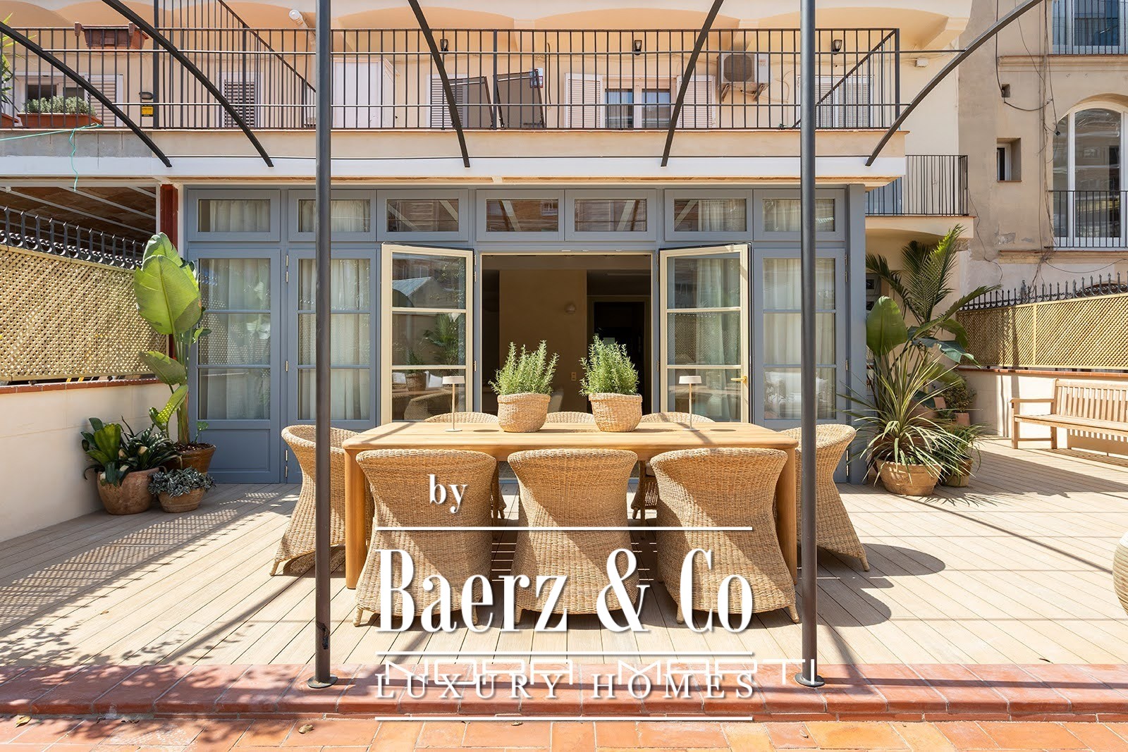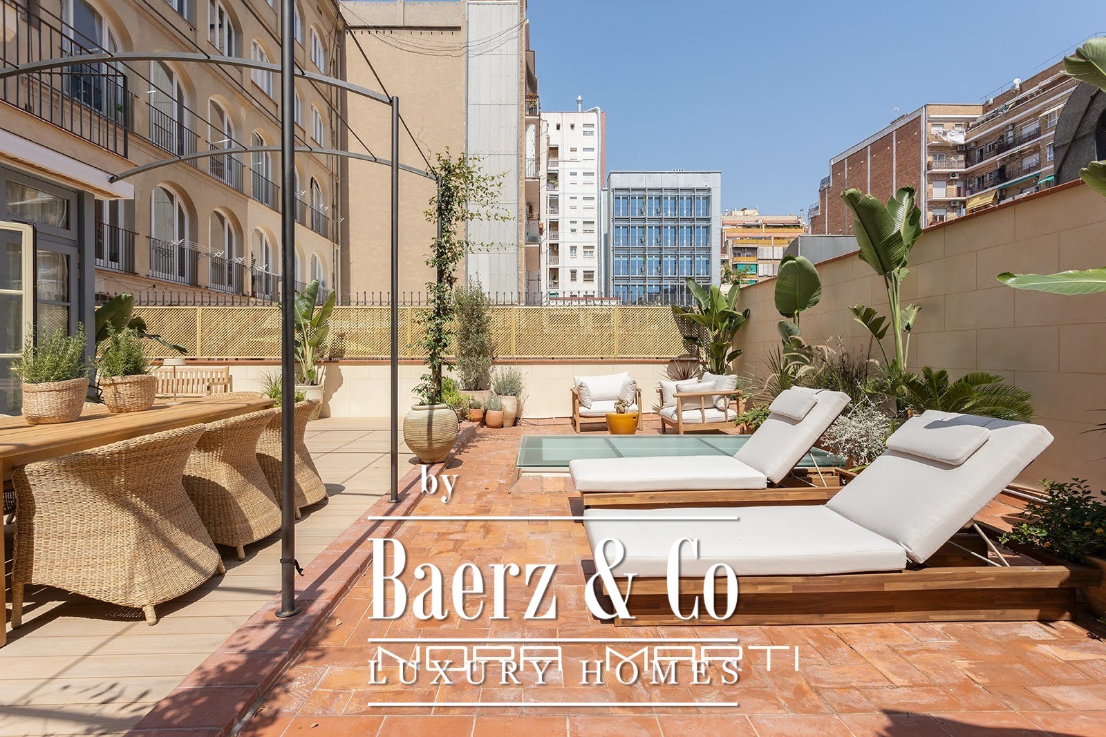 Apartment Barcelona Passeig de Sant Joan is situated in the heart of the city, offering 200 m² of refined living space complemented by a 100 m² private terrace. This apartment receives generous natural light from dual exposures, illuminating both the living and private areas. The residence preserves original architectural detail, including the Catalan vaulted ceilings that travel the length of the home, instilling a sense of volume and serenity.