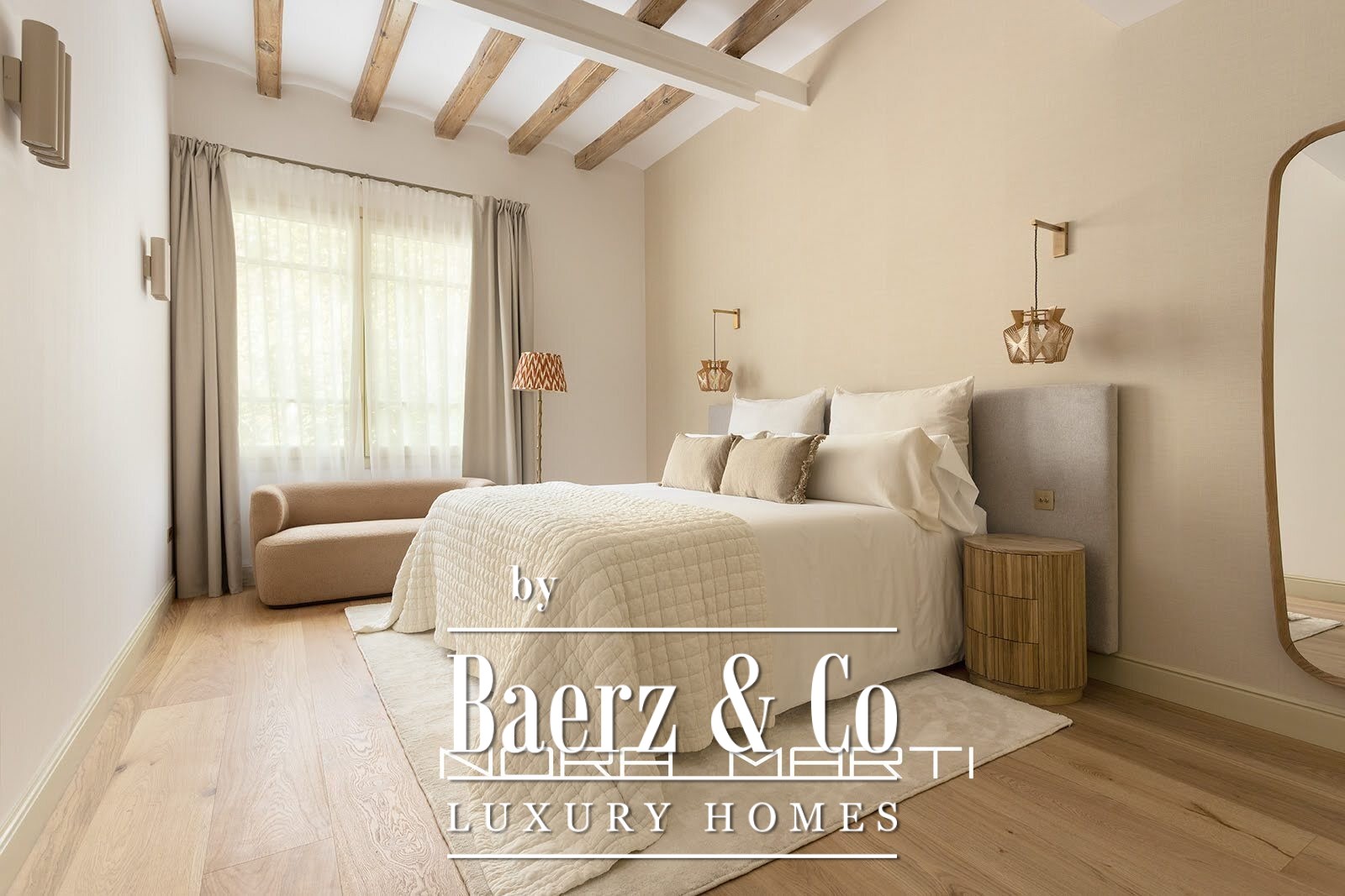 The living room, anchored by handcrafted local tiles and floor-to-ceiling windows, opens to a quiet terrace, blending indoor comfort with outdoor calm. A fully modernized kitchen, equipped with a wine cellar, large oven, and spacious dining area, fosters both daily living and hosting. Interior design weaves natural elements with subtle elegance, pairing natural oak flooring in wide planks with underfloor heating and dual-zone climate control for consistent comfort.