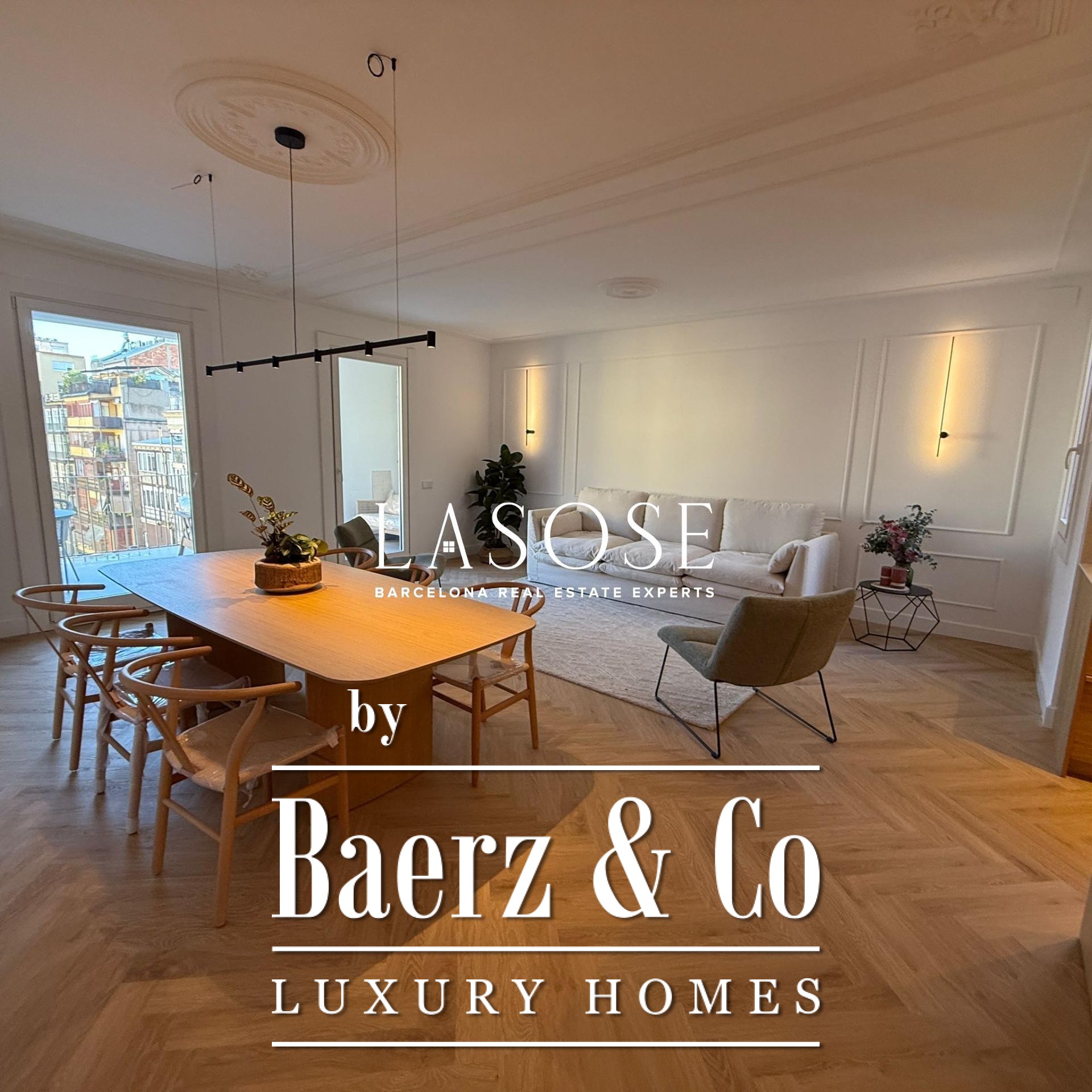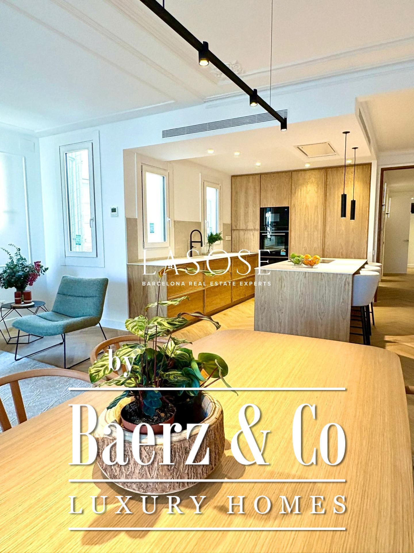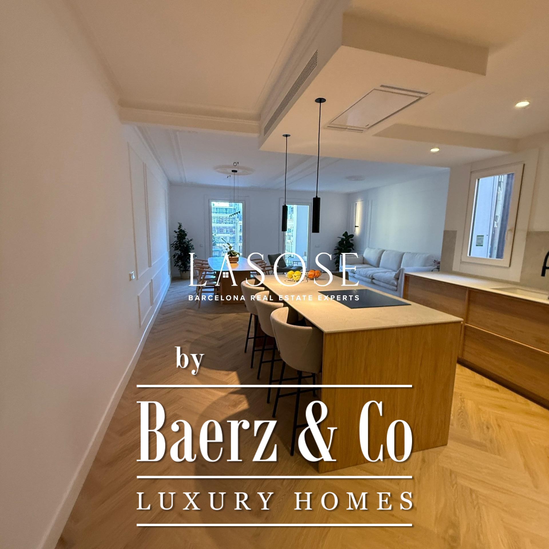 Apartment Barcelona in Antiga Esquerra de l’Eixample is set within a distinguished finca regia, moments from Passeig de Gràcia and Plaza de Catalunya. This residence offers an exceptional synthesis of preserved character and contemporary refinement, creating a compelling space for a discerning international audience. The apartment is delivered fully furnished with sophisticated designer pieces, offering 162 m² that invite immediate enjoyment.