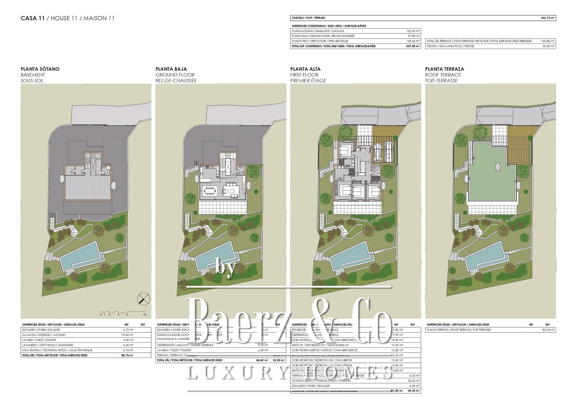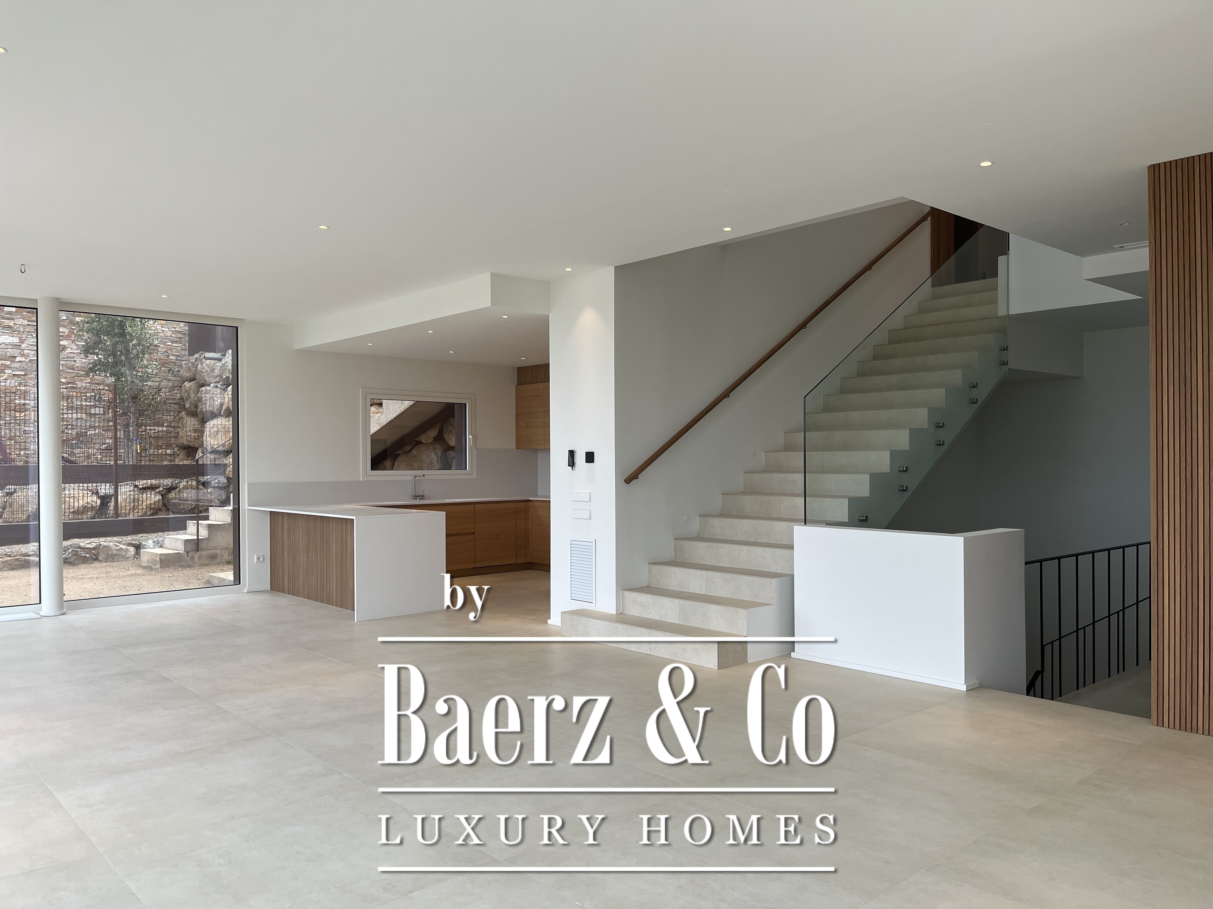 Within its 329 m² of living space, the villa balances open interiors with enduring materials, where floor-to-ceiling glass merges each room with sea and sky. The architecture is defined by restraint and clarity, tailored to individual vision, making every home as distinctive as the surrounding landscape. The villa includes four bedrooms, three bathrooms, a thoughtfully landscaped garden, swimming pool, private parking, and rooftop terrace. Smart home technology, security features, air conditioning, and a dedicated game room complement the experience.