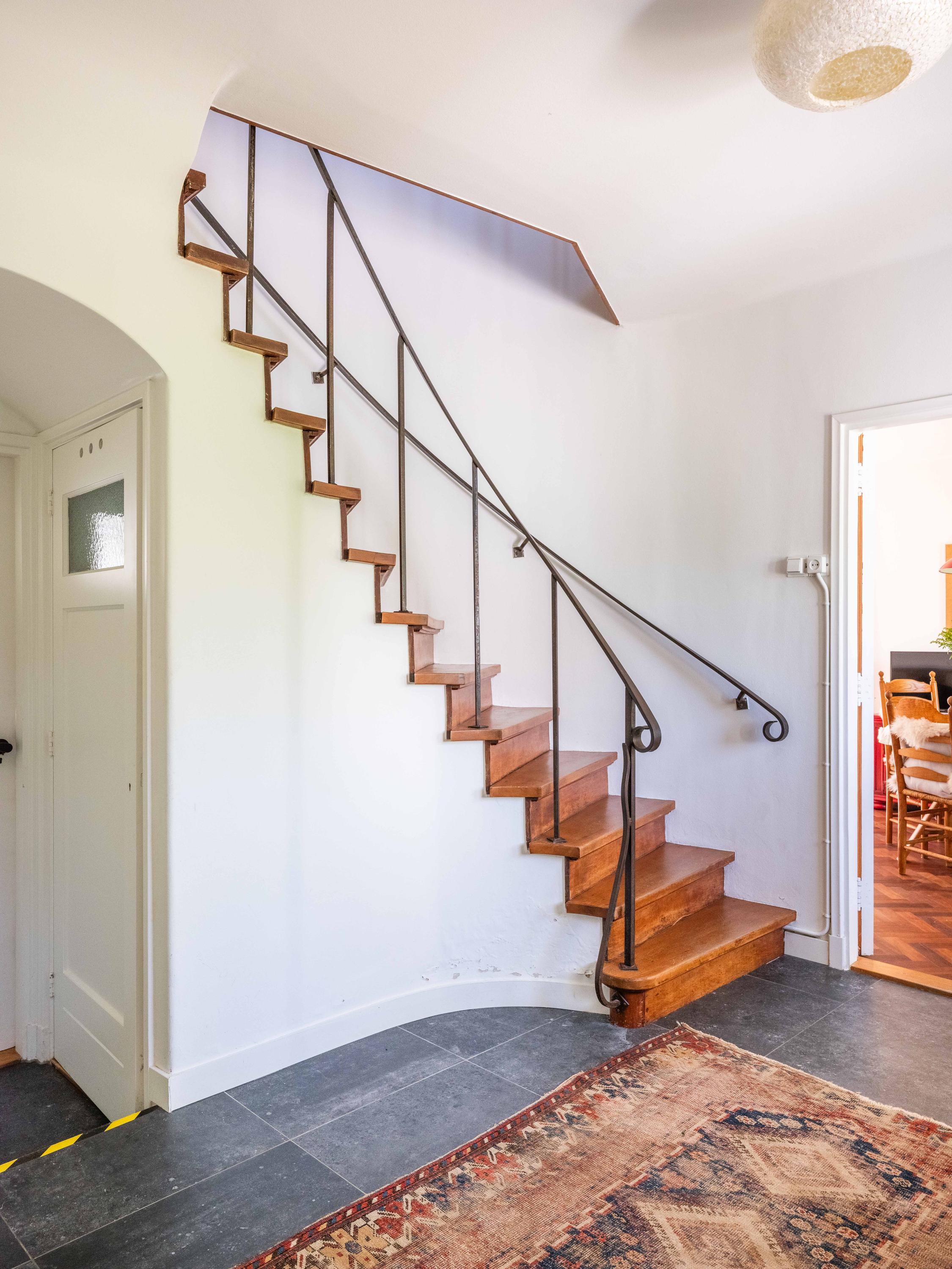Renovated and made sustainable in 2022, the property integrates roof and double-glazed insulation, a new kitchen, and a modern central heating system, achieving energy class D. The living room welcomes with original wooden parquet, a wood-burning stove, and French doors revealing a mature garden, while bespoke cabinetry anchors function with style. The ground floor includes a bedroom and en-suite bathroom, ensuring ease of access and lifetime-proof convenience.