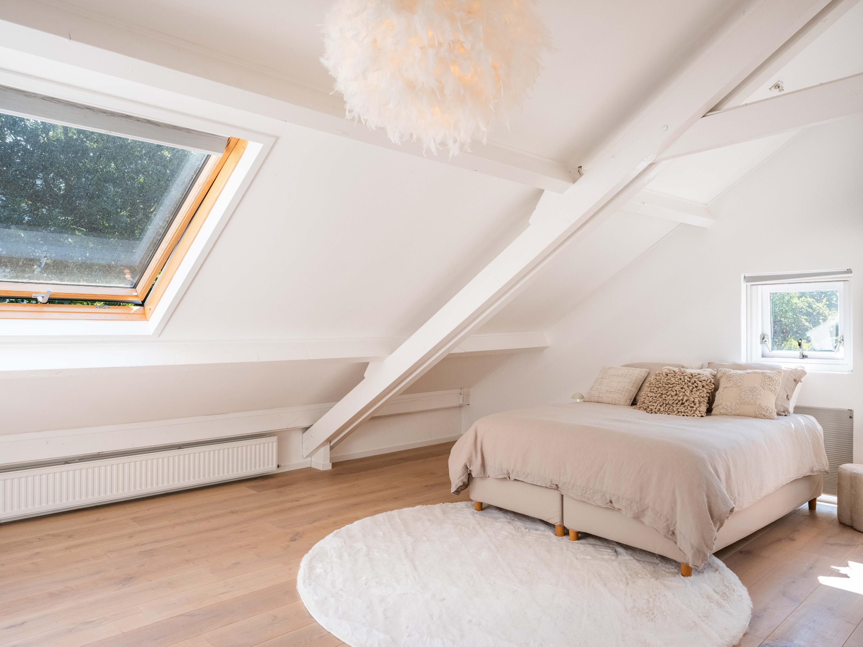 Upstairs on the landing are five rooms. Four rooms can certainly be called generous, the fifth is a smaller room, this is used as a laundry/ironing room but would also be an ideal baby room.