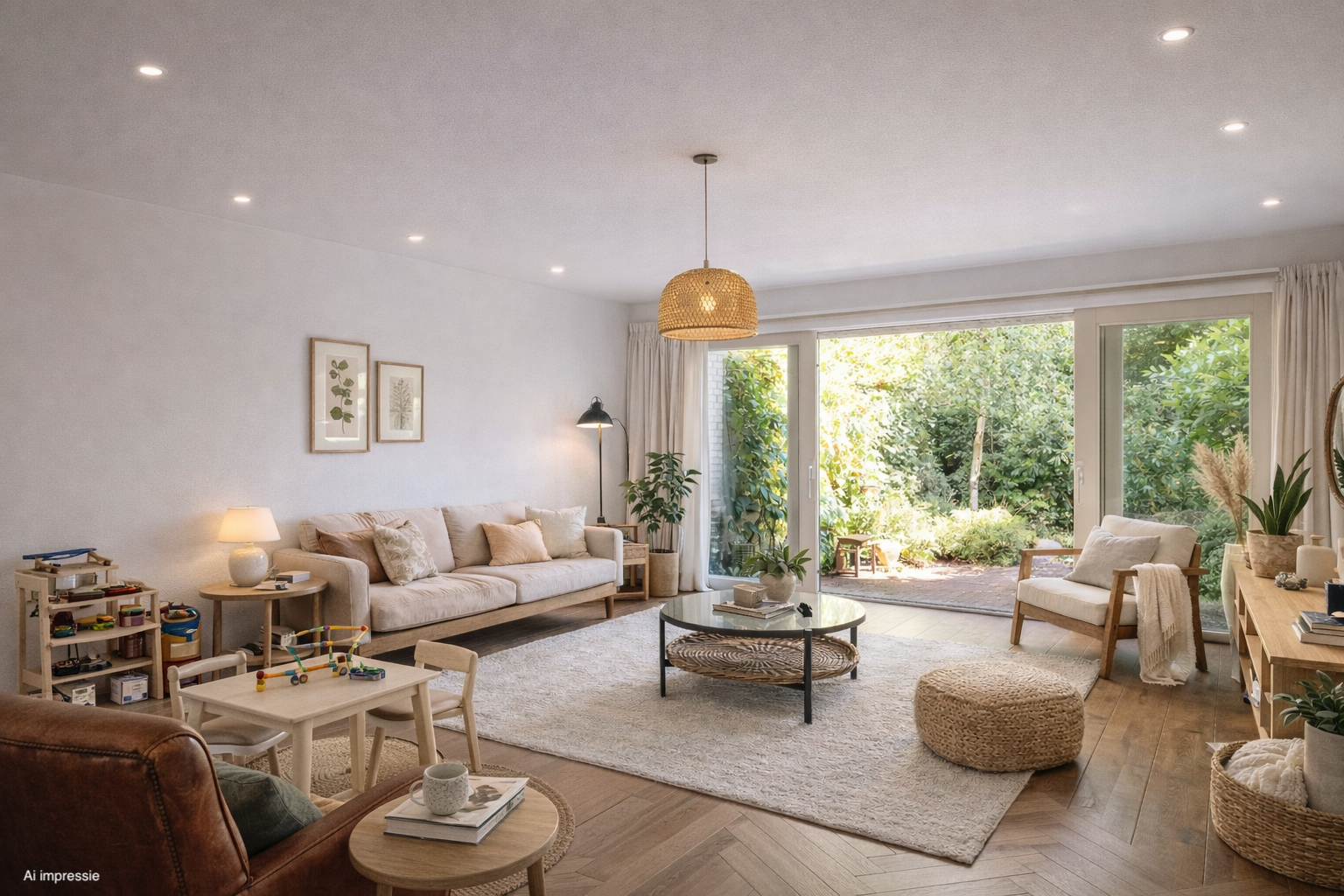 We would be happy to show you around. Upon entering, you will find a spacious entrance hall with a cloakroom, toilet, and meter cupboard. The layout of this home is playful and contemporary, with a cozy garden-facing sitting area with a separate dining area. The kitchen is located at the front and offers plenty of storage space and various built-in appliances. Ideal for both relaxing evenings and cozy family moments.