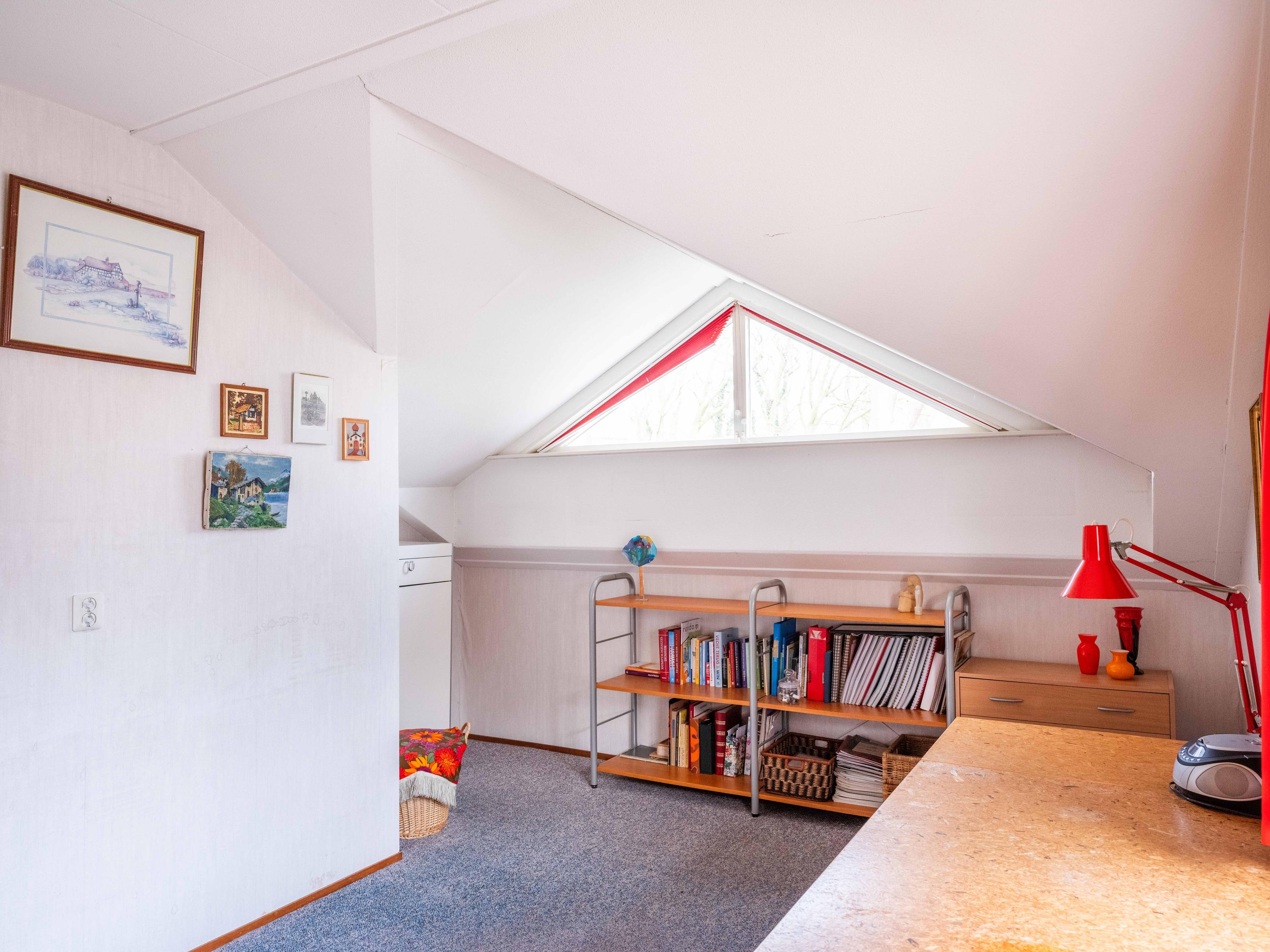 On the ground floor, you will also find a spacious room on the garden side, which can be used as an office, but is also ideal as a bedroom. The bathroom on the ground floor has a bathtub with shower, double sink, and toilet.