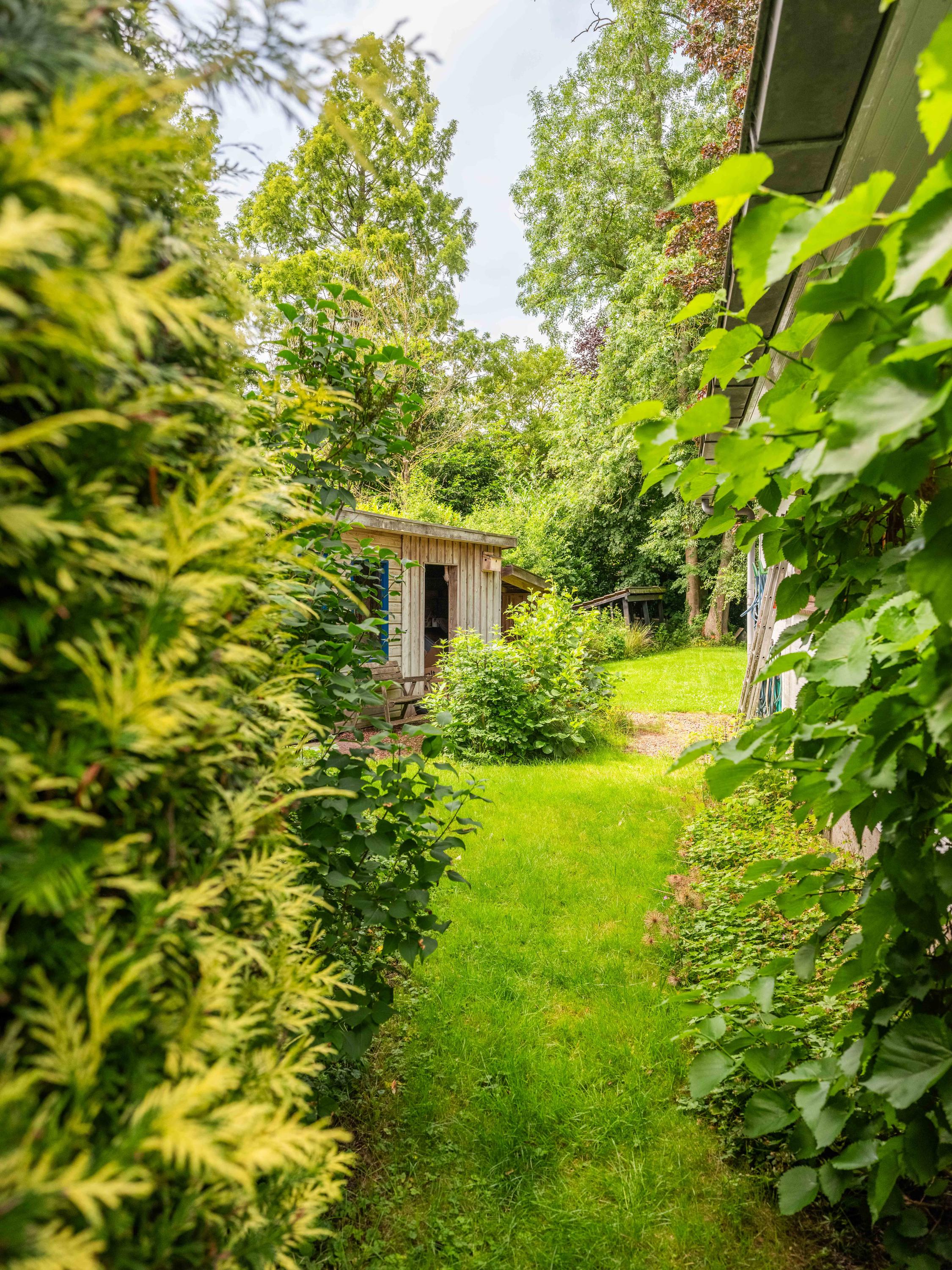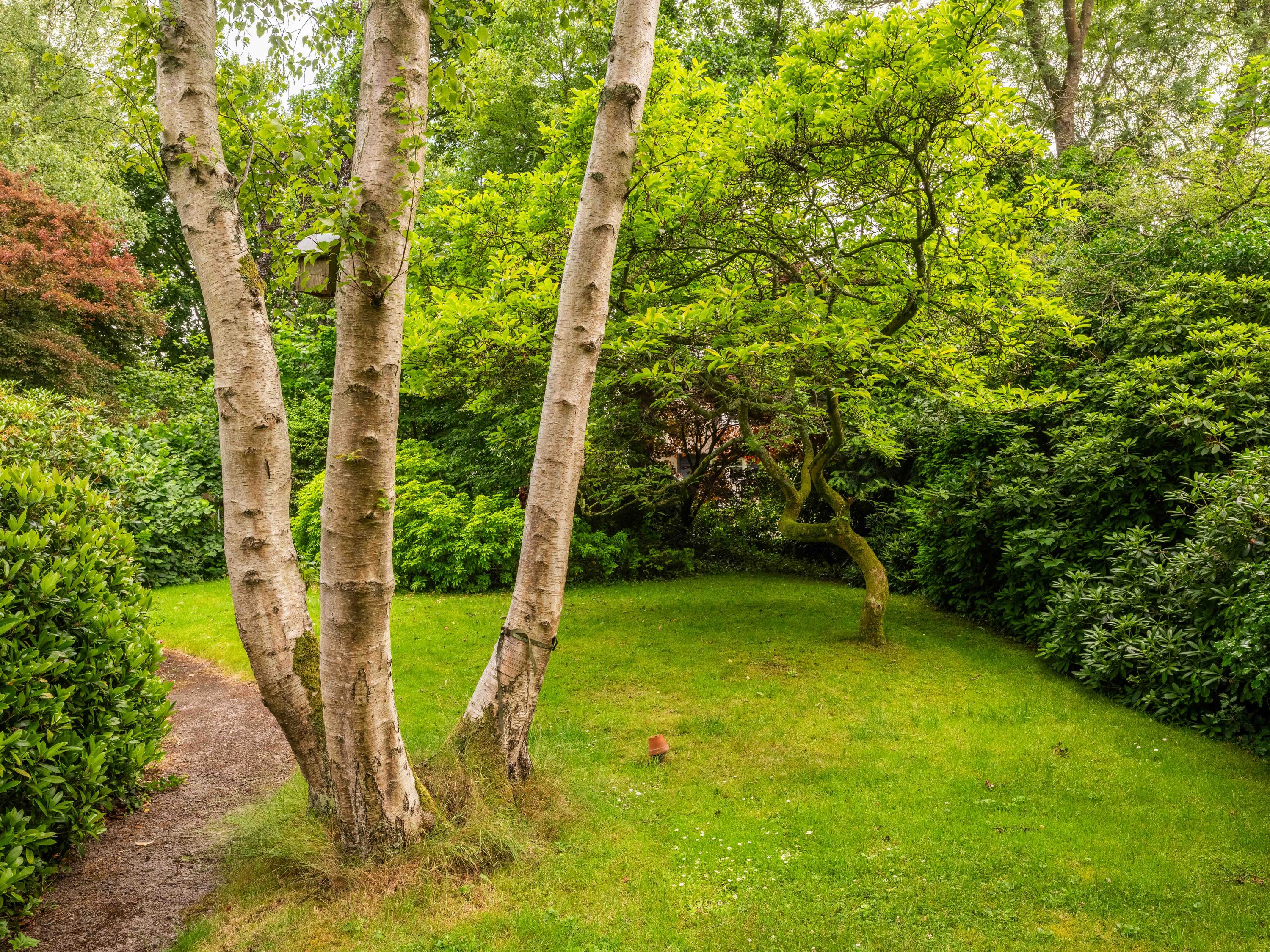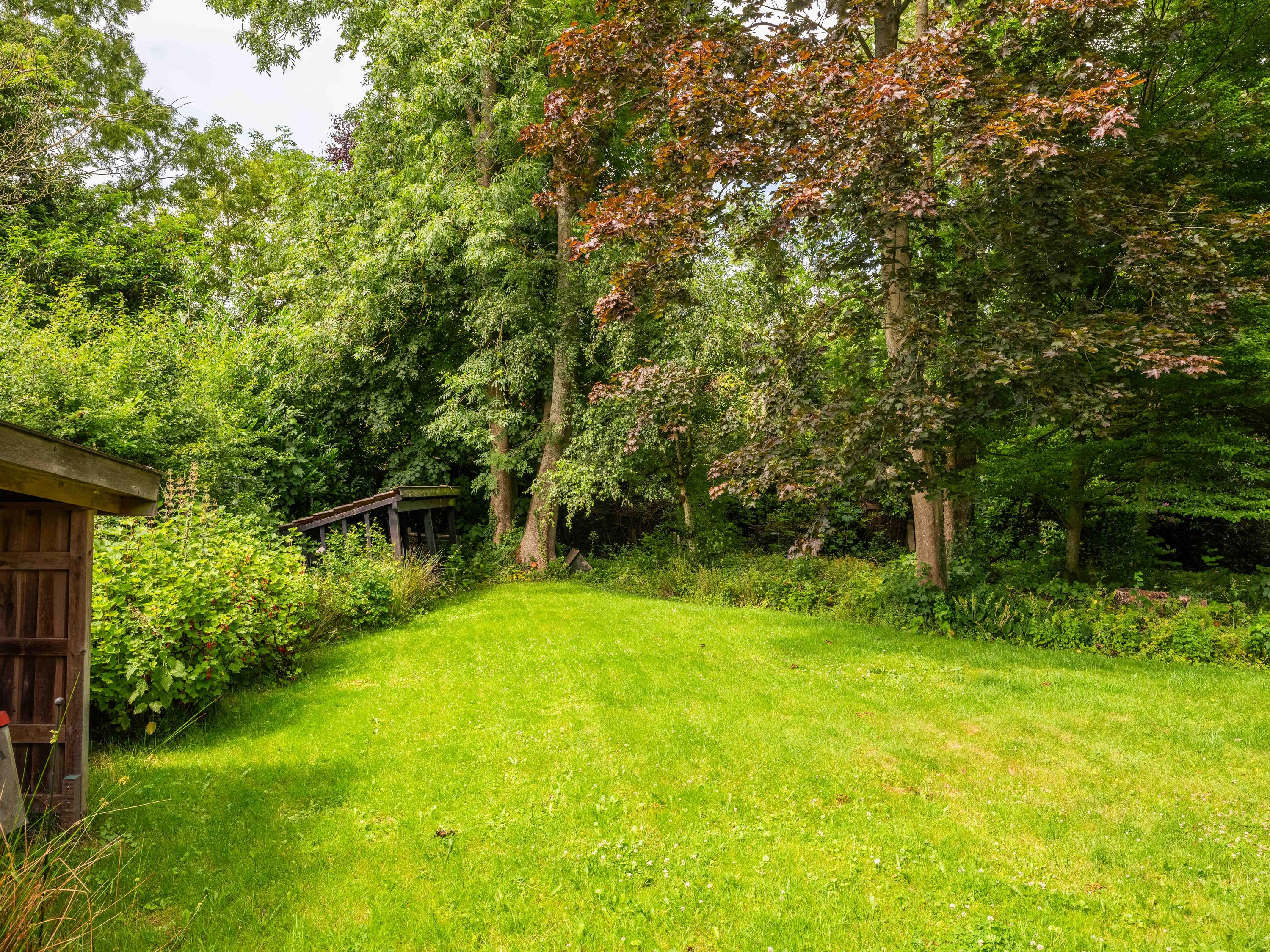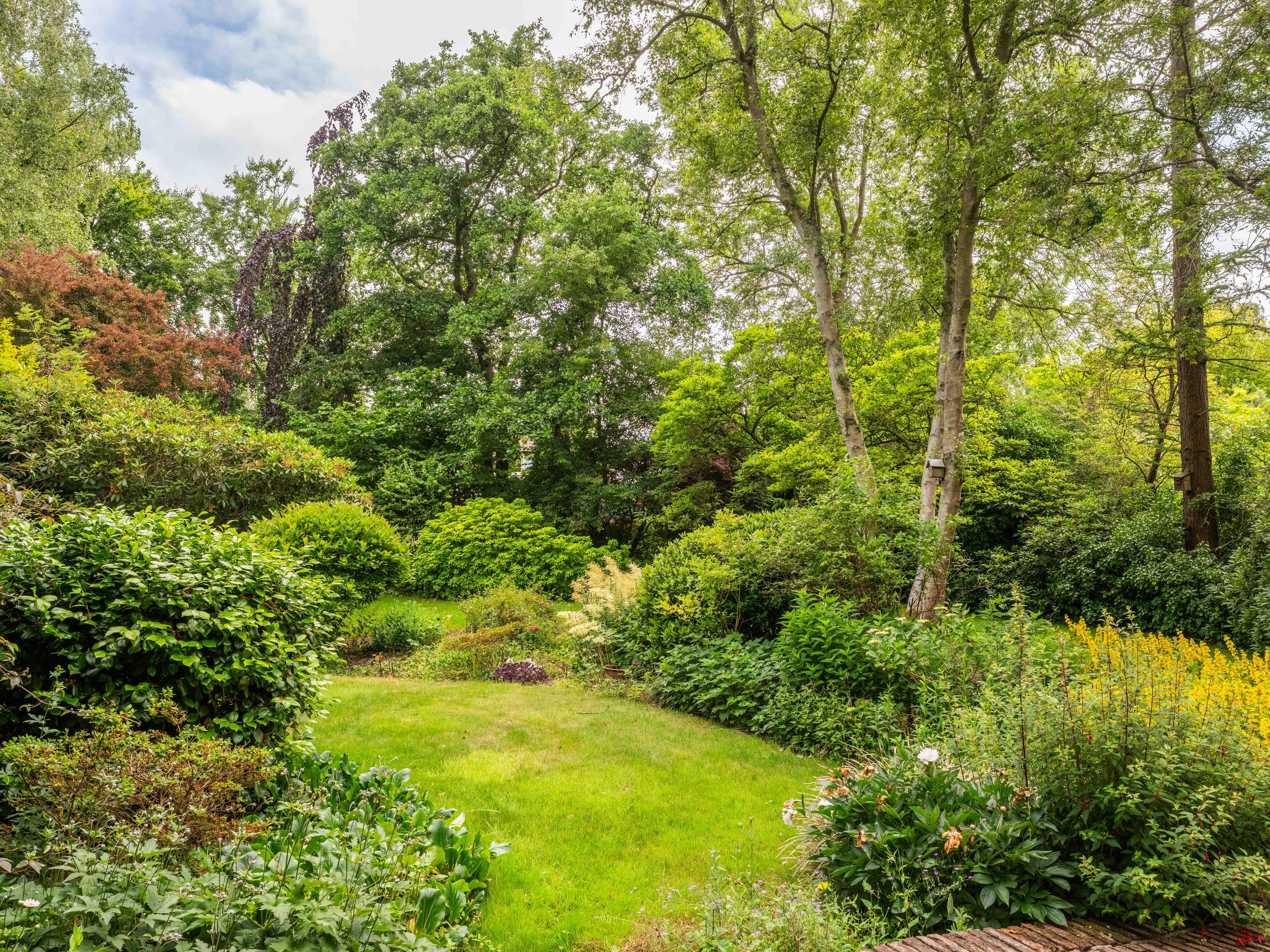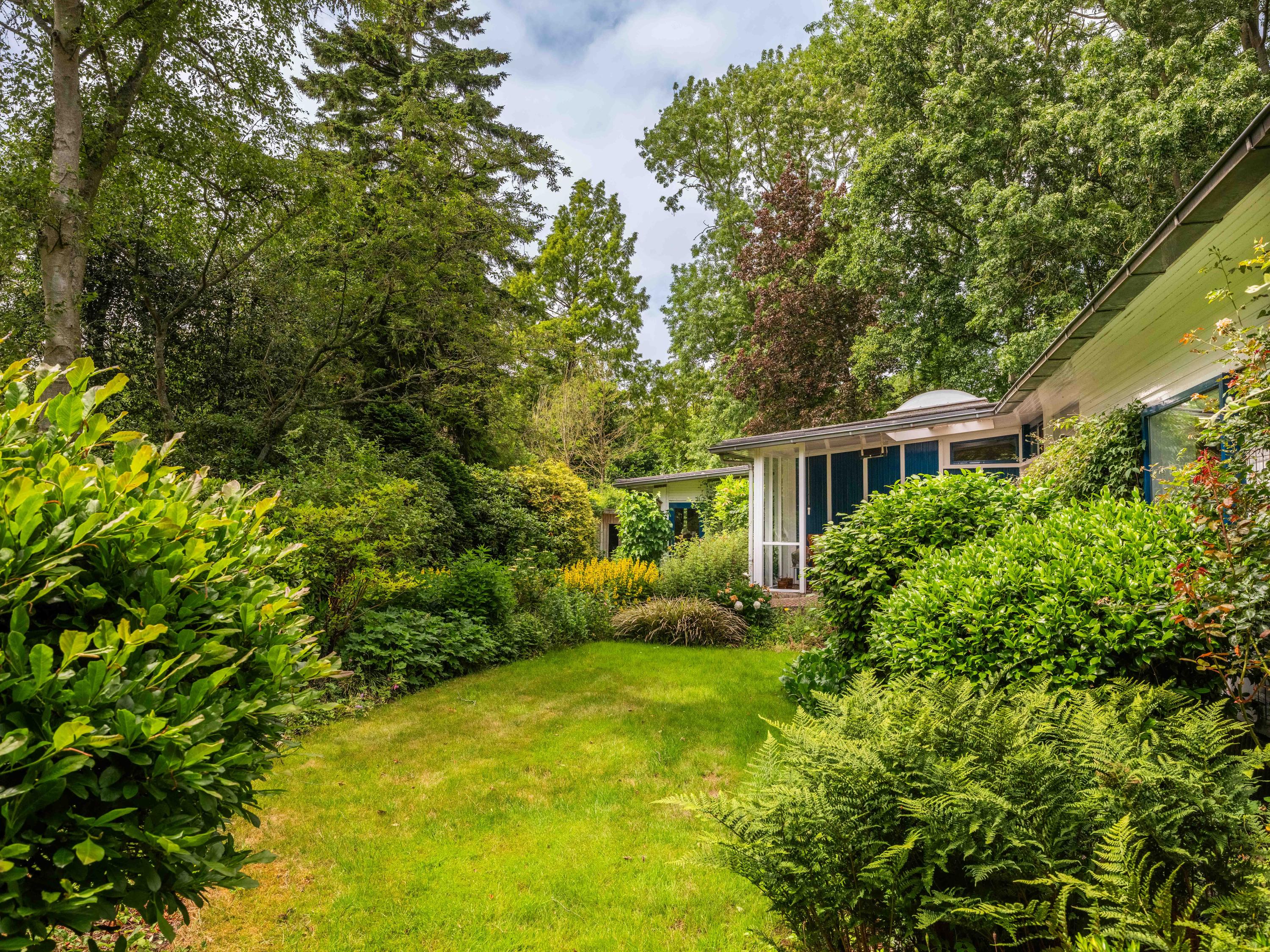 A mezzanine with a separate entrance accommodates a study or atelier. Further conveniences include a large storage room, double garage, wooden external shed, and ample off-street parking. The gardens evoke calm, while city centre amenities and forest walks are just moments away. The detached bungalow Bergen offers a rare convergence of privacy, authenticity, and a distinct architectural heritage.