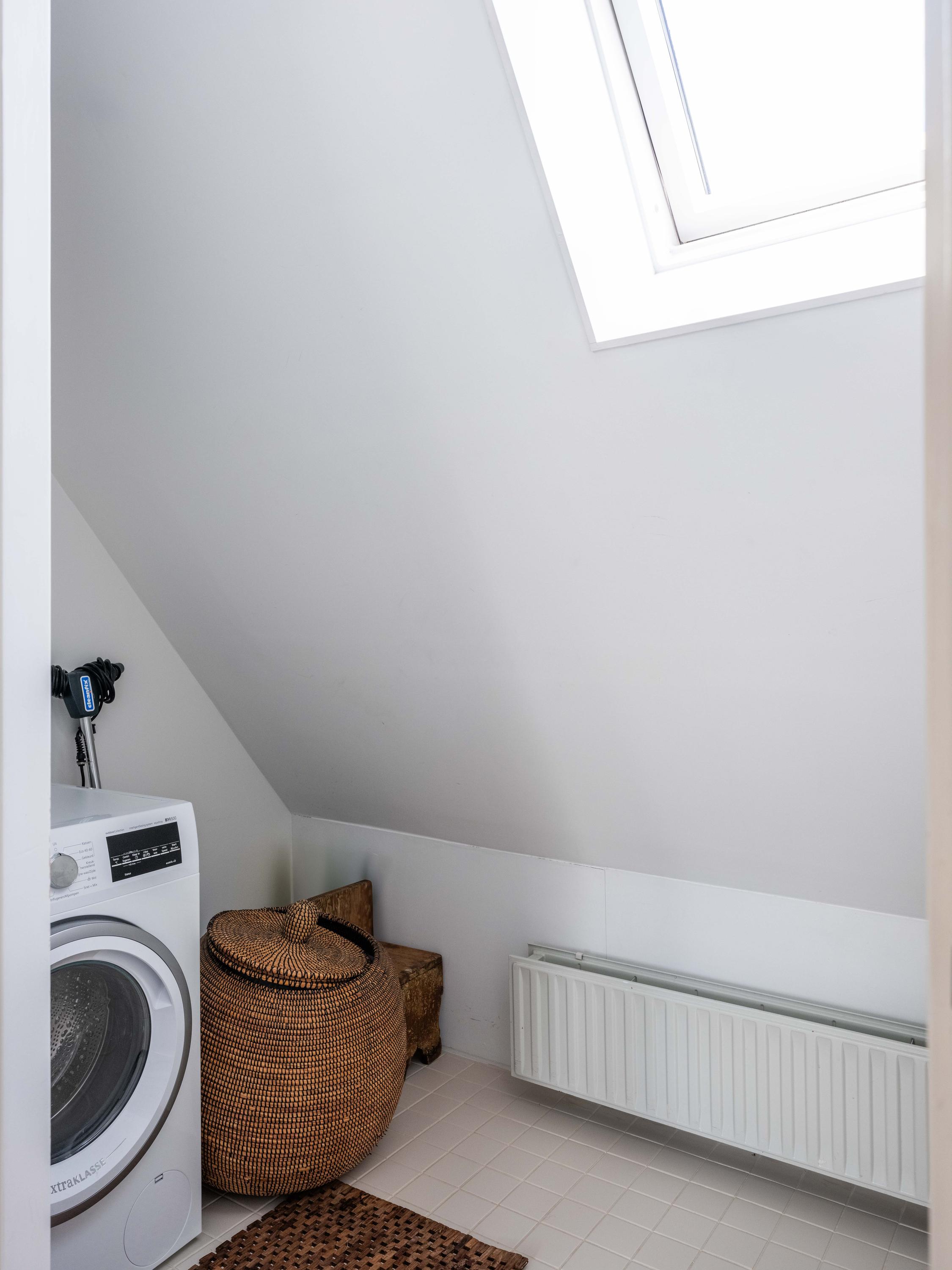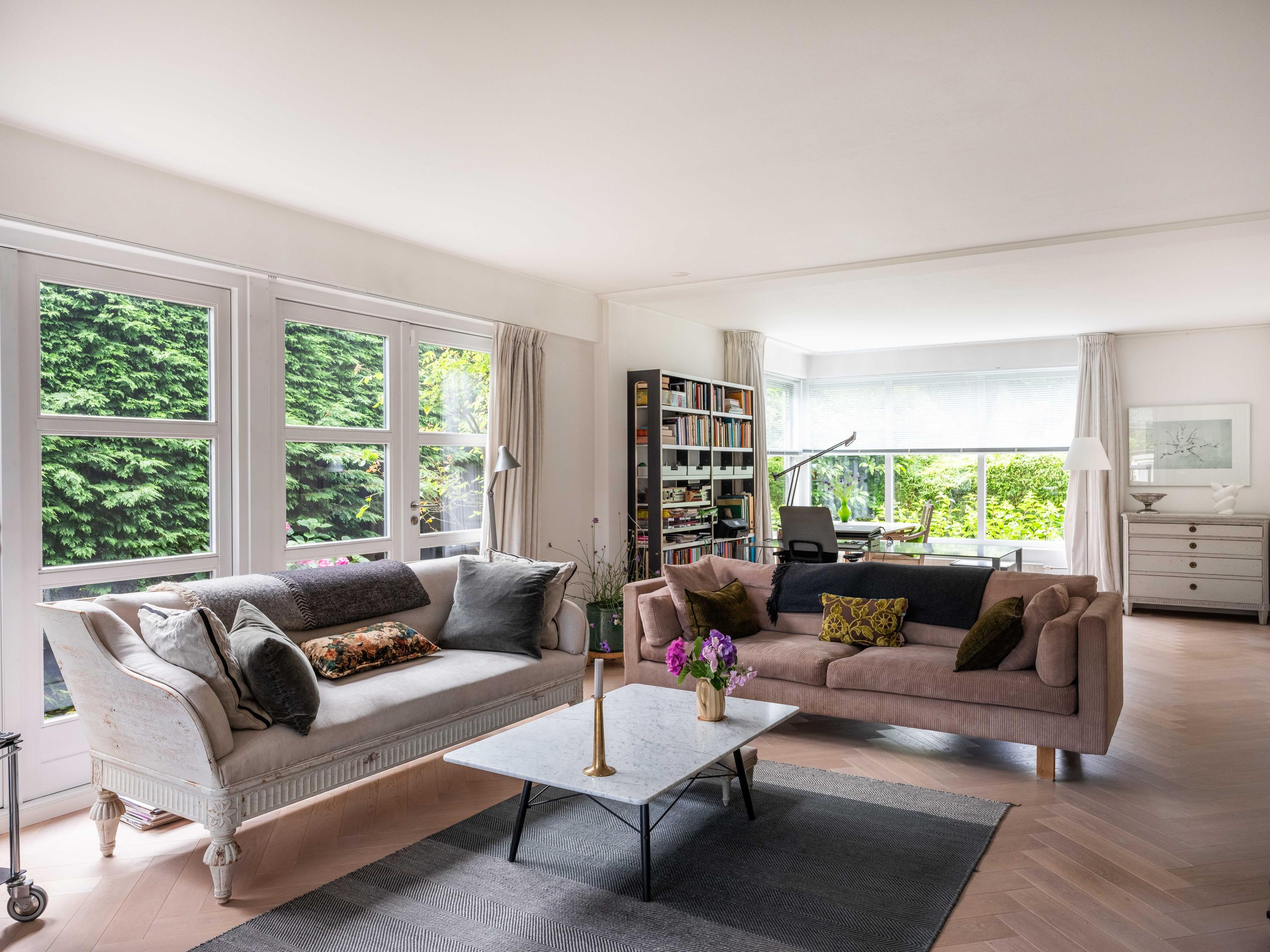 Entering through a well-proportioned hall, the rhythm of oak flooring and generous light define the expansive living area. French doors connect to a thoughtfully landscaped garden, offering multiple terraces and a sense of calm, while a dedicated work or hobby room extends the sense of purpose. The Bulthaup kitchen is appointed with an Atag oven, 5-burner stove, dishwasher and refrigerator. A former garage, now a large storage room with utility connections, enhances the sense of practical elegance.
