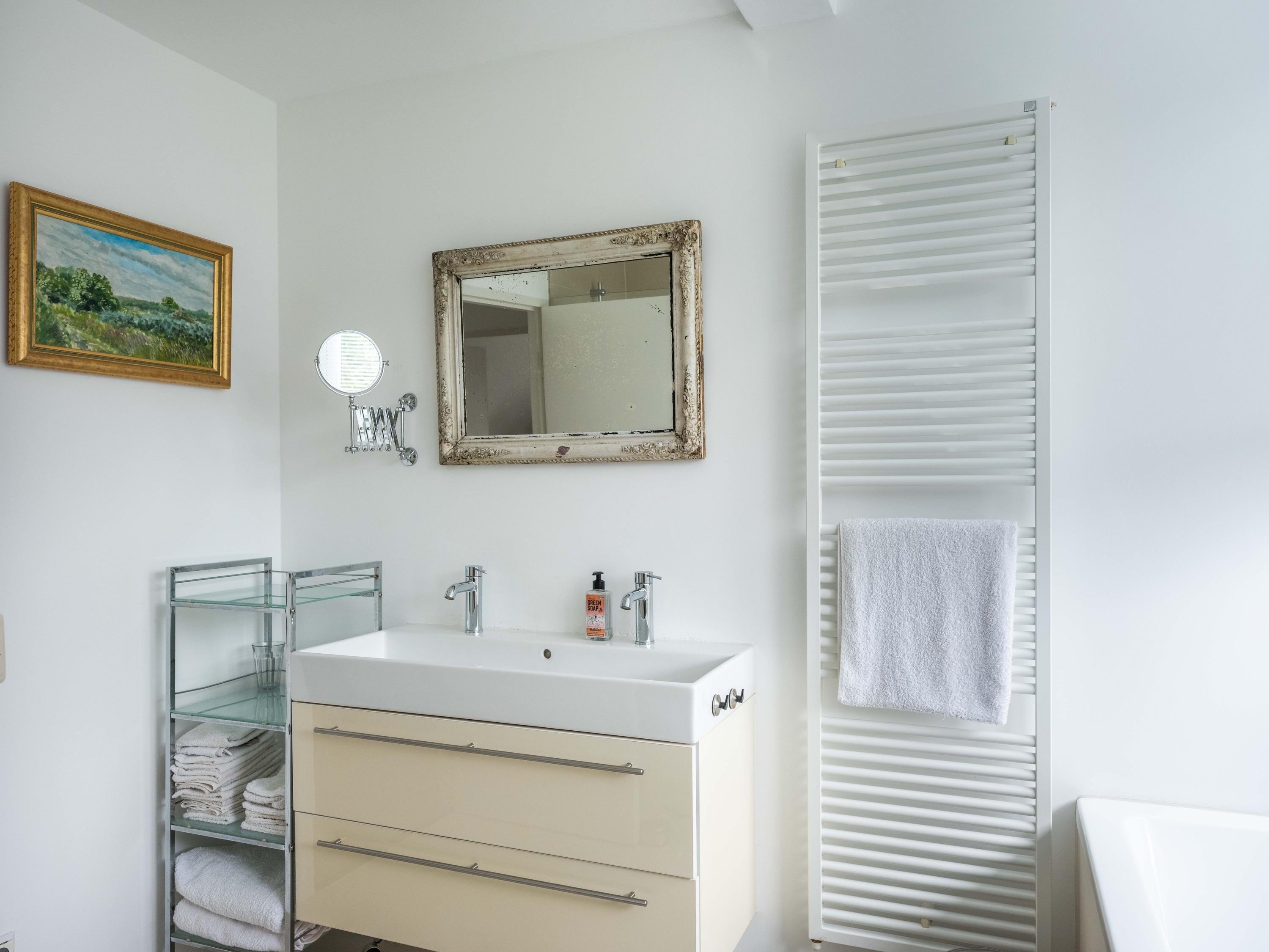Upstairs, two substantial bedrooms and a third nuanced space are complemented by a bathroom with double sink, walk-in shower and bathtub. Air conditioning, mechanical ventilation, double glazing and a C energy label echo a discreet commitment to comfort. A loft with air conditioning and mechanical systems crowns the home, furthering its quiet efficiency.