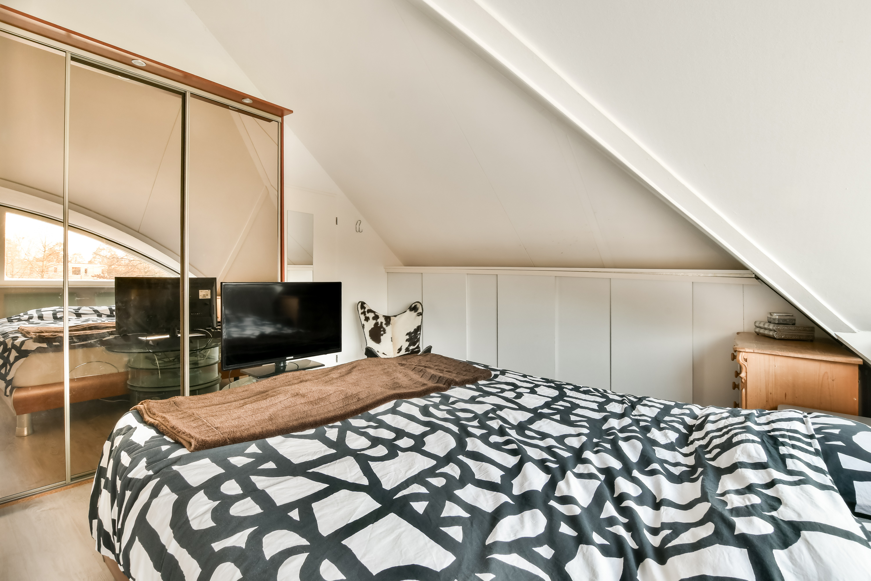 Slaapkamer 5, met aansluitingen voor wasmachine en droger, een Velux dakraam en toegang tot de vliering. Daarnaast biedt deze ruimte de mogelijkheid om een tweede badkamer te realiseren.
